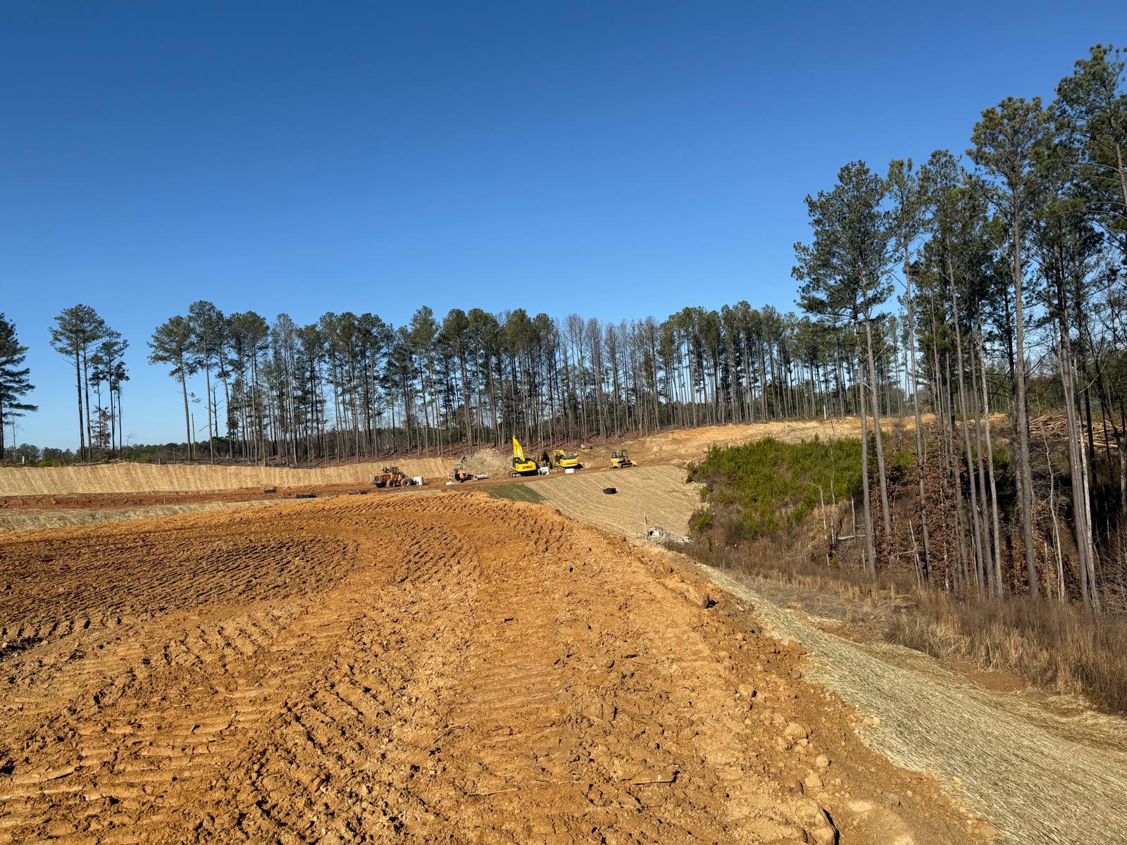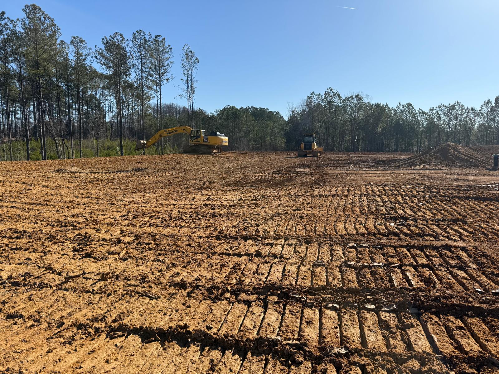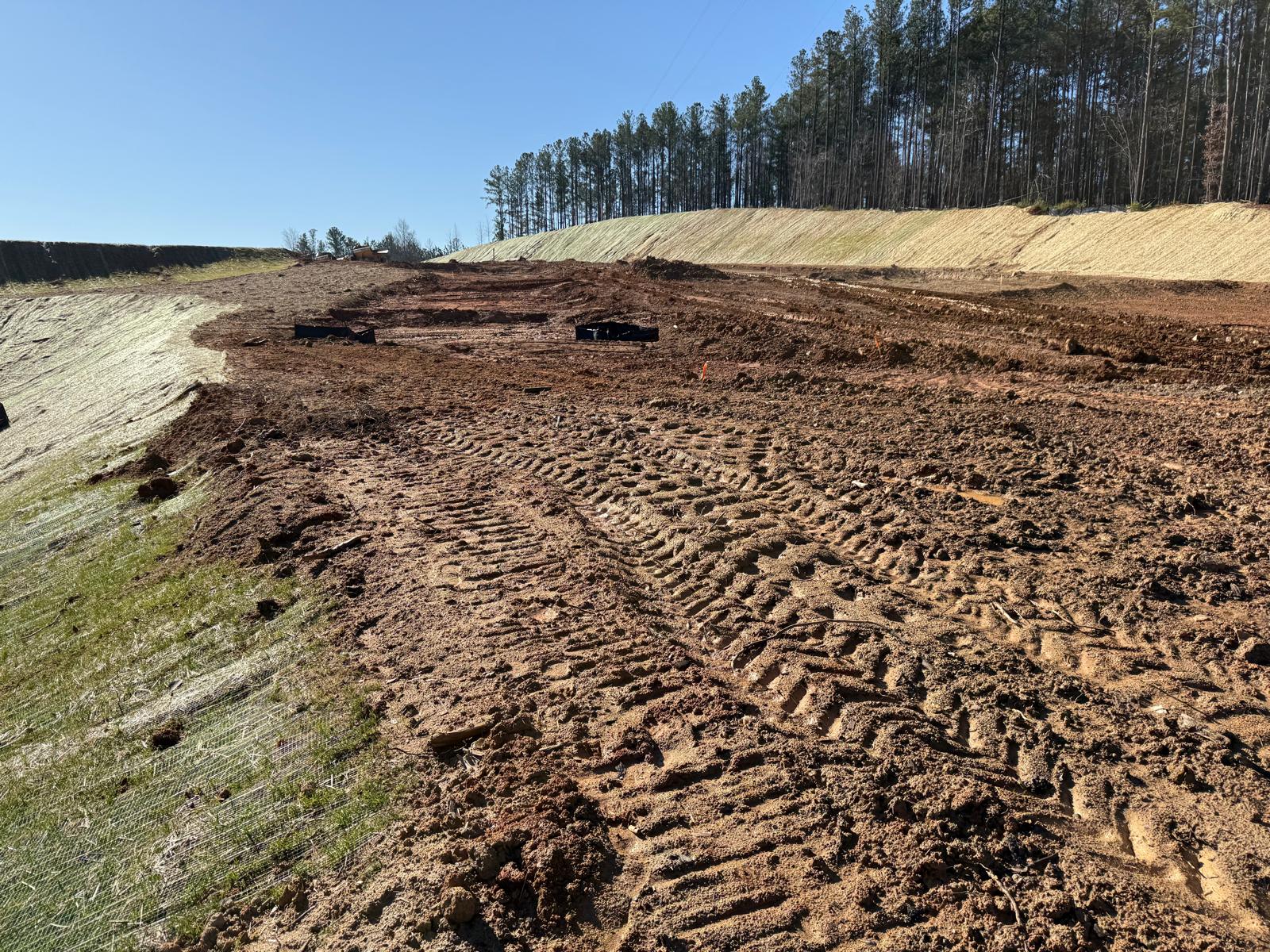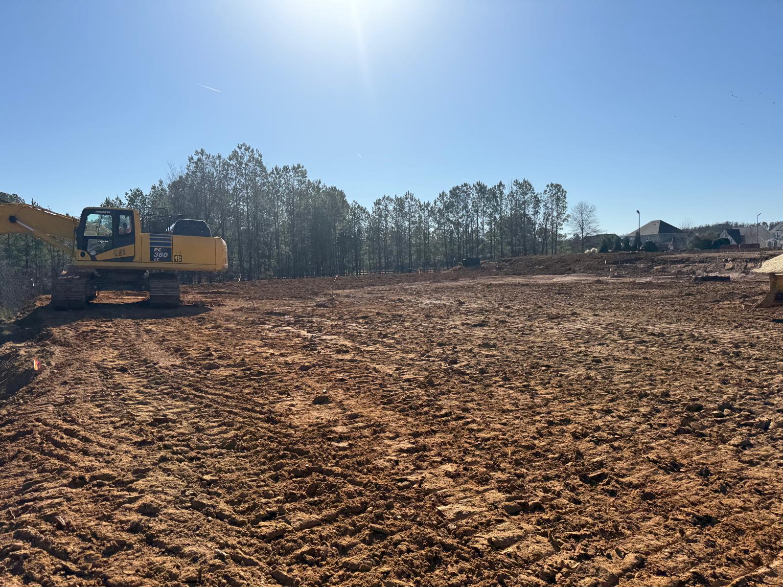 • After the rain from the previous day, the contractor began scarifying and aerating using a Komatsu 39PXi dozer to help move and redistribute the soil, allowing it to dry more quickly. At the same time, they used the Komatsu PC 360LC to fix and adjust the slopes of the site.