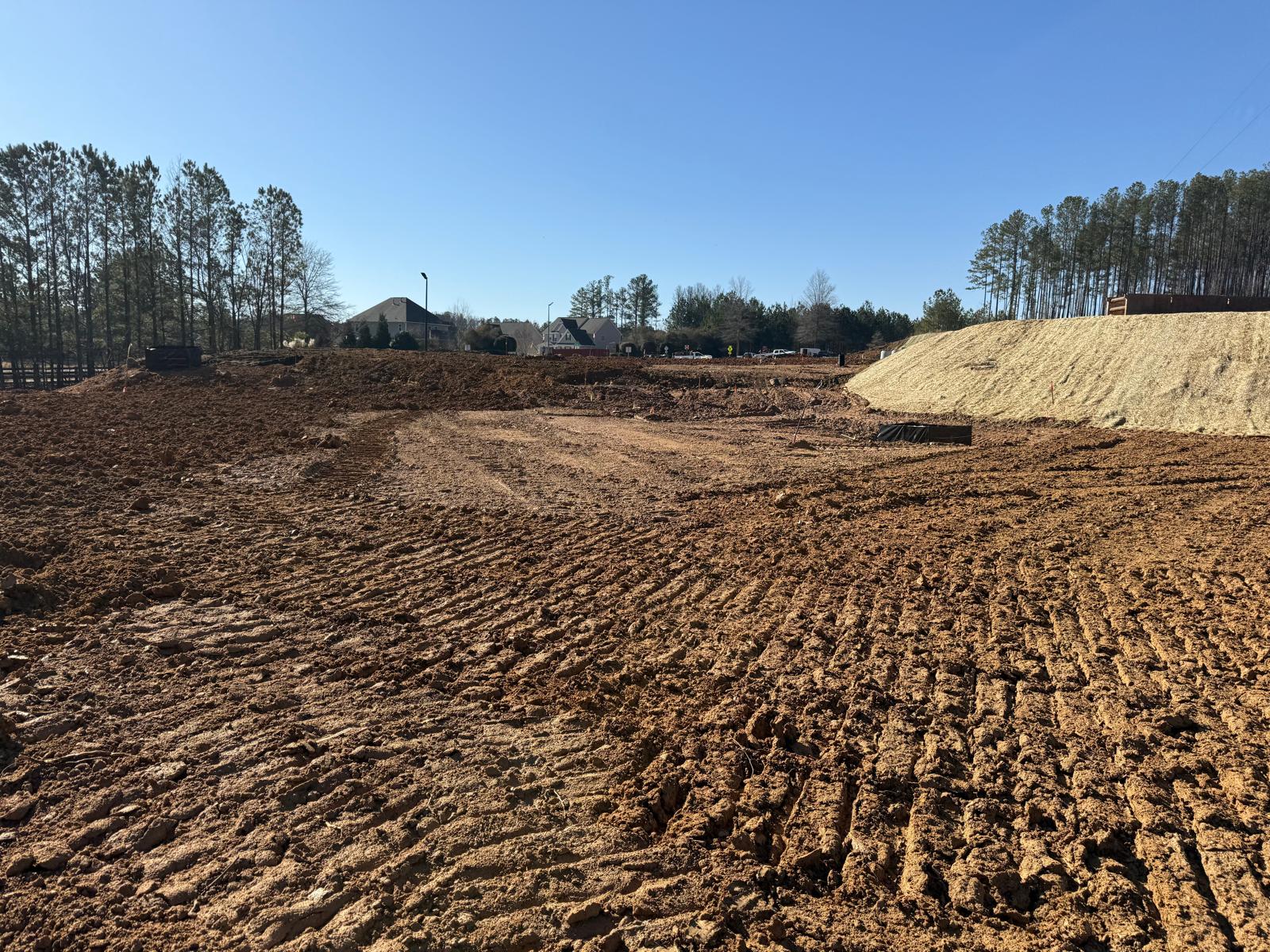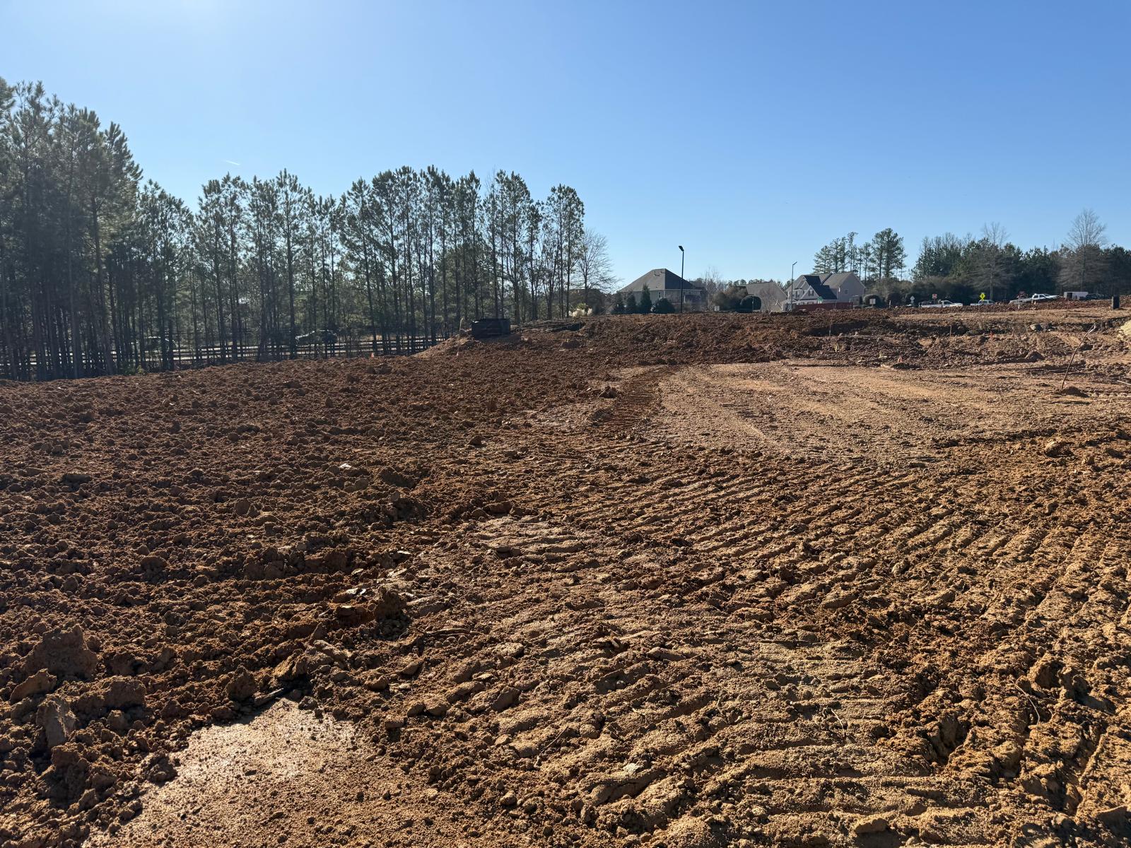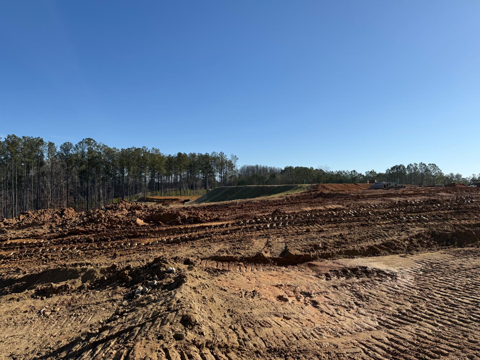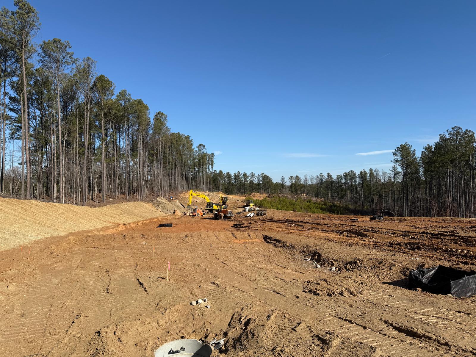 • After the rain from the previous day, the contractor began scarifying and aerating using a Komatsu 39PXi dozer to help move and redistribute the soil, allowing it to dry more quickly. At the same time, they used the Komatsu PC 360LC to fix and adjust the slopes of the site.