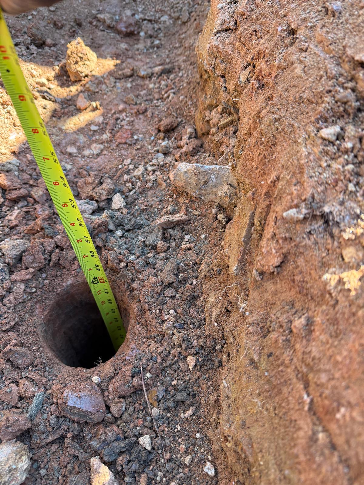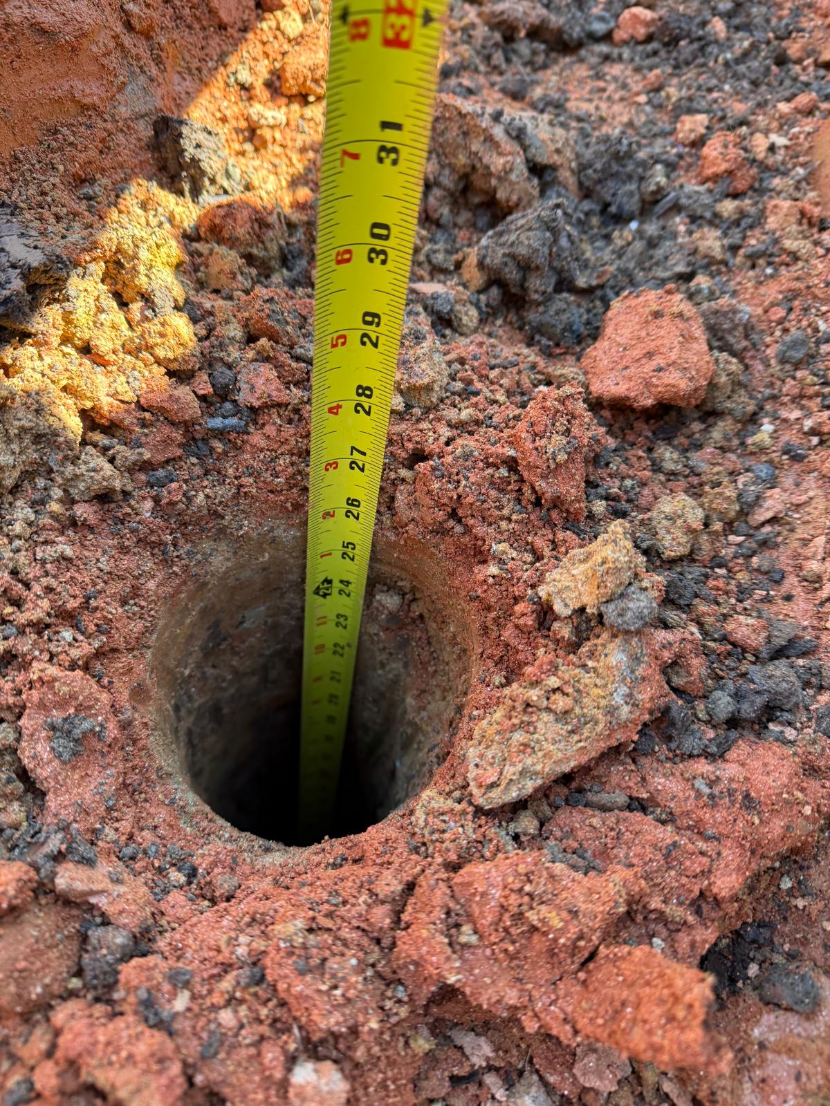 The Dynamic Cone Penetrometer (DCP) observations were recorded to a depth of 2 feet, at which point the auger encountered refusal. An offset was taken, and the following are the recorded observations: