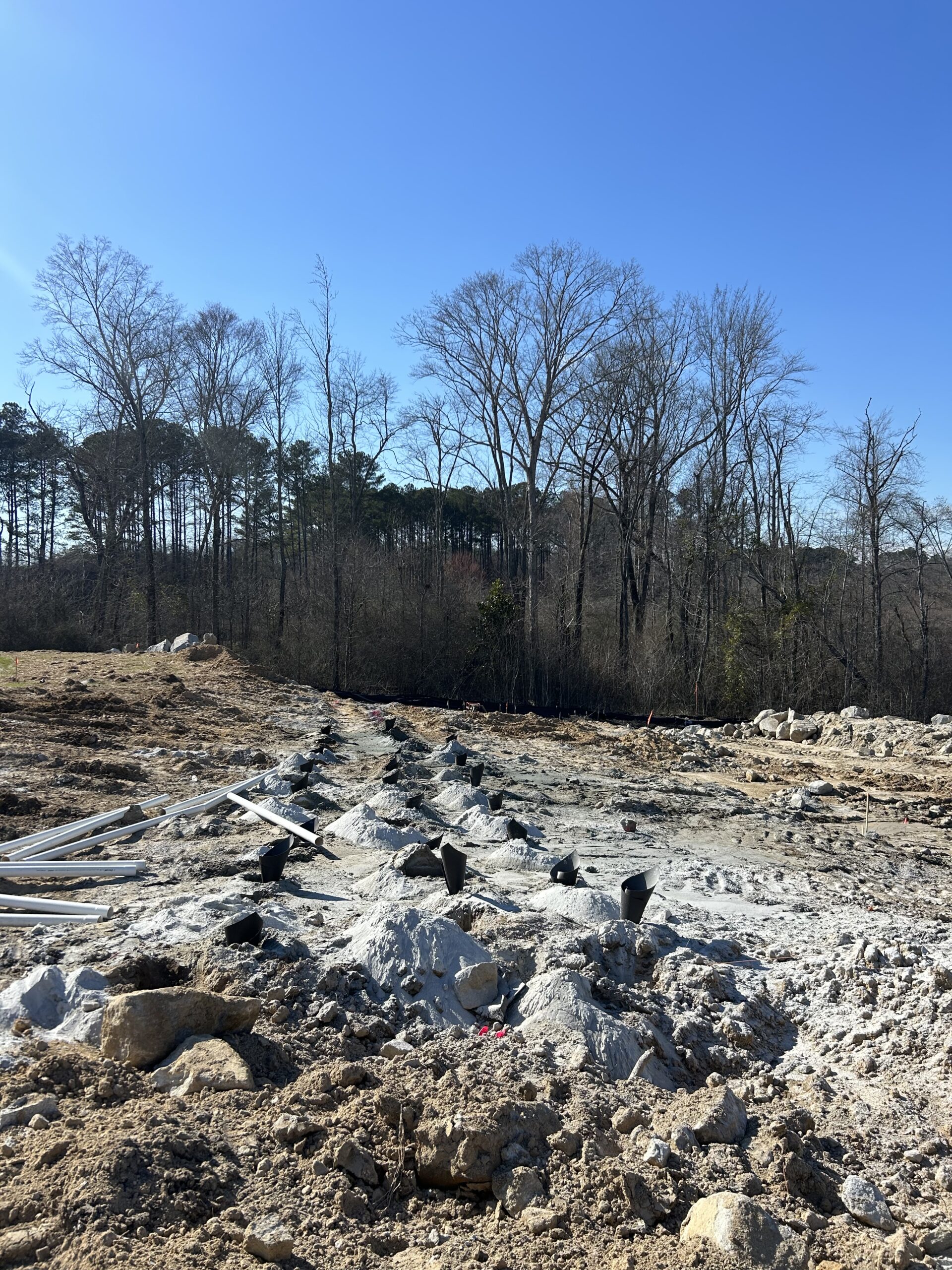 These efforts are part of Precision Blasting’s ongoing work to break up the small trench rock section in the northwest corner of the Cottages at Villa Rica. The operations appeared to have proceeded as planned.