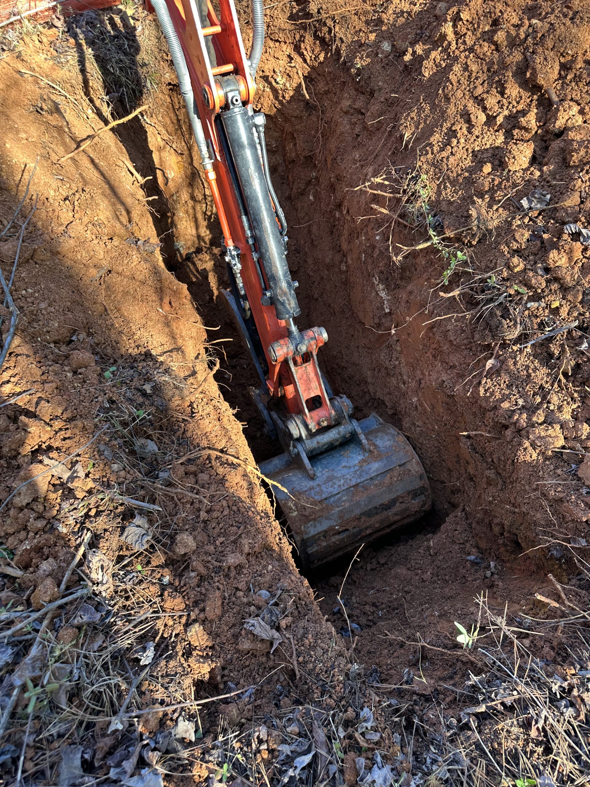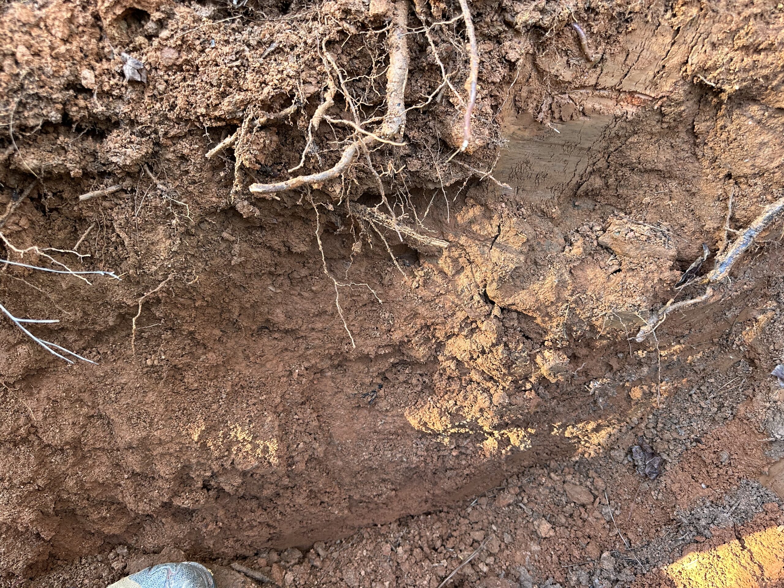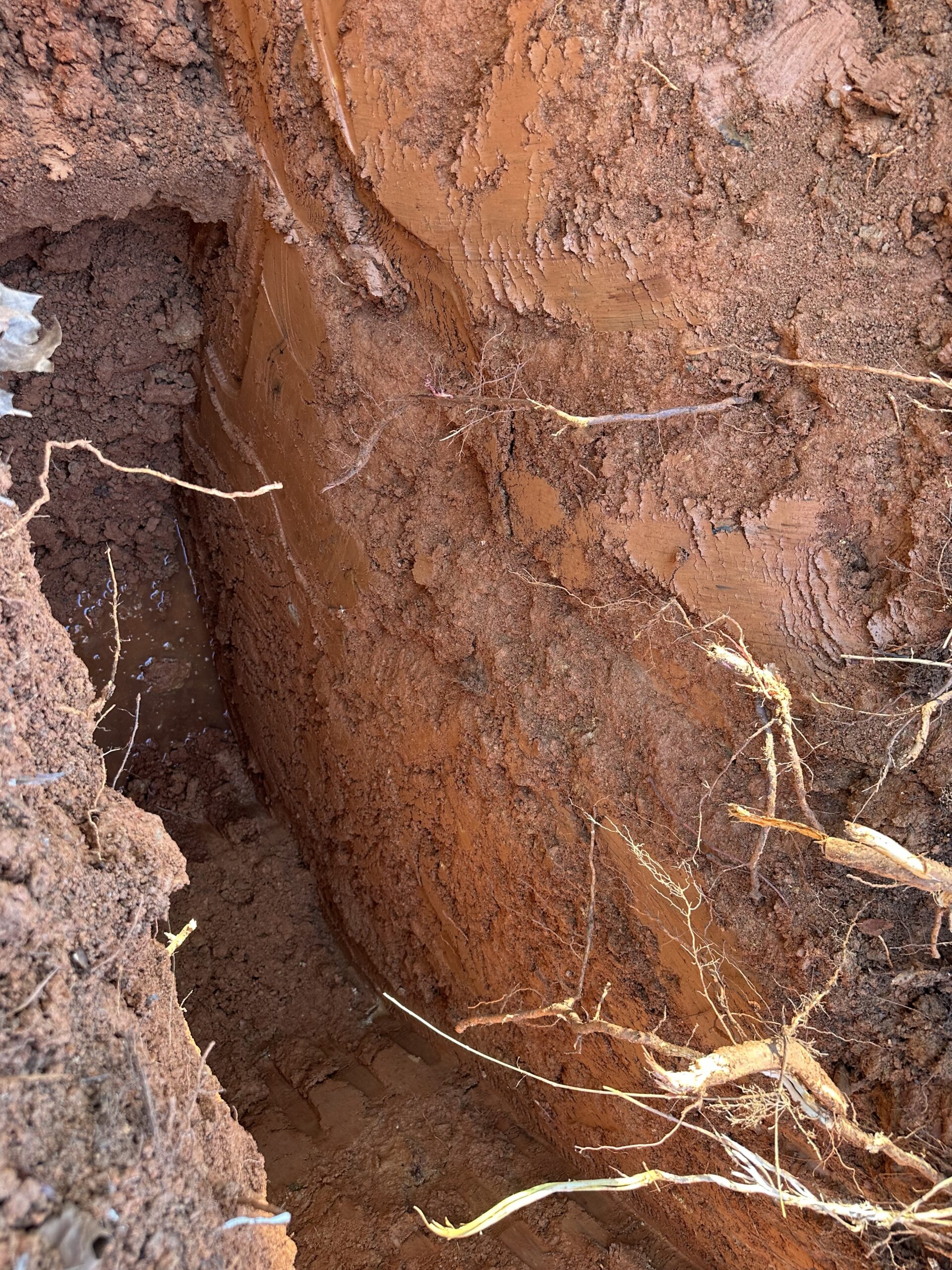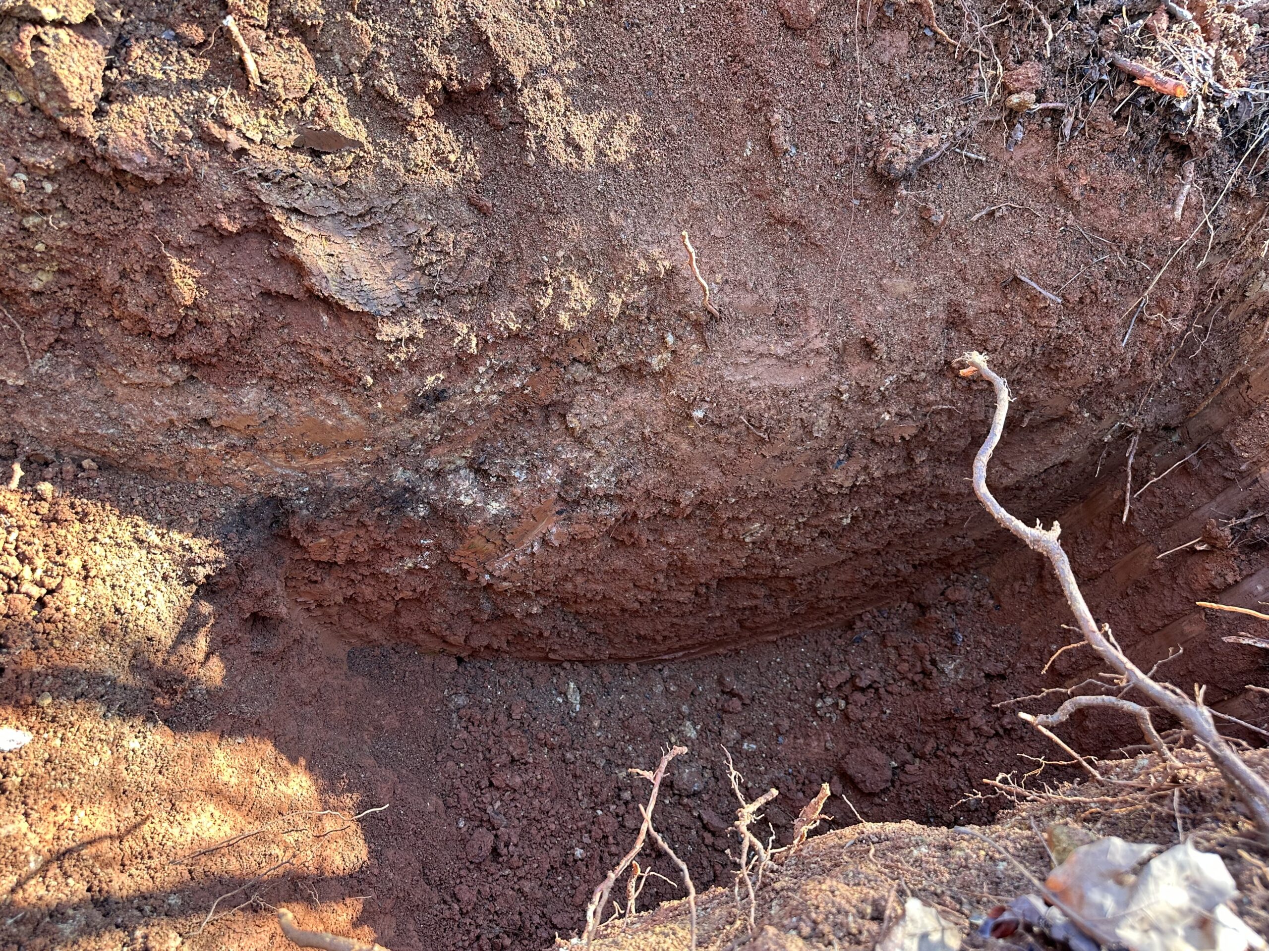 • Findings: First 4.5 feet consisted of a mix of organic material, topsoil, and rock. Suspected original clay reached at 6 feet.