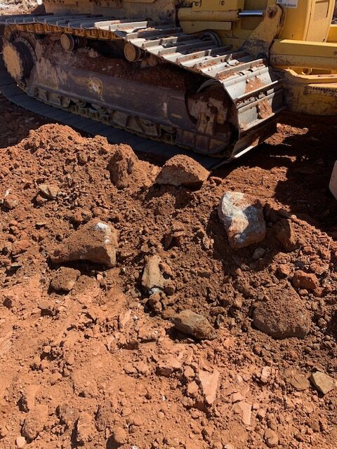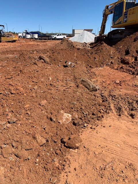 On the above date our AS Engineering & Consulting representative was on site as requested and observed the grading contractor (Hodges) continue placing fill for the building pad. The contractor was running short on suitable fill for placement of the top two feet. The contractor excavated borrow materials from the toe of the east side slope embankment and began placement upon arrival to the site.  This material was observed having oversized rocks (6″to over 16″ in diameter) during placement with some trash debris and high moisture which would not be suitable for structural fill for building pad’s top two feet. This material was recommended to be pushed out and not used in the building pad.  The contractor is seeking an additional fill source to complete placement to finished subgrade.
