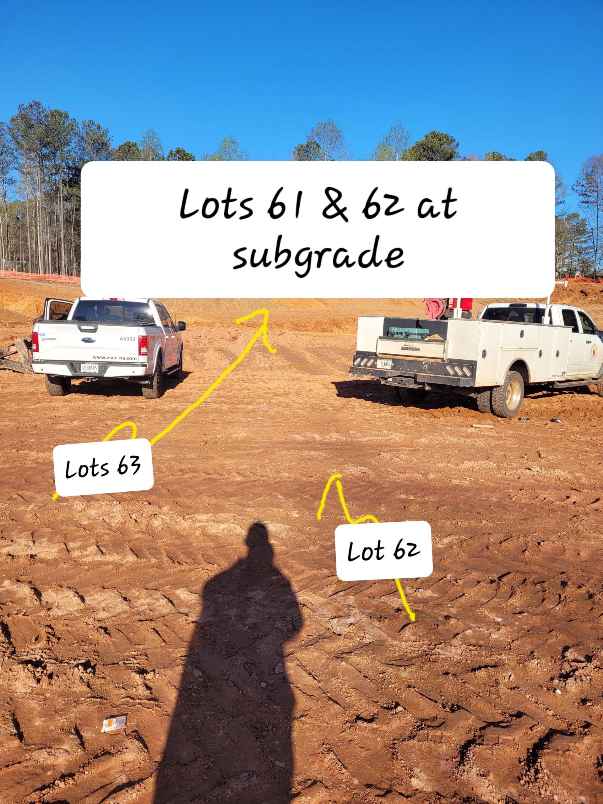 Observed the placement of fill/grading for Lots #62 and #63 today. Compaction tests were performed using a nuclear density gauge. Overall, the results of density testing did not meet the project and ASTM requirements due to excessive moisture contents.  Contractor was recommended to scarify and aerate prior to recompaction.  Results are attached in separate reports.