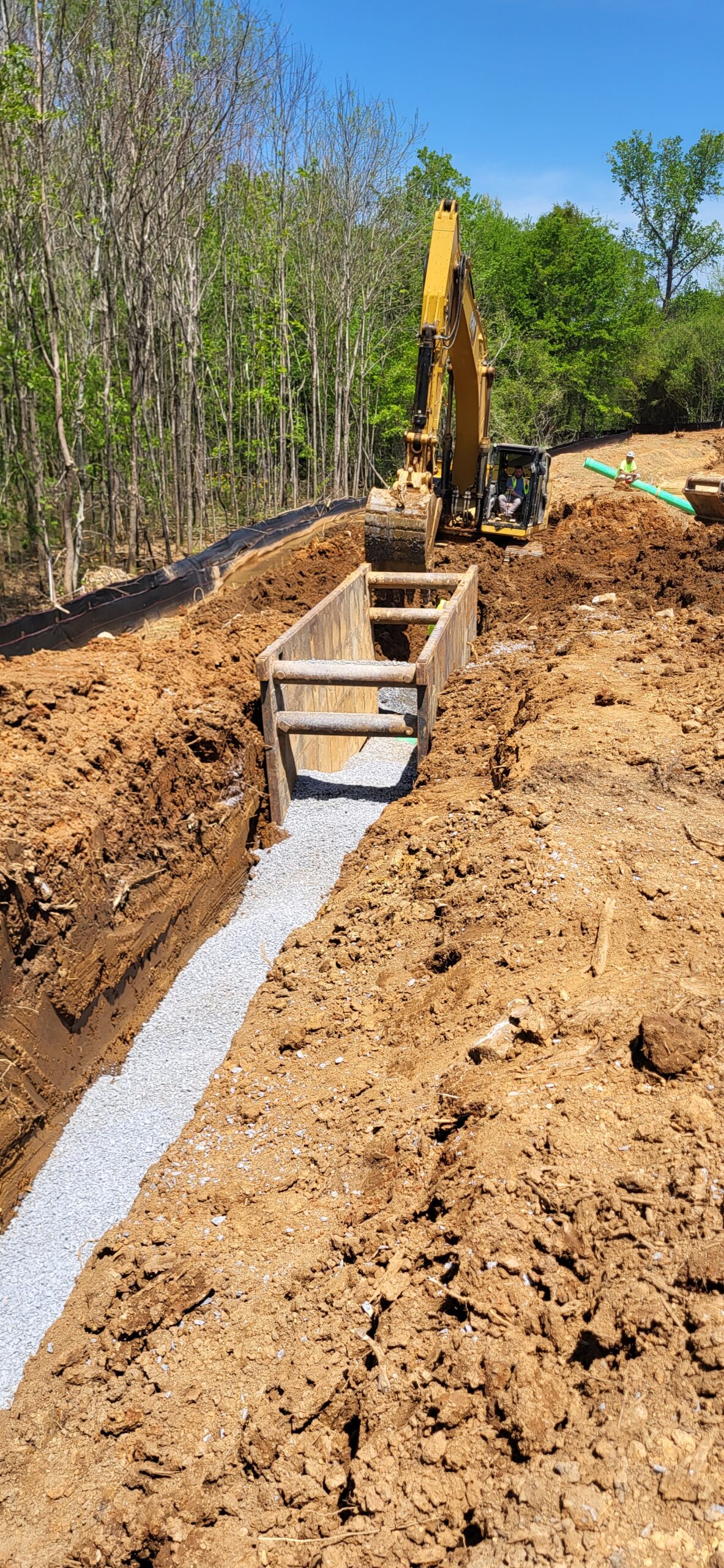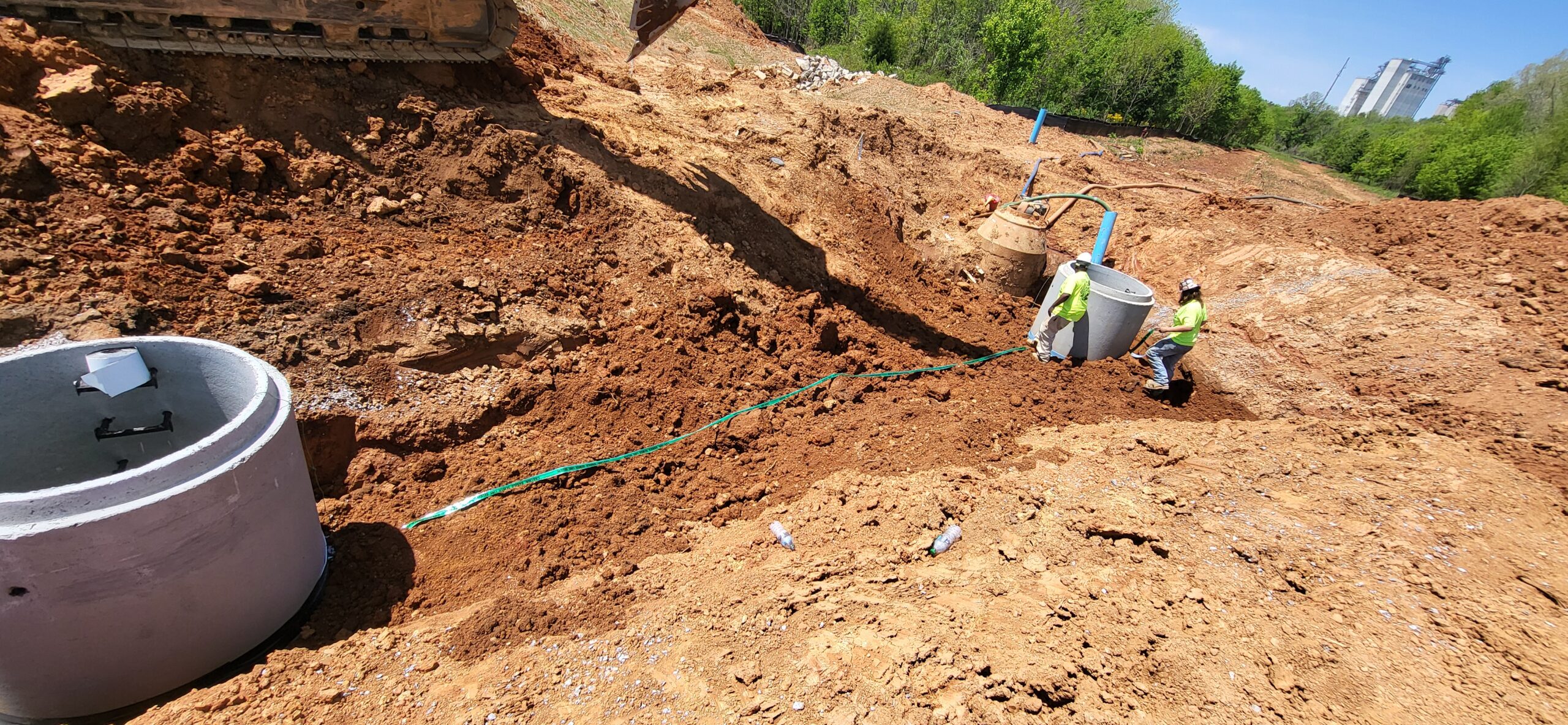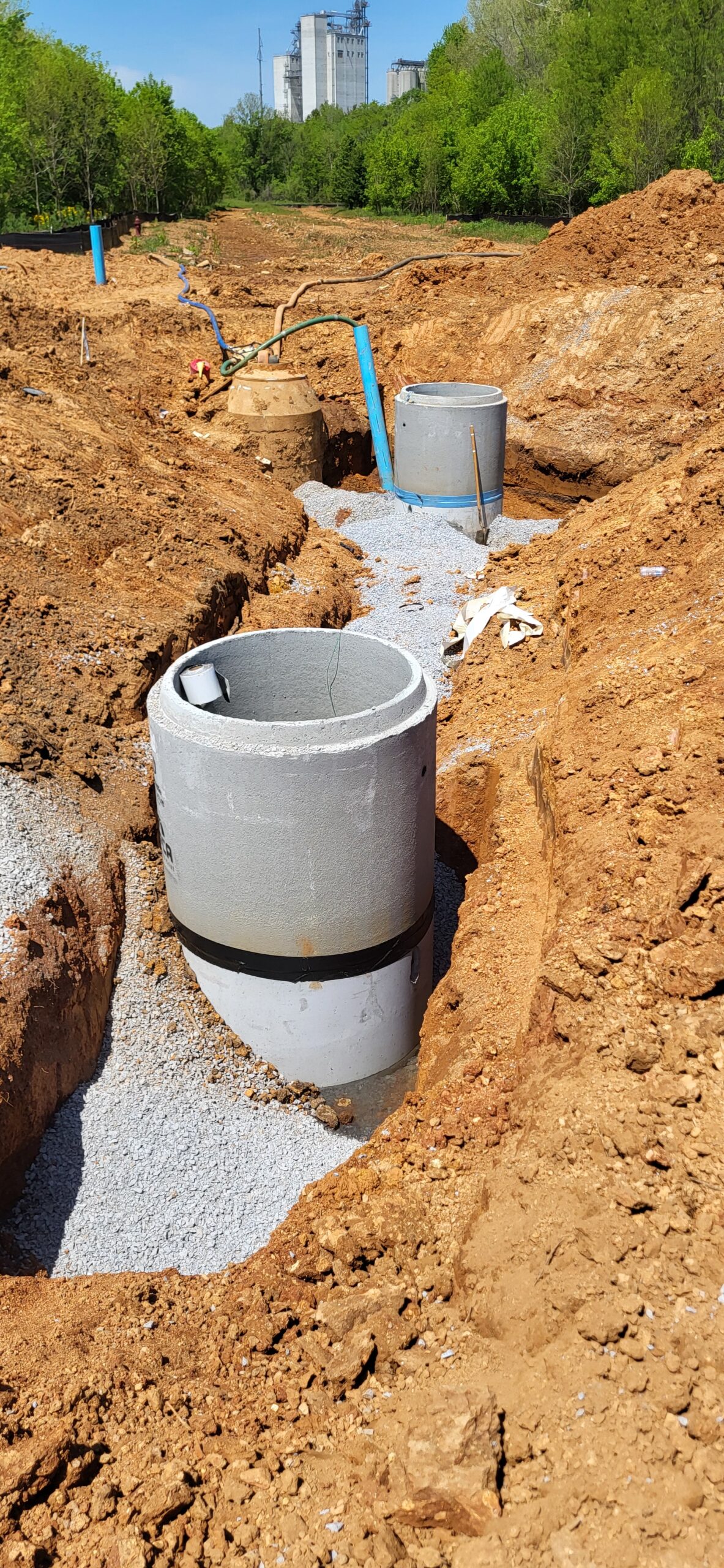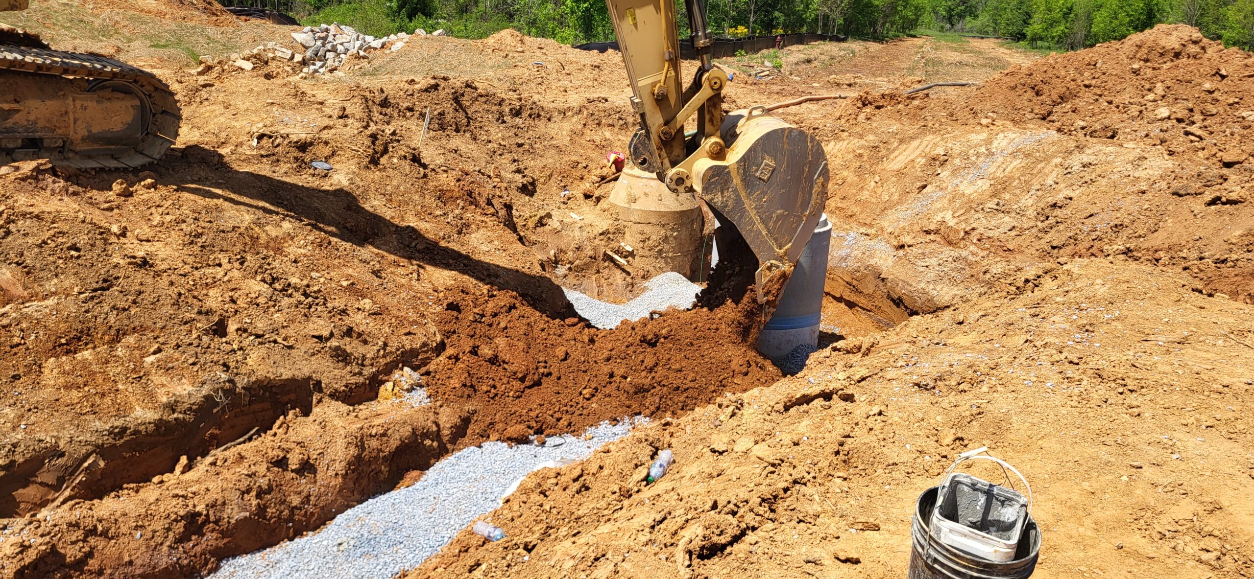 The technician observed the installation of SSMH 1.0B at the approximate elevation of 745.9. The excavation was approximately 4 feet, and was backfilled with approximately 3 feet of riprap, and capped with approximately 1 foot of No. 57 stone to elevation. The contractor then began backfilling around SSMH1.0A and SSMH1.0B.