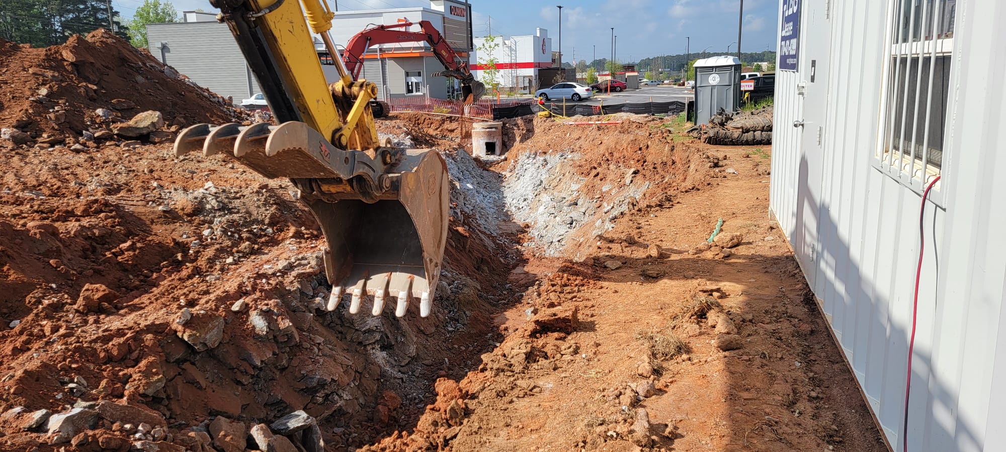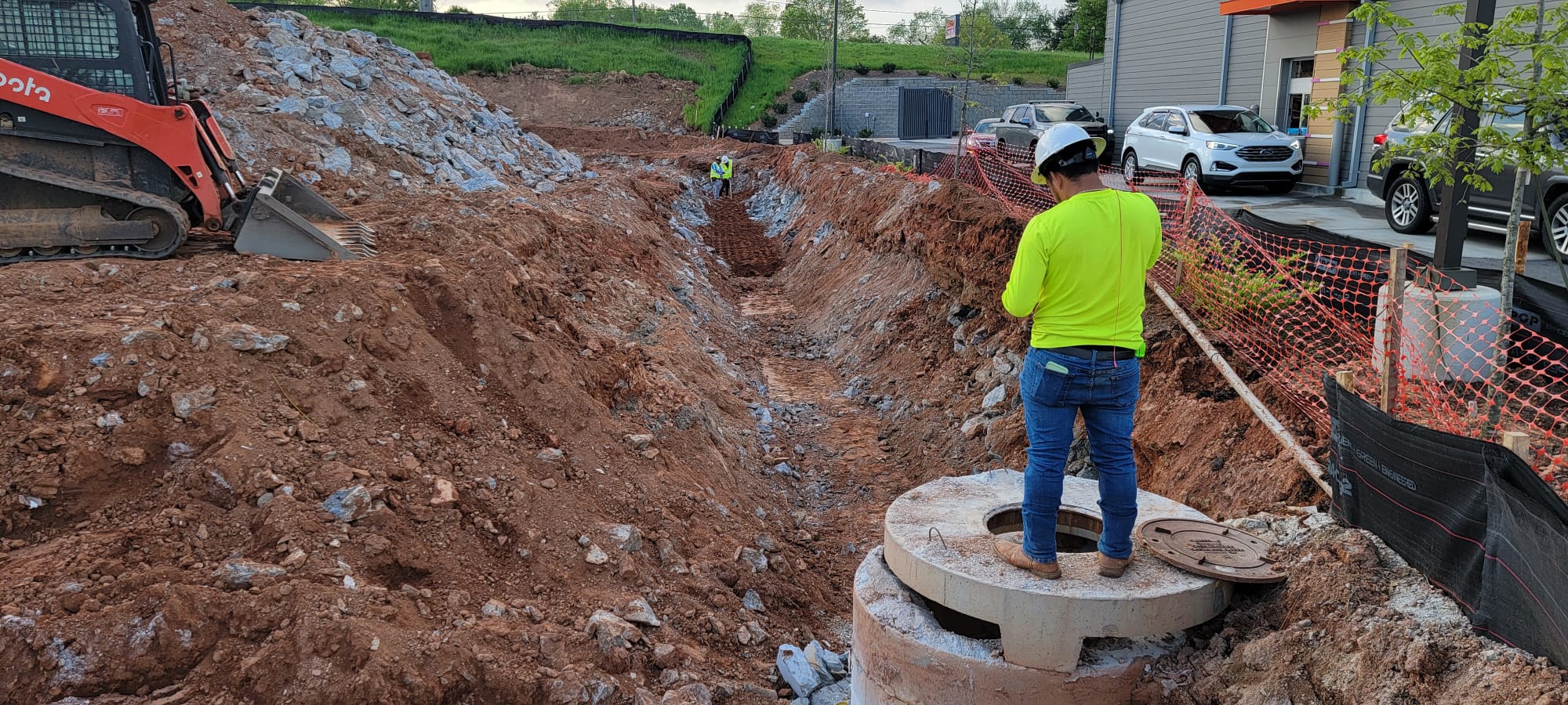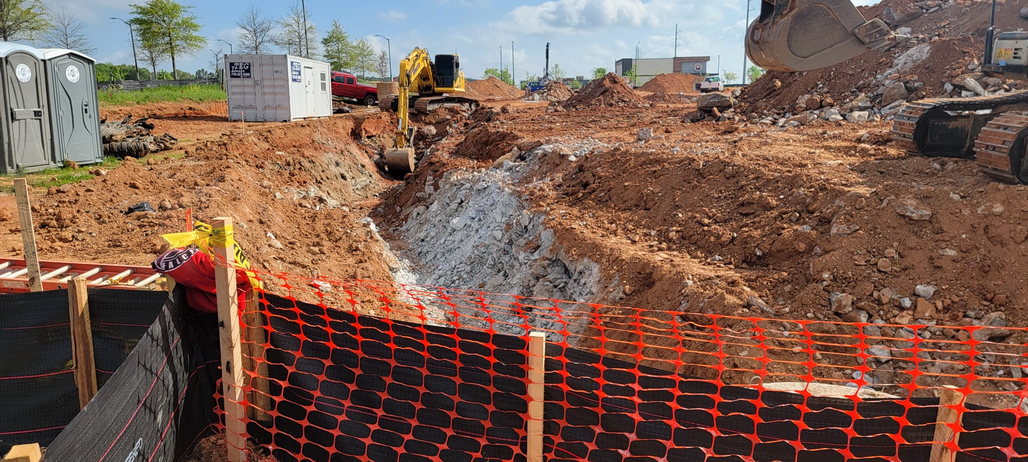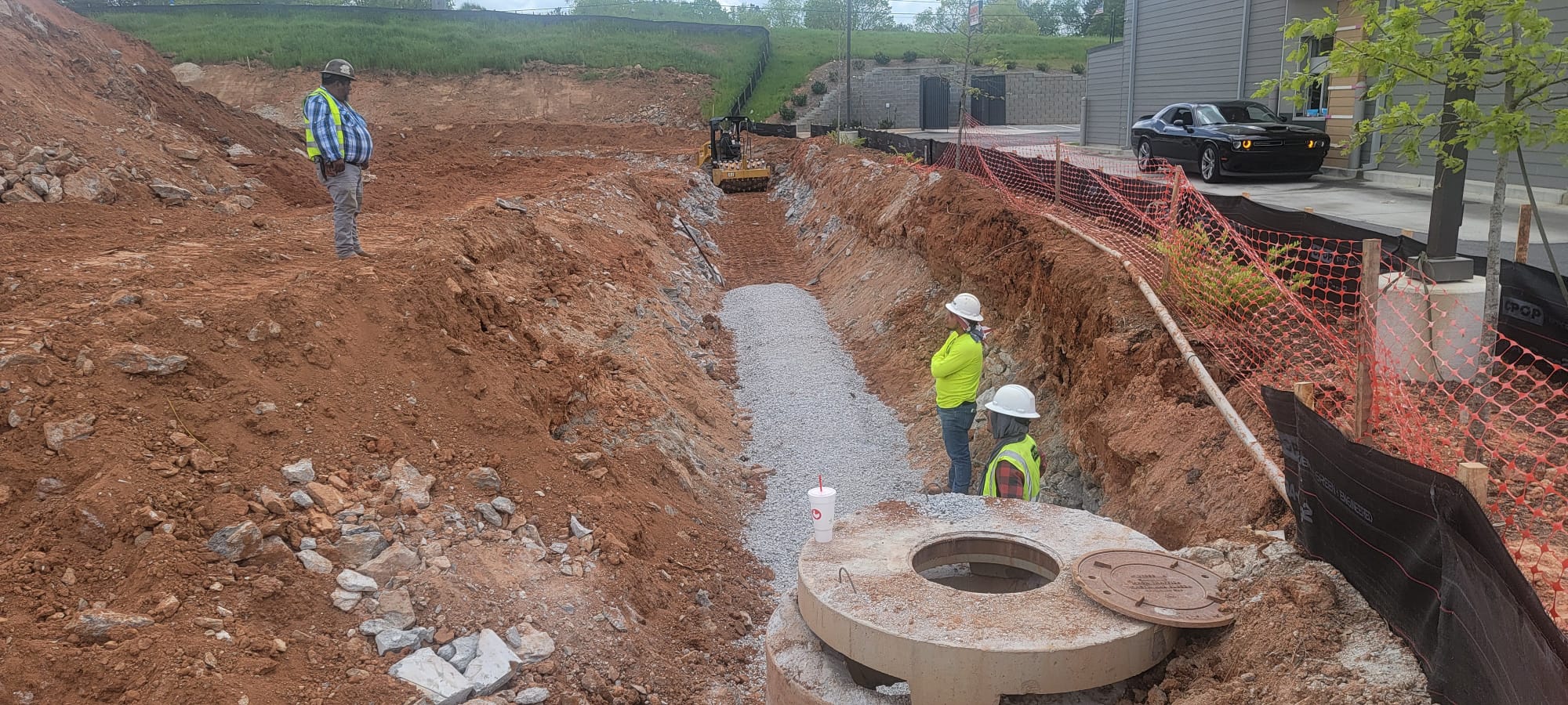 • The contractor was installing 18-inch stormwater piping and placing No. #57 stone around the pipe.
