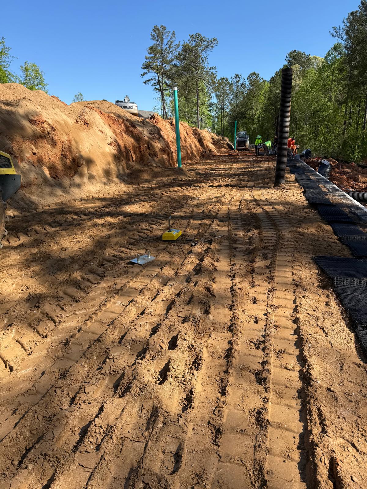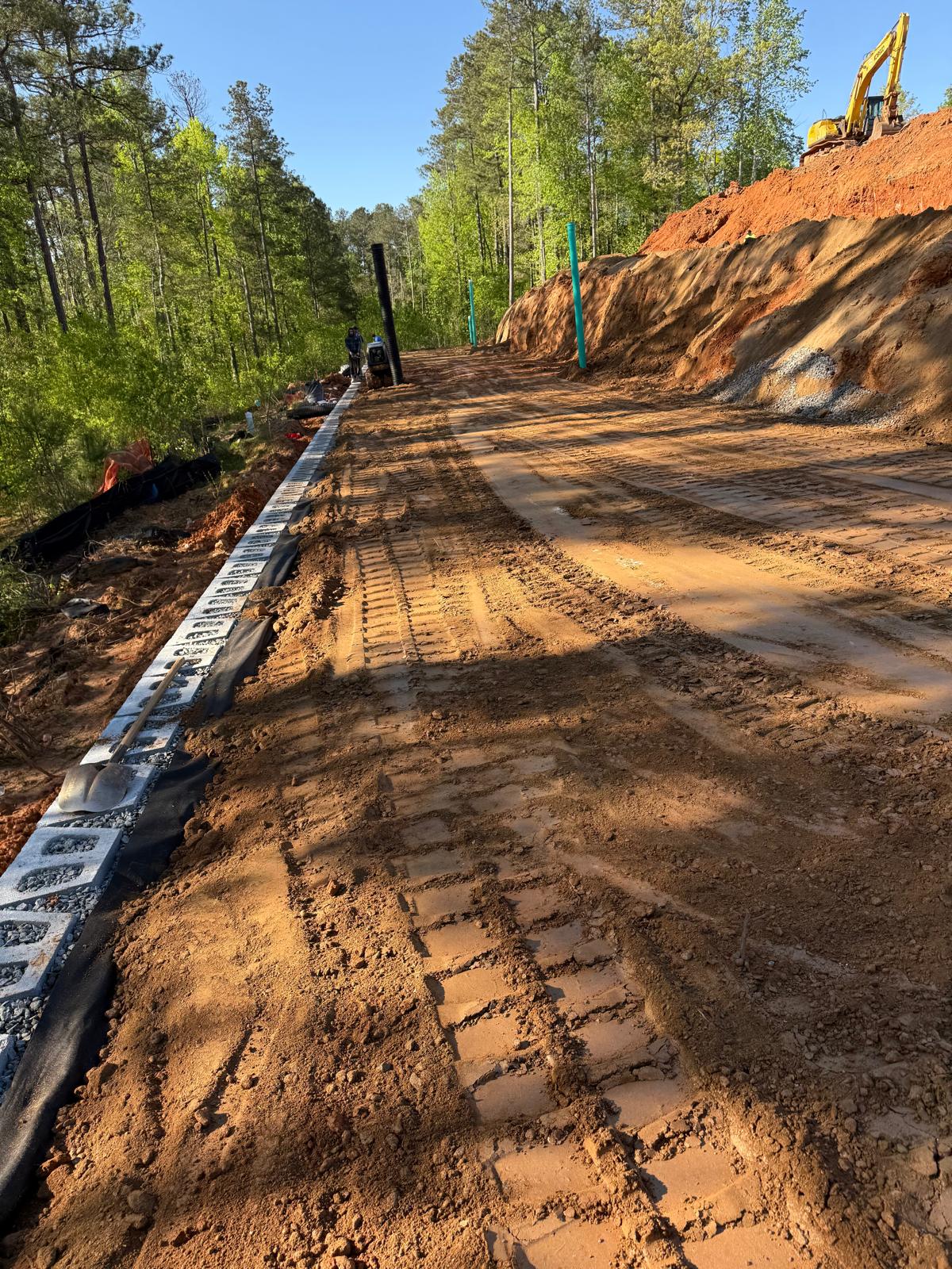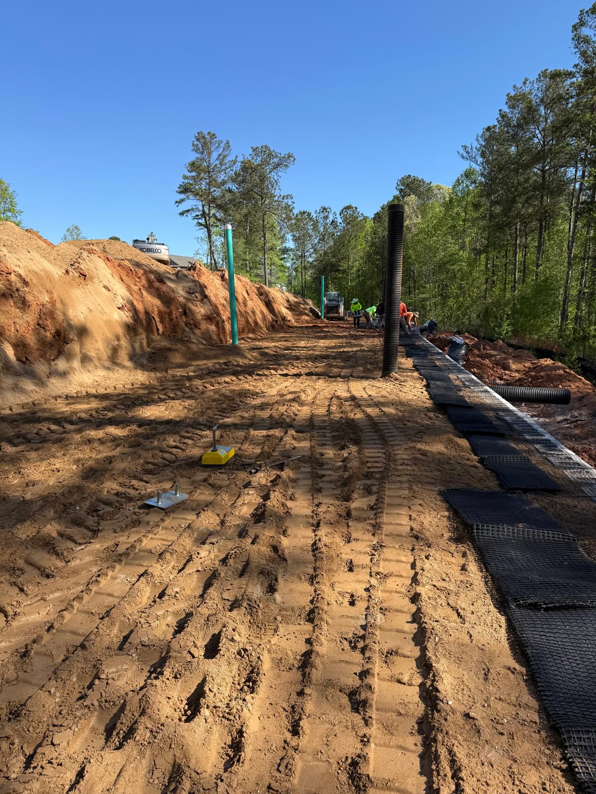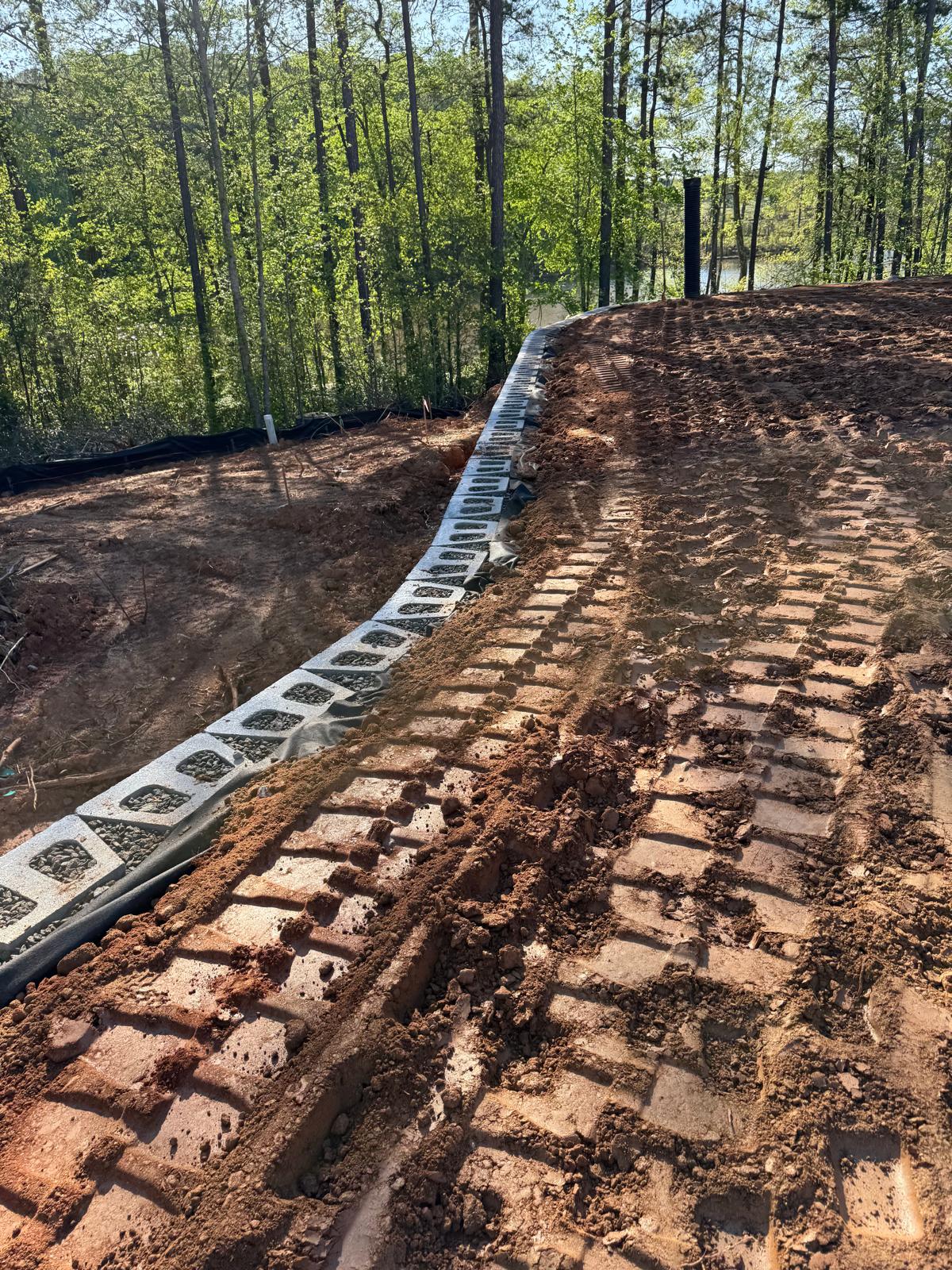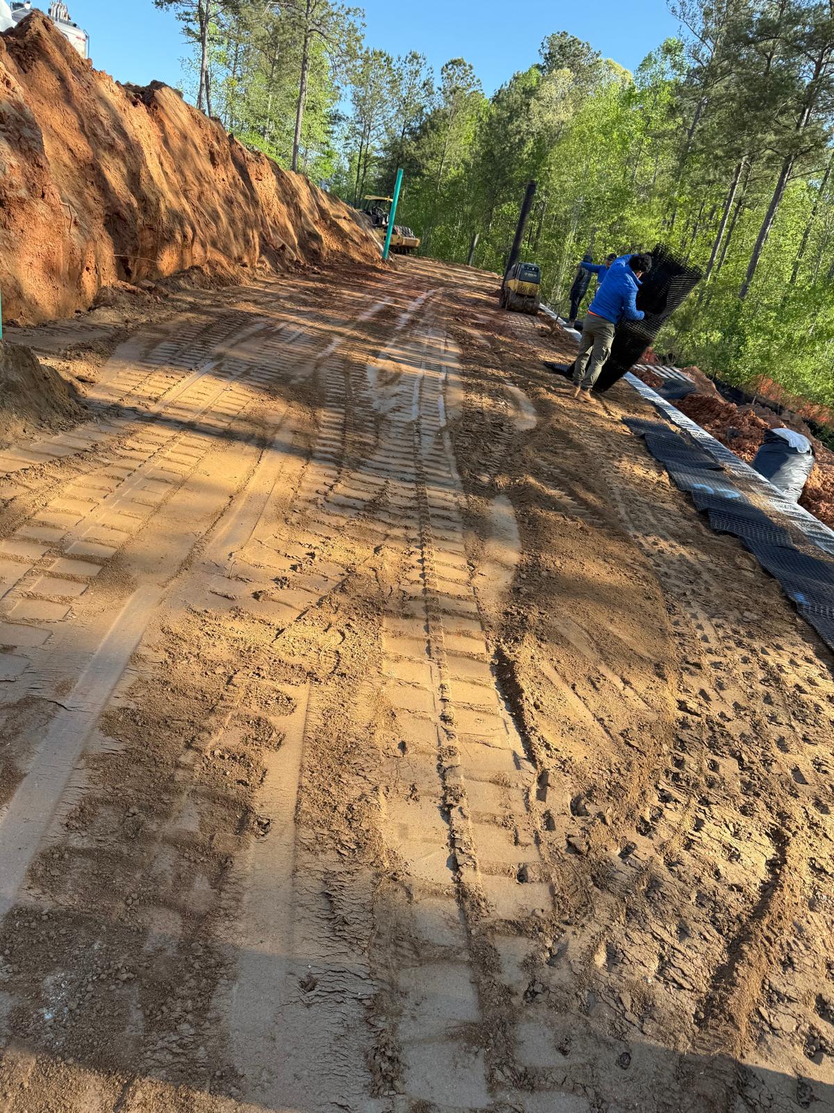 Following backfills operations, preparations commenced for the next course of retaining wall construction, including Geo Grid Reinforcement sheet placement and layout for the upcoming lift.