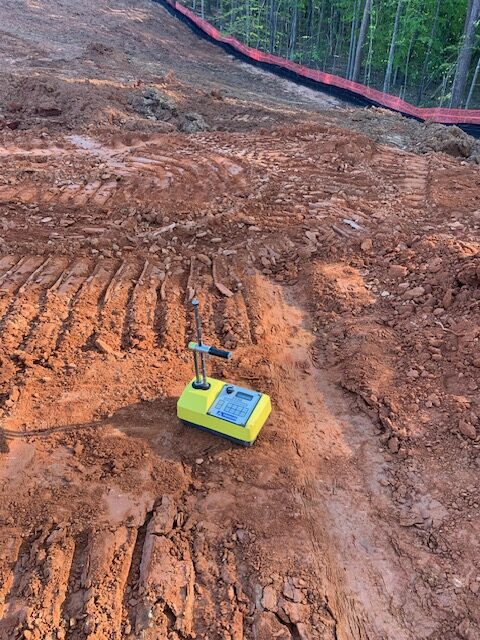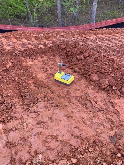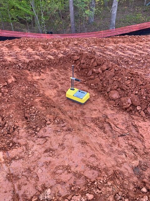 Our ASEC representative was on site as requested and observed the grading contractor CGU re-blade and compact in-place fill for pond #2 east side embankment as recommended.  The writer performed density tests using a Troxler nuclear gauge model 3430, serial no. 38069 and performed a field proctor on in-place soils.  Compaction results appeared to meet job specifications for compaction. Our representative also observed residual subgrade soils at the northwest corner embankment of pond #1 after undercutting and removing saturated washed silt. The subgrade was probed using a rounded end steel rod and was then suitable for fill placement. Further density tests were performed after two feet of compacted fill placement.