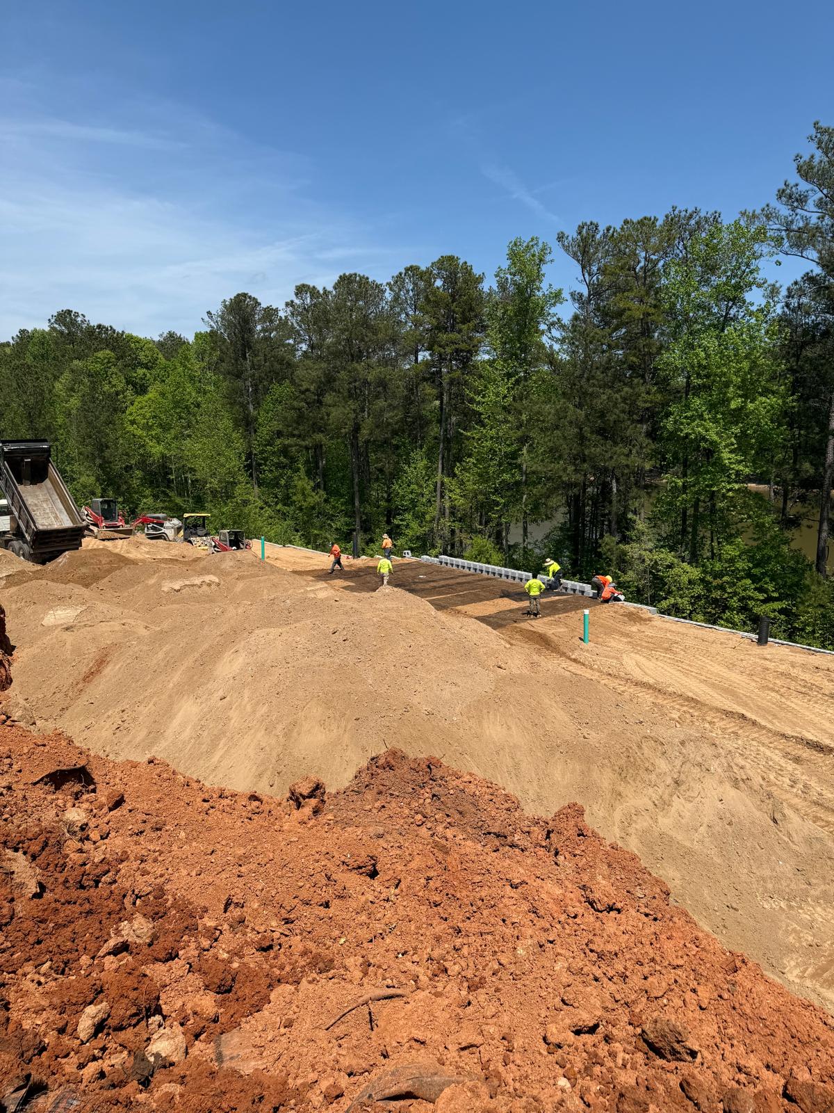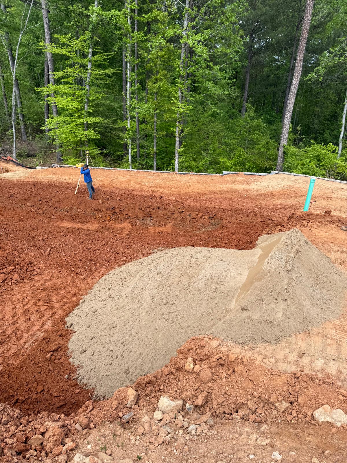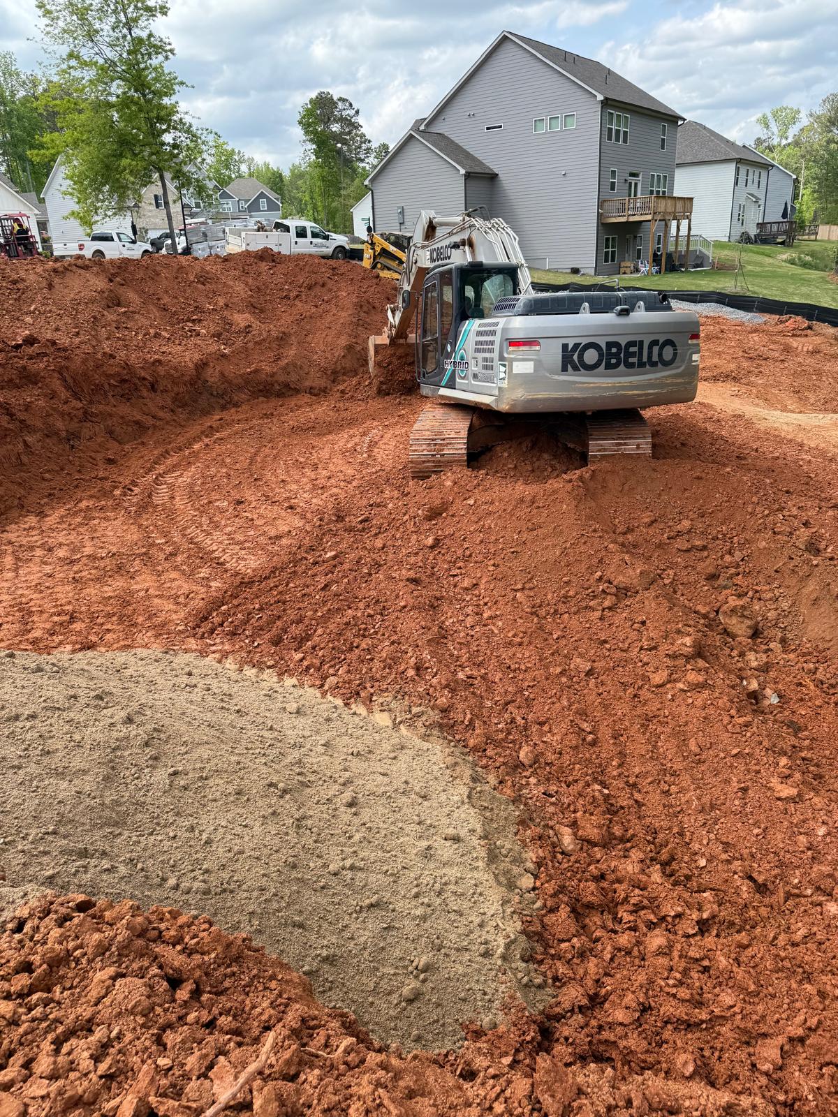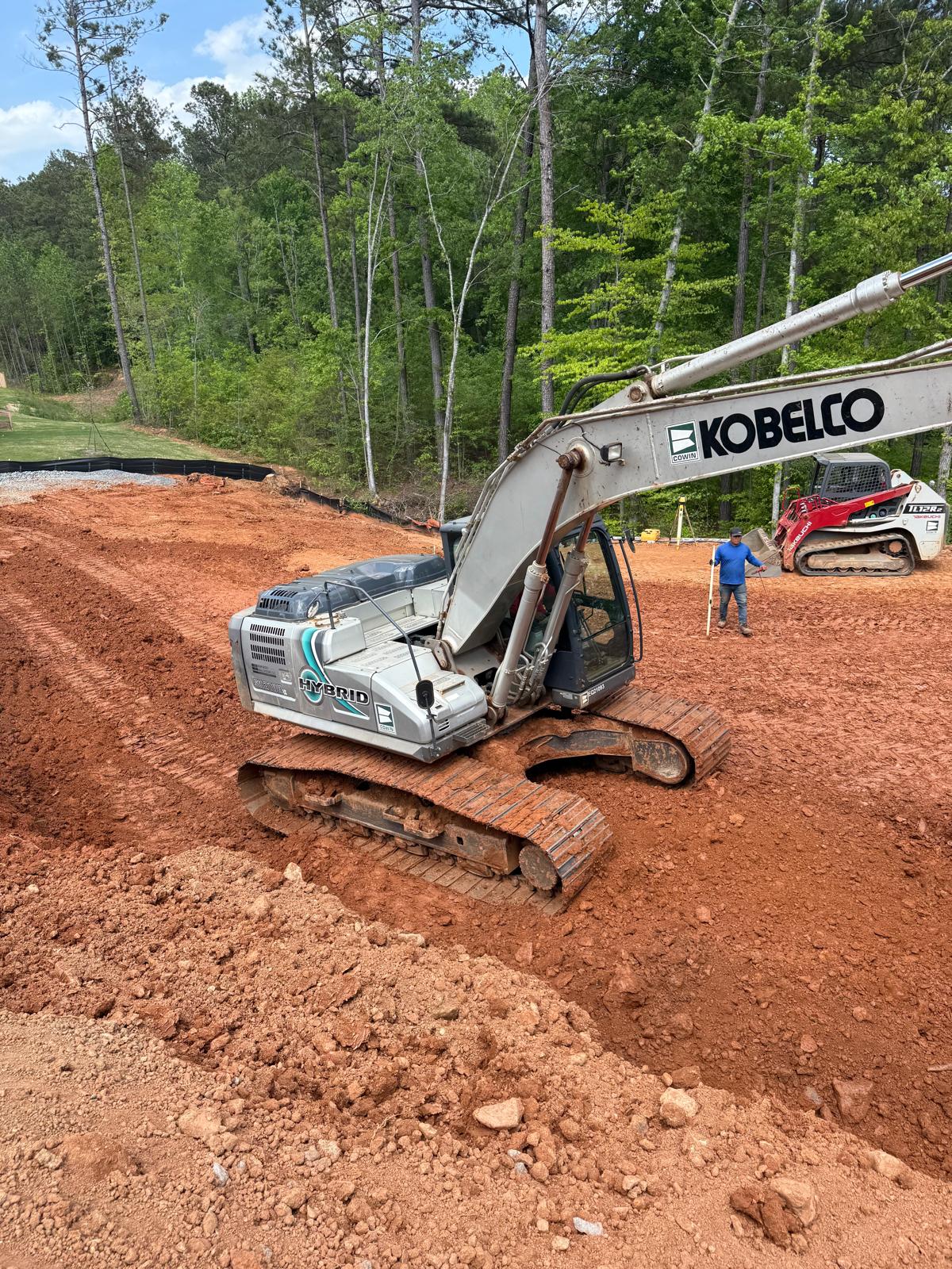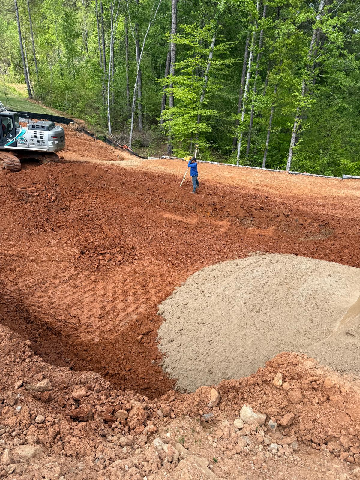 Focusing on backfilling and compaction operations behind the newly installing retaining wall structure along Lots #224–3229, Following the drainage installation, the next layer of backfill was placed over the previously installed geogrid reinforcement sheet, in preparation for subsequent compaction. Excavation and placement of fill material was conducted using a Kobelco 310LC excavator and transported on site with a CAT 750 dump truck. Subsequent to placement, two Takeuchi TL12R2 Bobcats were used to distribute the fill uniformly along Lots #224–3229. Once the fill was evenly spread, compaction was carried out using a Bomag BW211 sheep foot compactor roller.