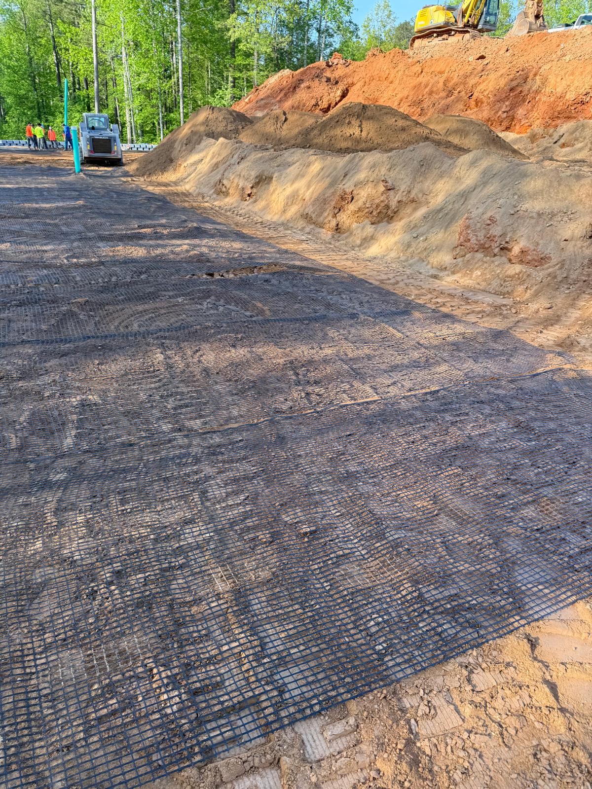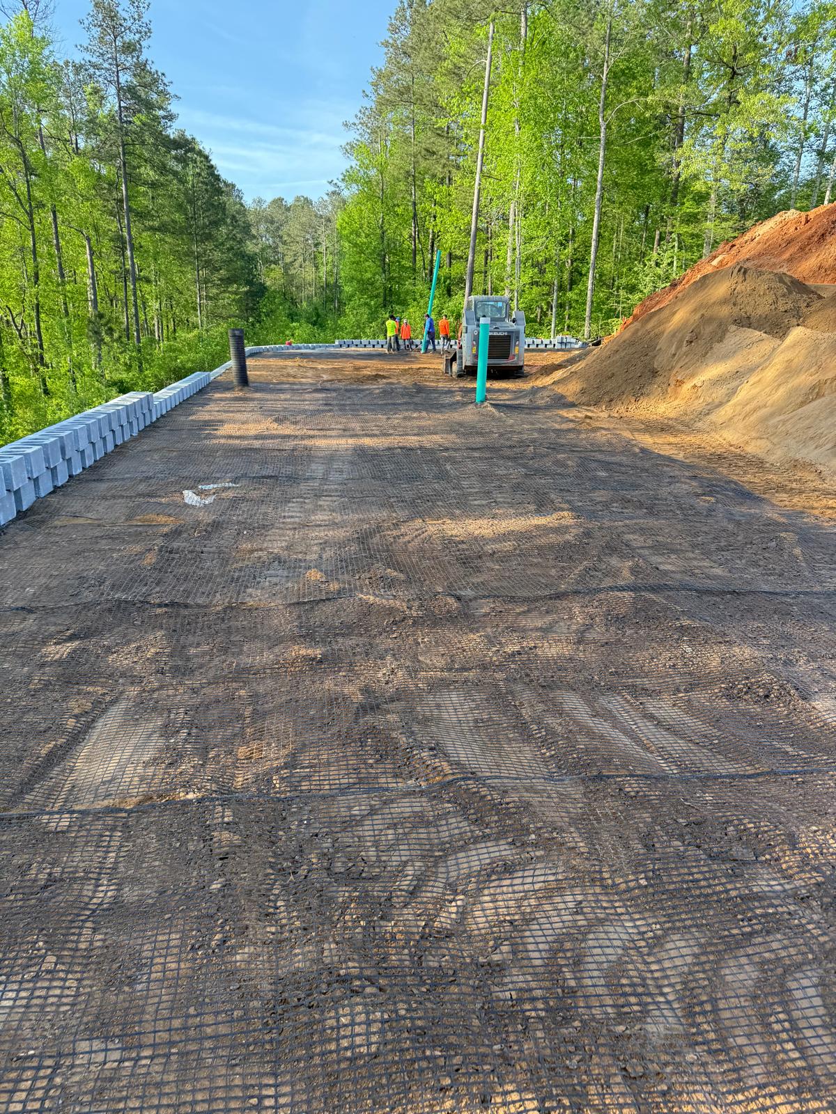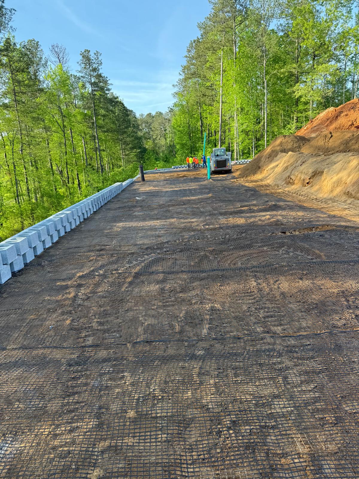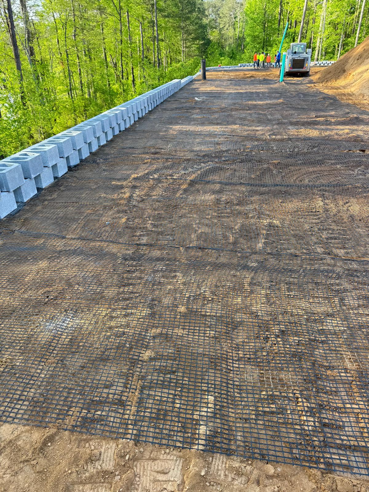 Following backfills operations, preparations commenced for the next course of retaining wall construction, including Geo Grid Reinforcement sheet placement and layout for the upcoming lift.