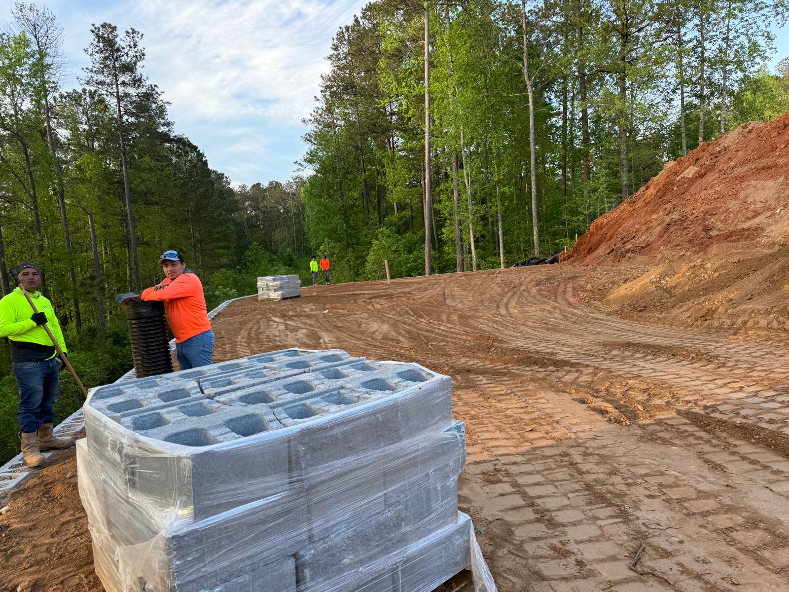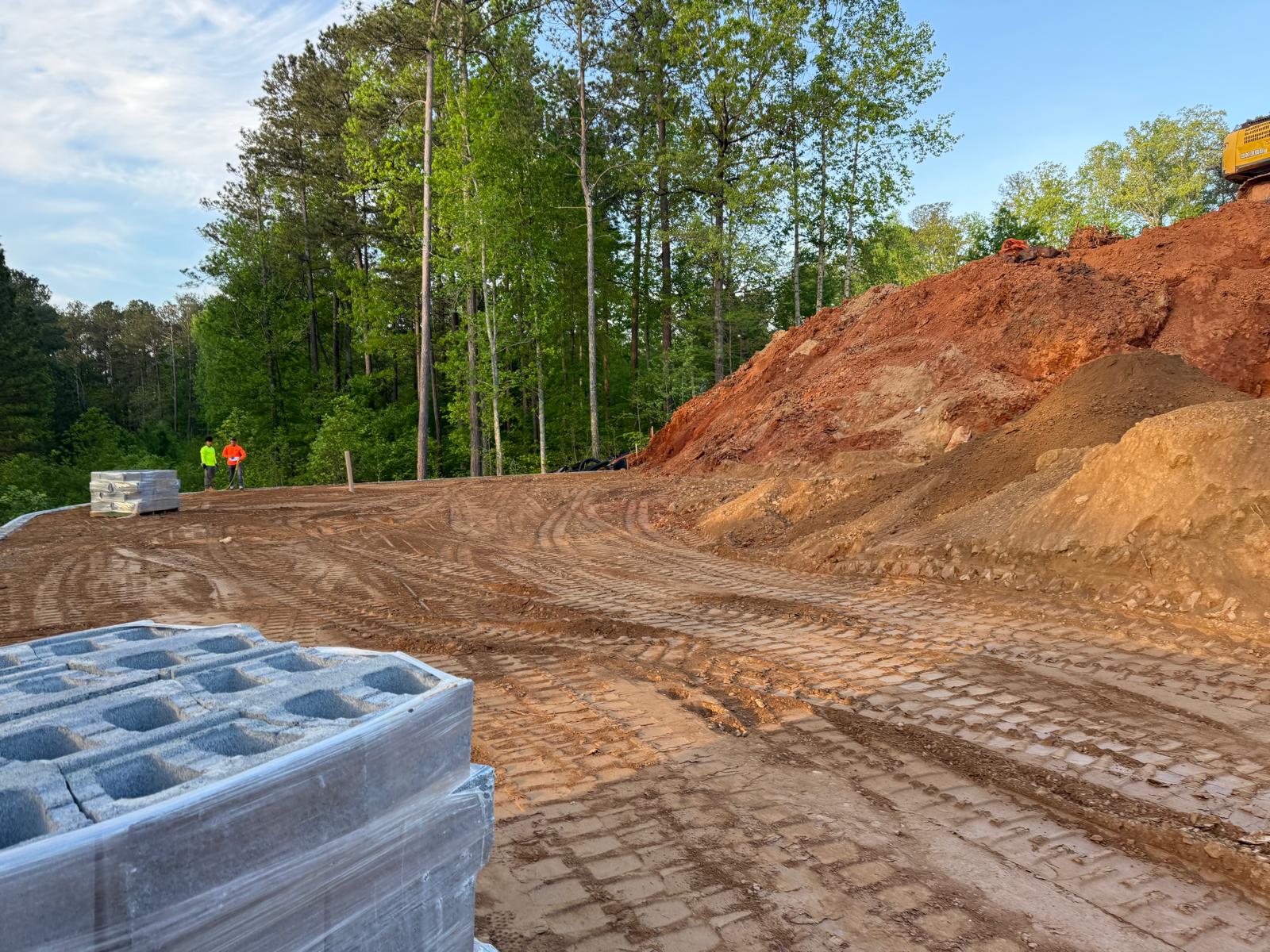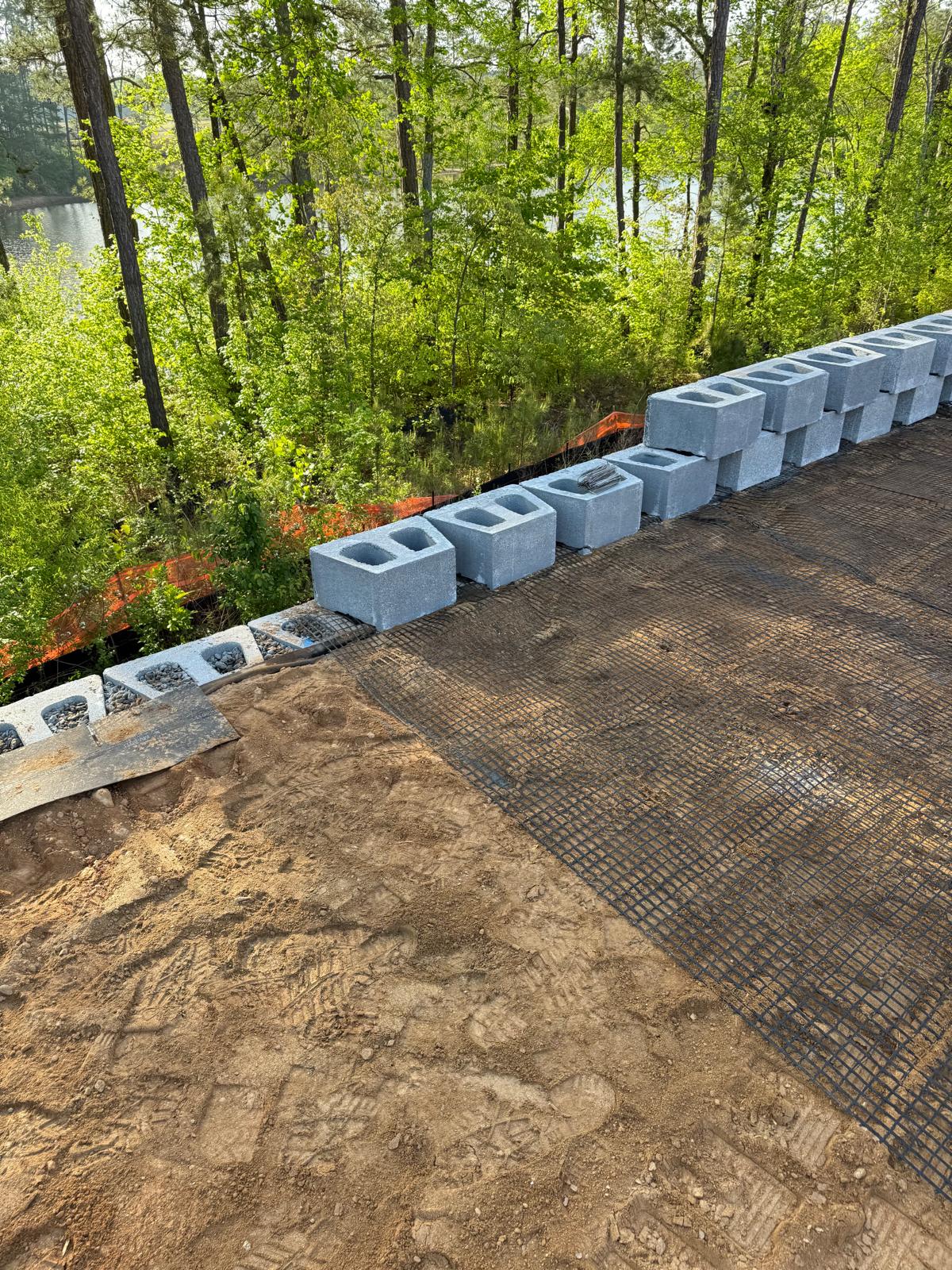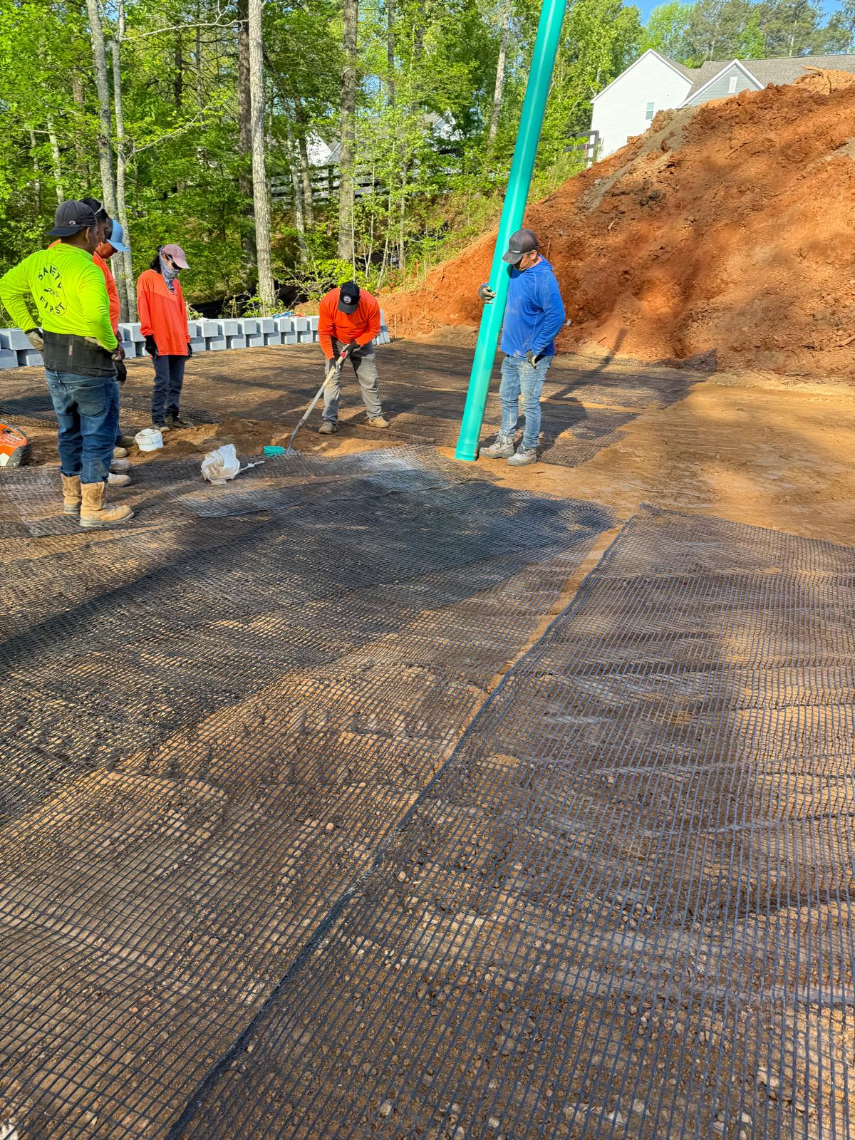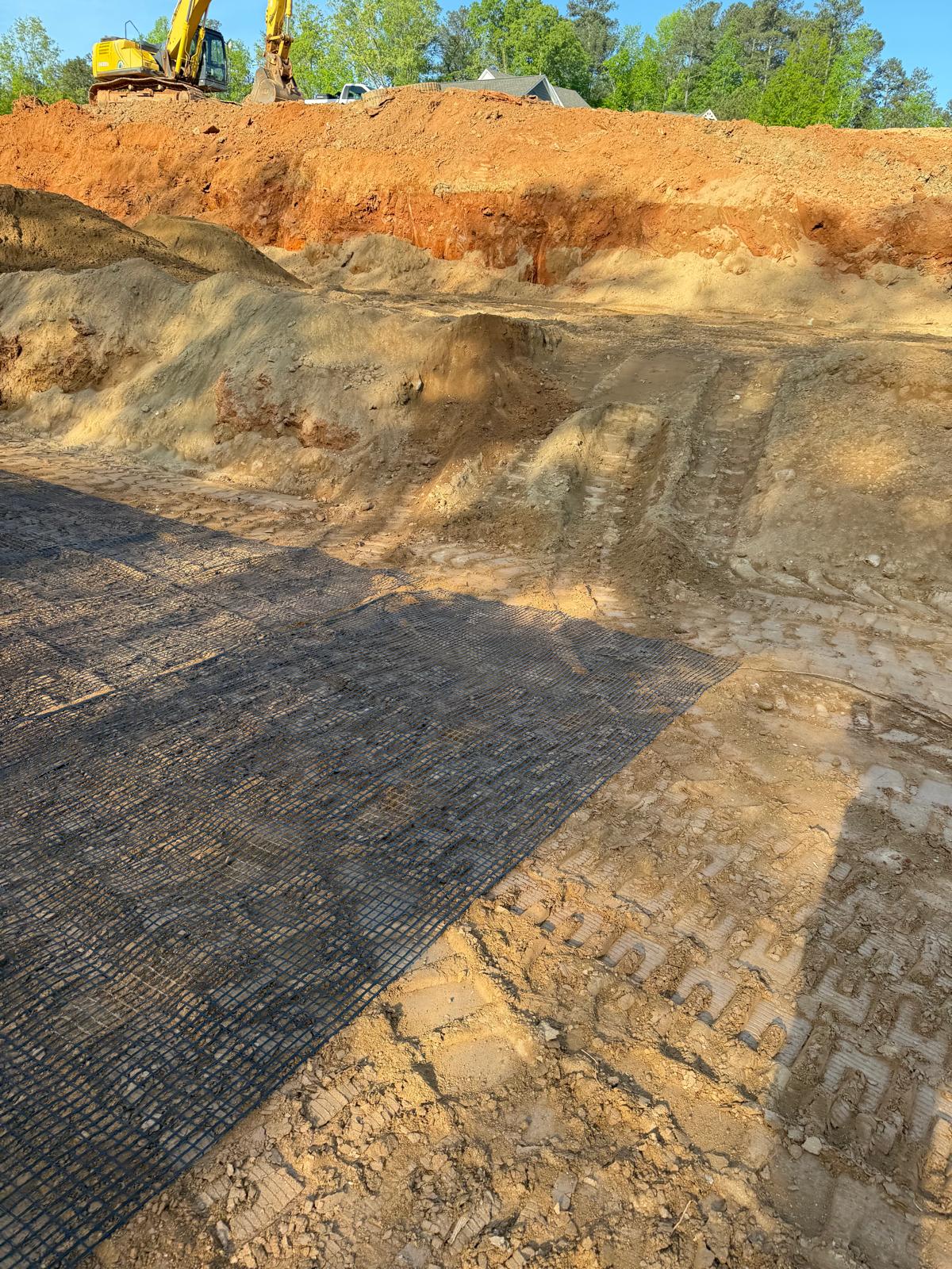 Following backfills operations, preparations commenced for the next course of retaining wall construction, including Geo Grid Reinforcement sheet placement and layout for the upcoming lift.