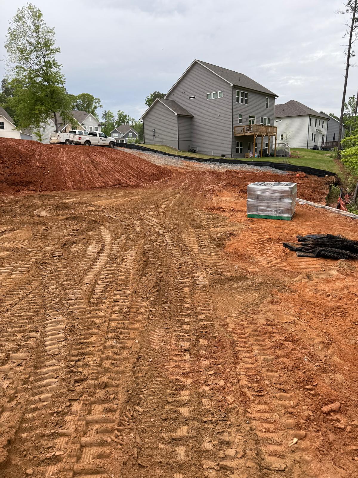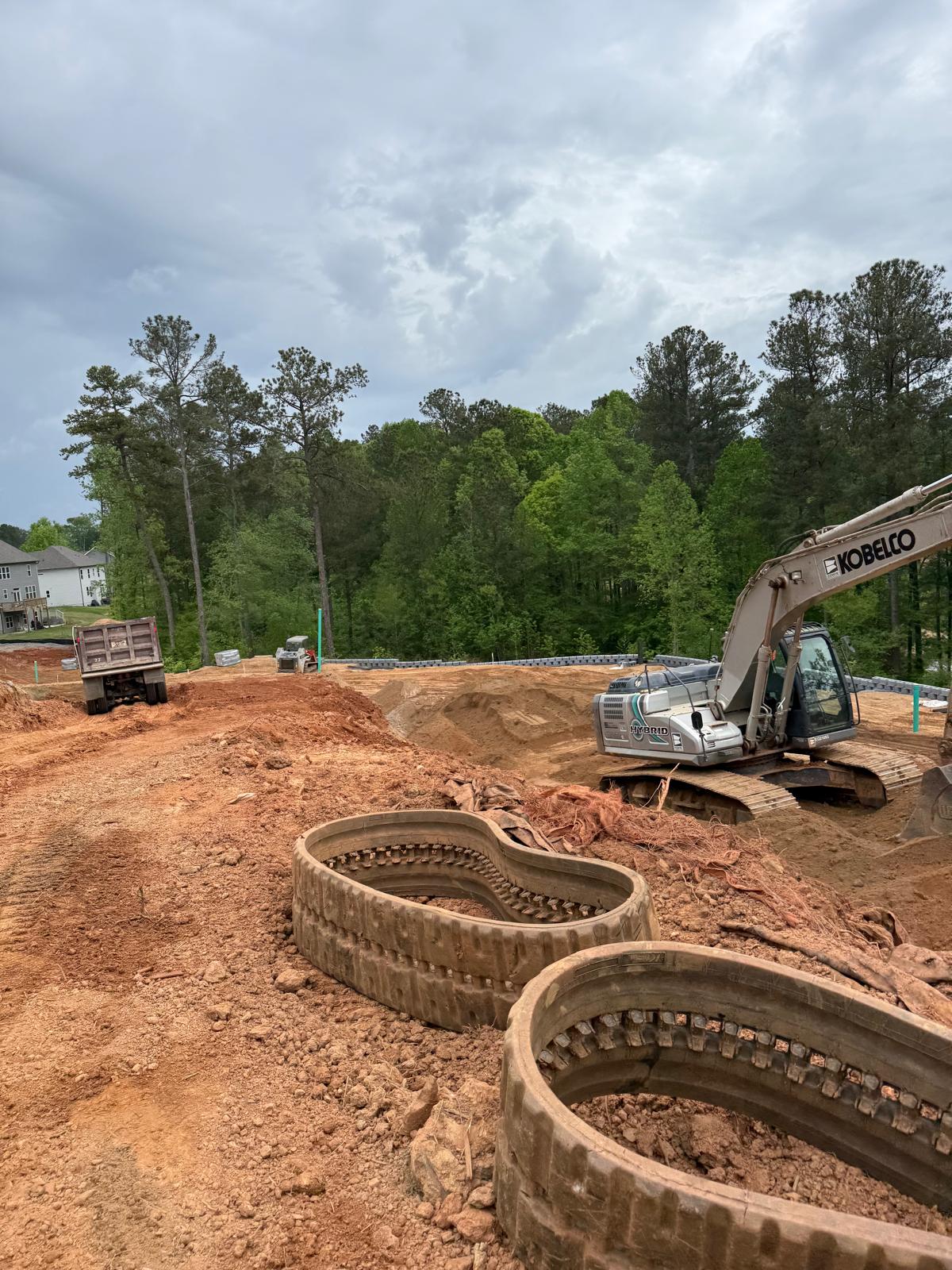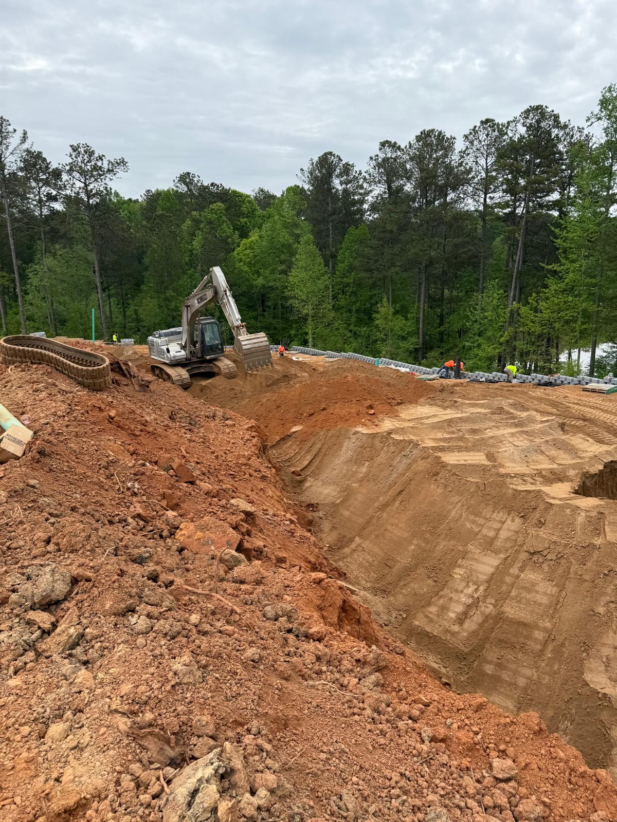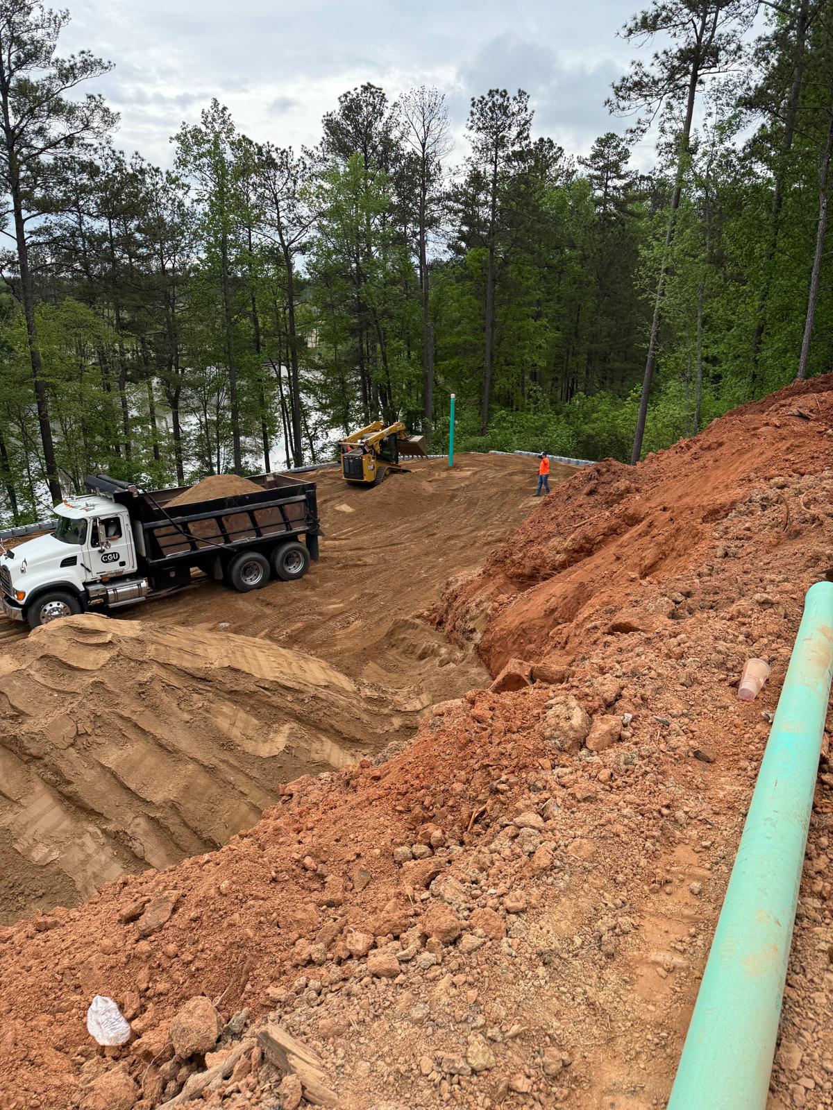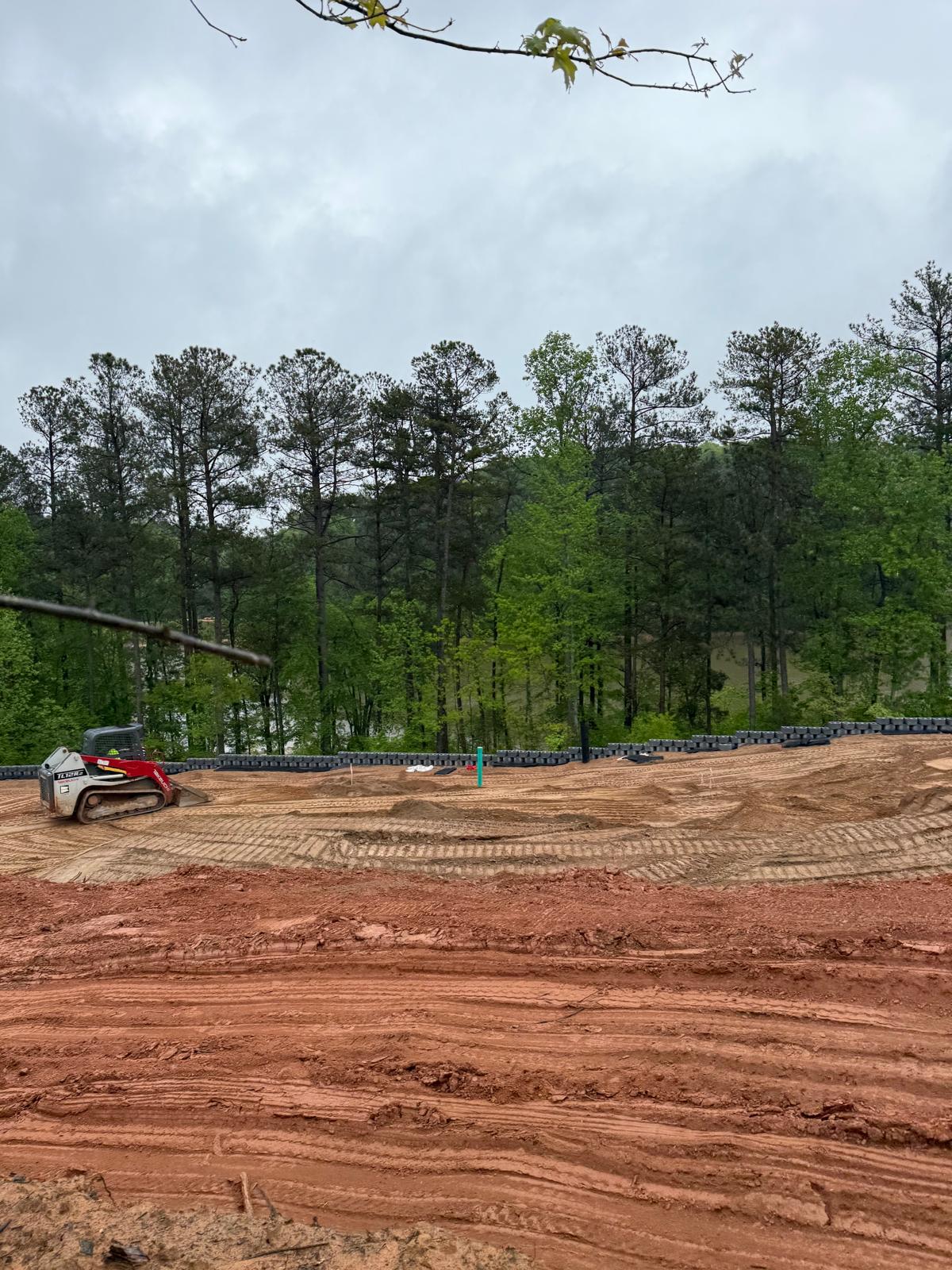 Focusing on backfilling and compaction operations behind the newly installing retaining wall sections along Lots #224–#229. Following the drainage installation, the next layer of backfill was placed over the previously installed geogrid reinforcement sheet, in preparation for subsequent compaction. Excavation and placement of fill material was conducted using a Kobelco 310LC excavator and transported on site with a CAT 750 dump truck. Subsequent to placement, two Takeuchi TL12R2 Bobcats were used to distribute the fill uniformly along Lots #224–#229. Once the fill was evenly spread, compaction was carried out using a Bomag BW211 sheep foot compactor in combination with a Bomag RR-106 roller. A new type of soil material was borrowed today, and a sample of this material was dropped by the ASEC laboratory for a Moisture-Density relationship (proctor).
