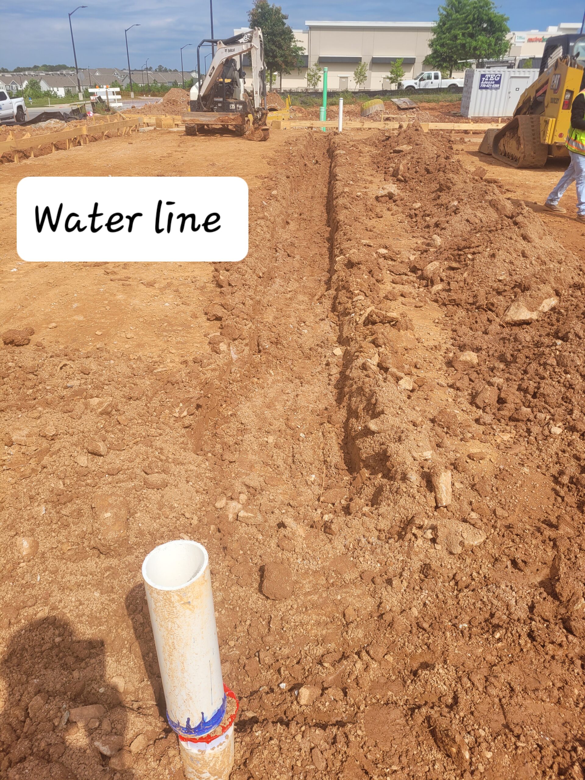 Photo showing water line with wet dirt excavated to be backfilled by rock