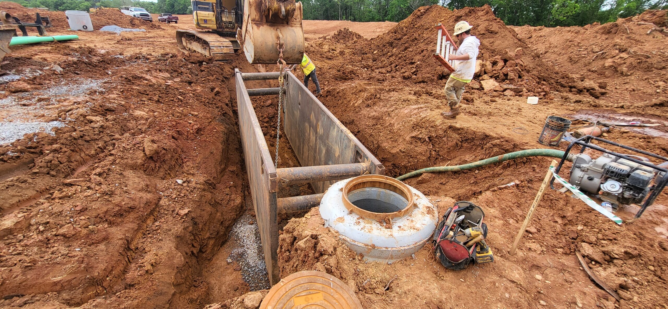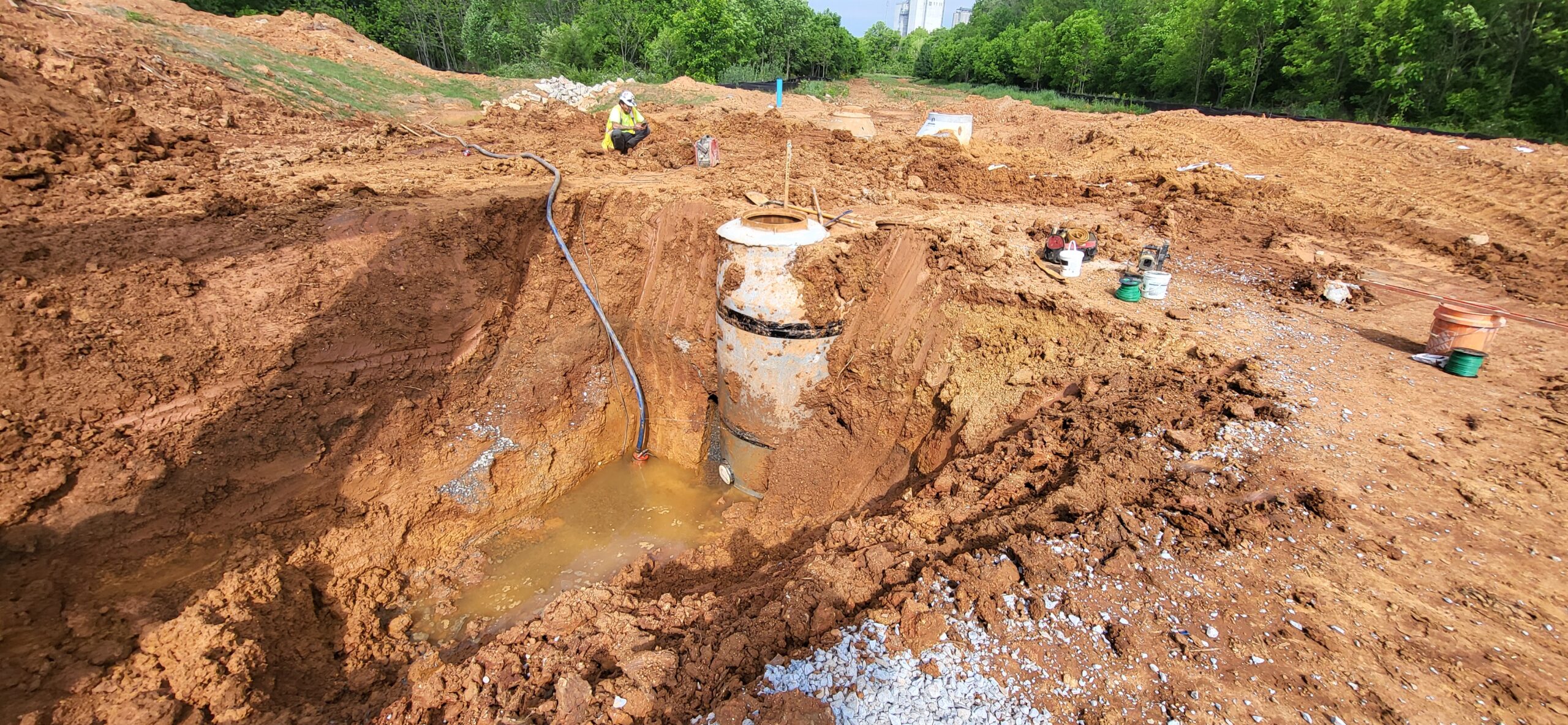 The contractor began excavating SSMH1.0B to SSMH1.1. Approximately 10 feet from SSMH1.0B 5 feet was undercut and replaced with large riprap and capped with approximately 1 foo to 1.5 feet of No. 57 stone to elevation.