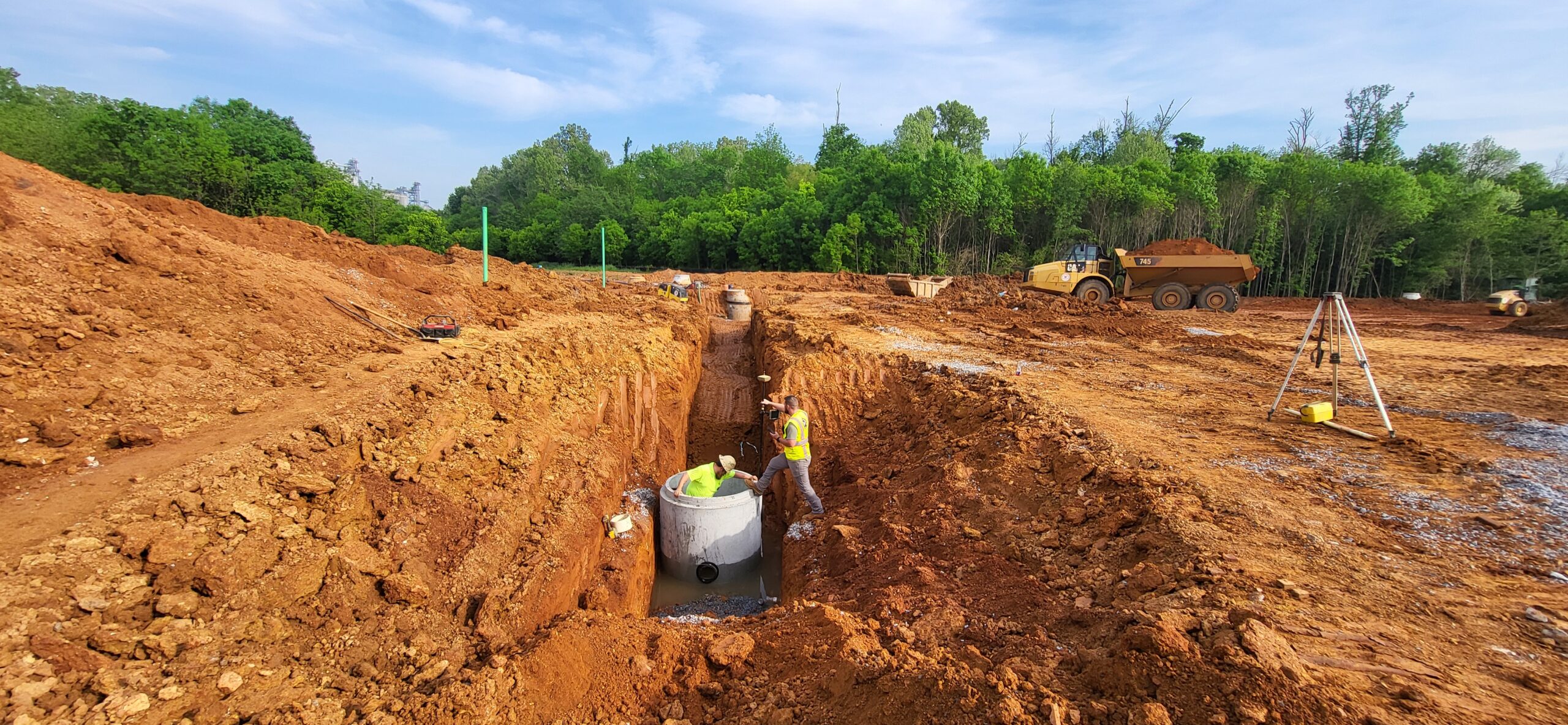 The contractor began excavation to SSMH4.0 The technician observed the contractor undercut approximately 1 foot and place No. 57 stone to elevation. The contractor began first layer of backfill and compaction over lines from SSMH2.0.