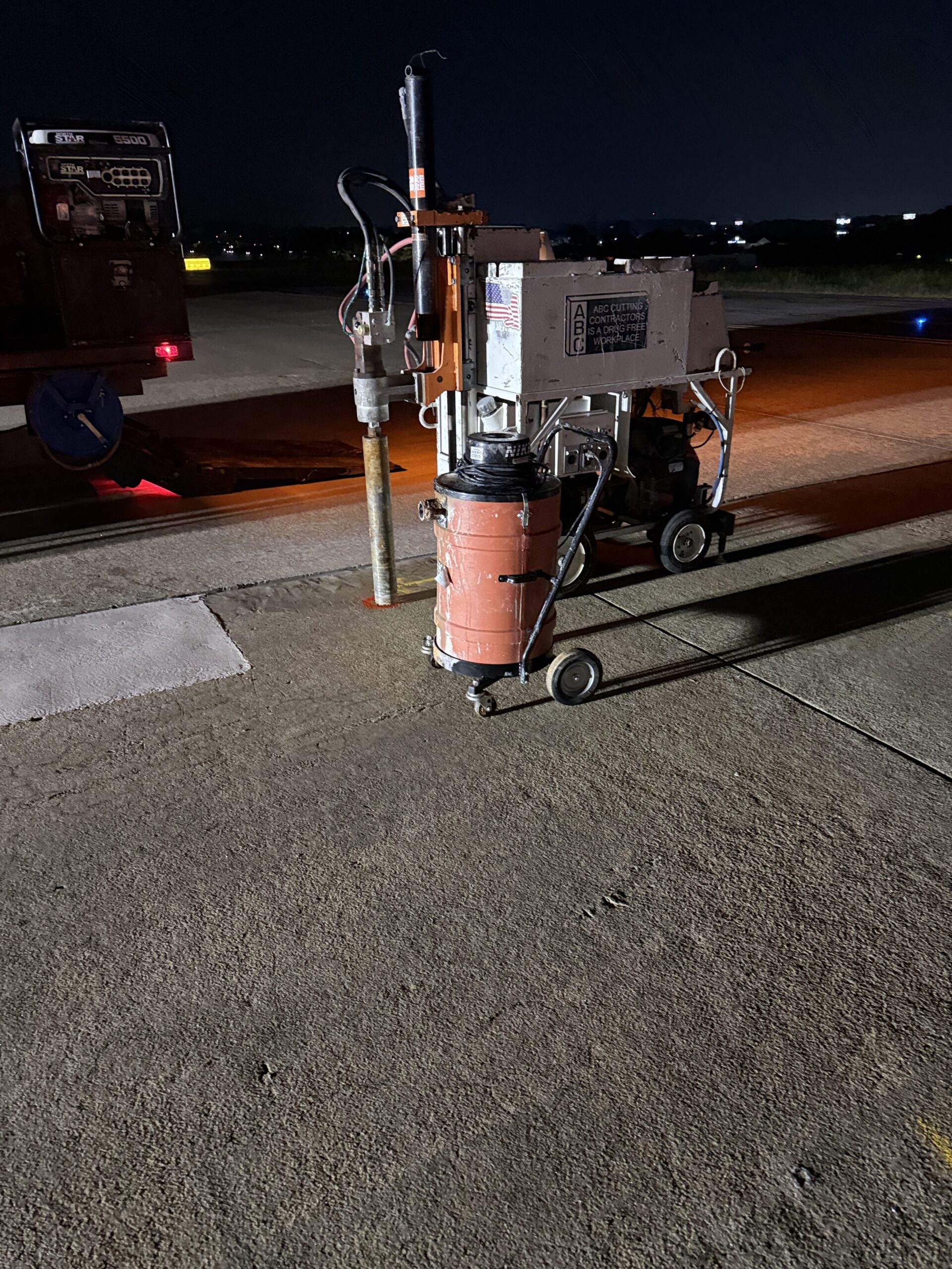 A request was made to document four (4) cores taken as part of the exploration of Runway 9R. The coring operation was conducted with representatives from CW Matthews, ABC Concrete Coring, and ATLNext present on site.