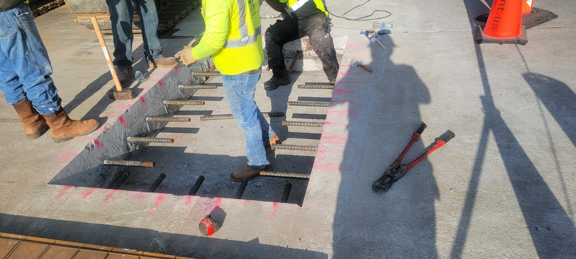 • Dowel bars were found to have epoxy.  Embedment length appeared to be 15 inches into concrete.