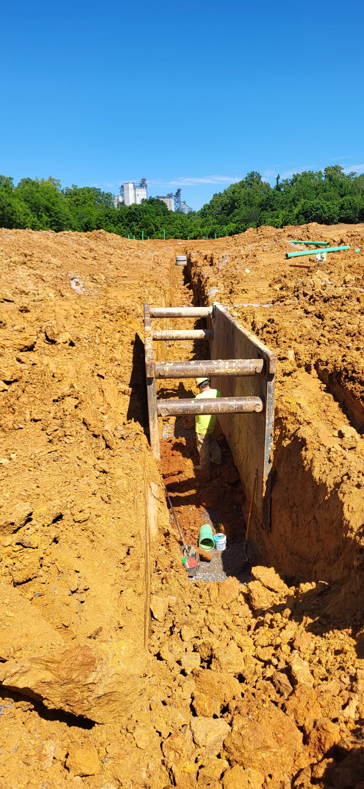 The contractor continued backfilling the pipeline from SSMH4.1 to SSMH4.2. An undercut was approx. 1 foot in depth and bedded with No. 57 stone to elevation.