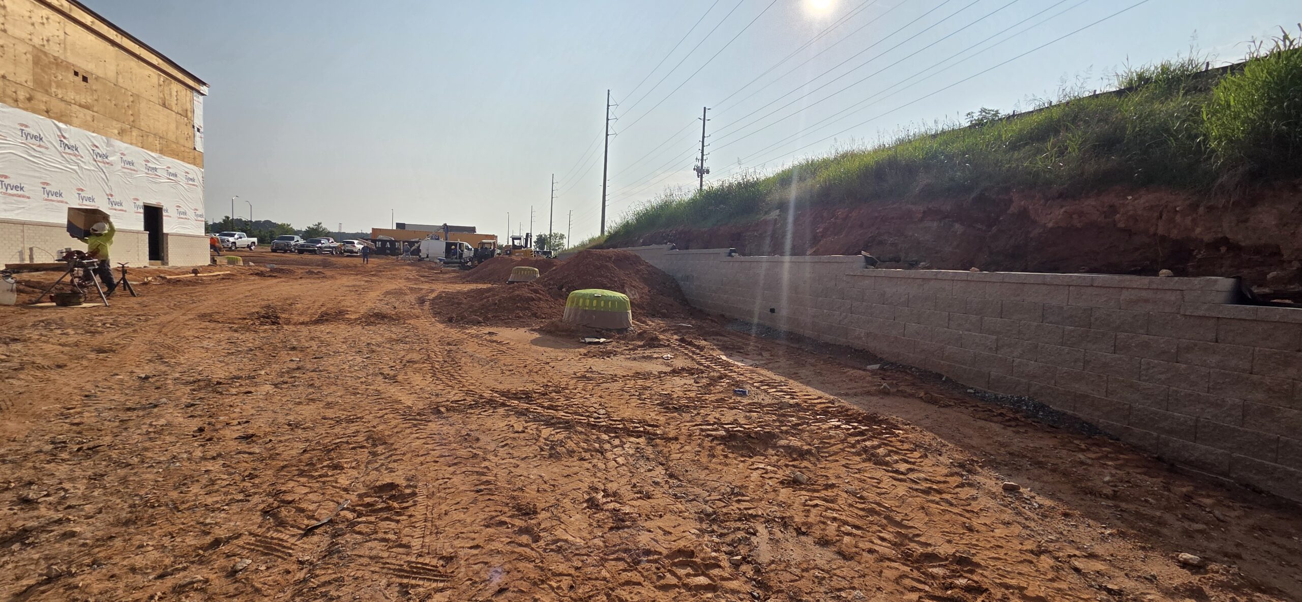 The technician density tested backfill for the retaining wall located on the back side of the site along the main road and also a retaining wall located on the right side of main building.
