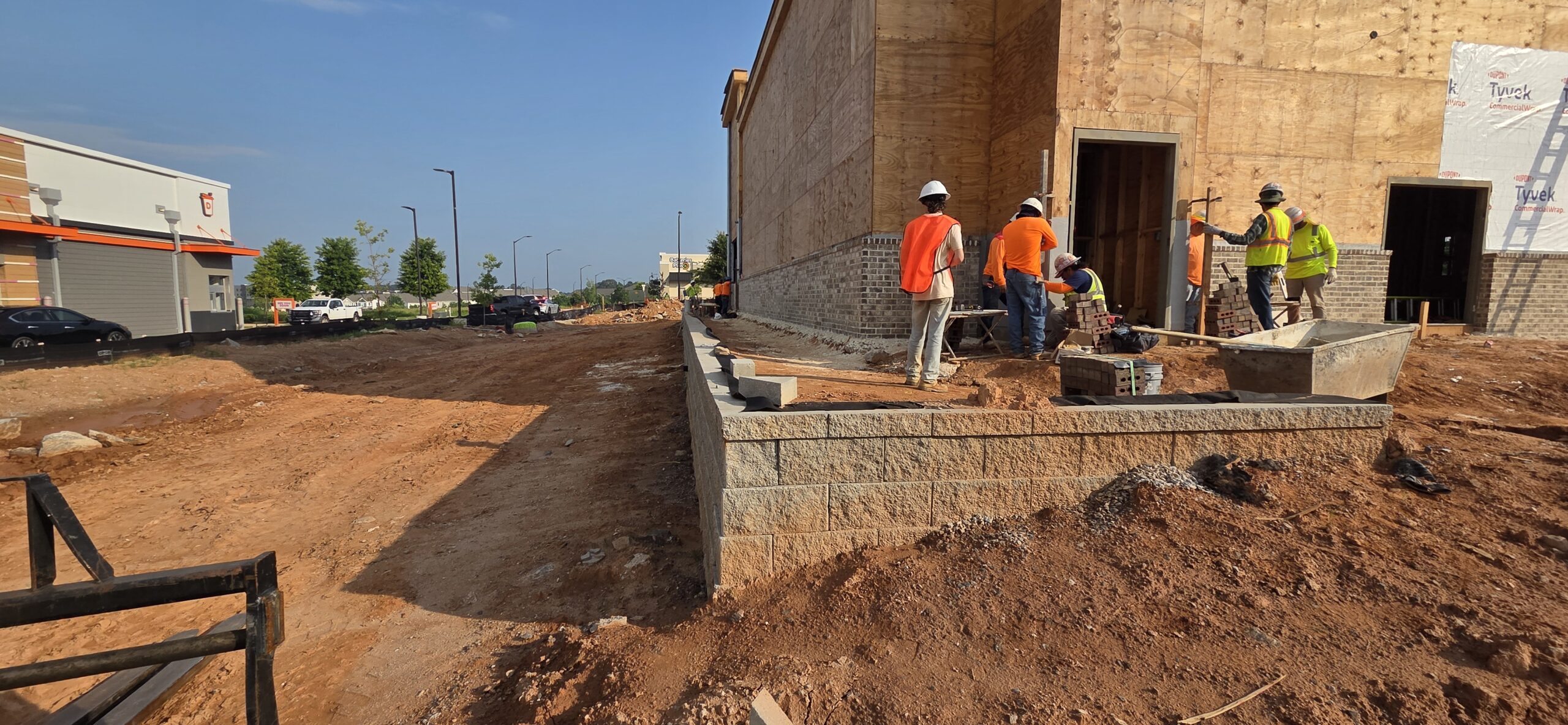 right side of building retaining wall