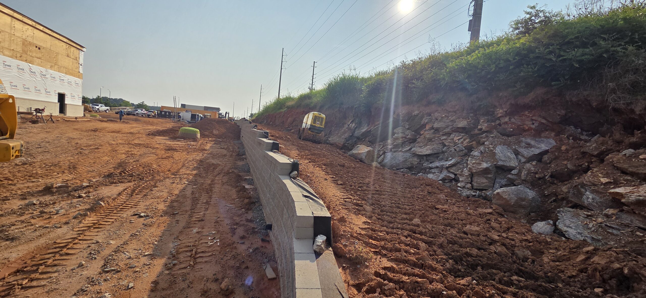 back side of site along main road retaining wall