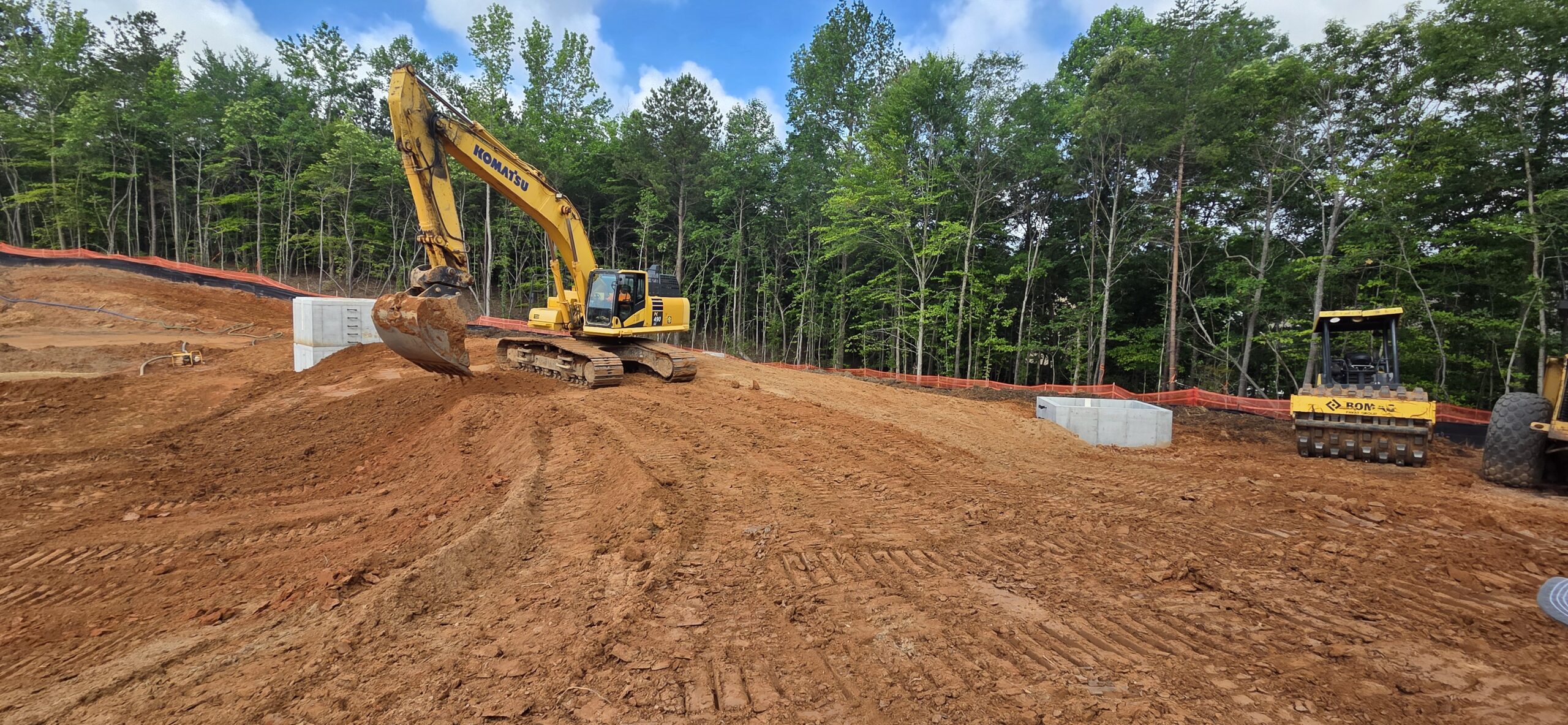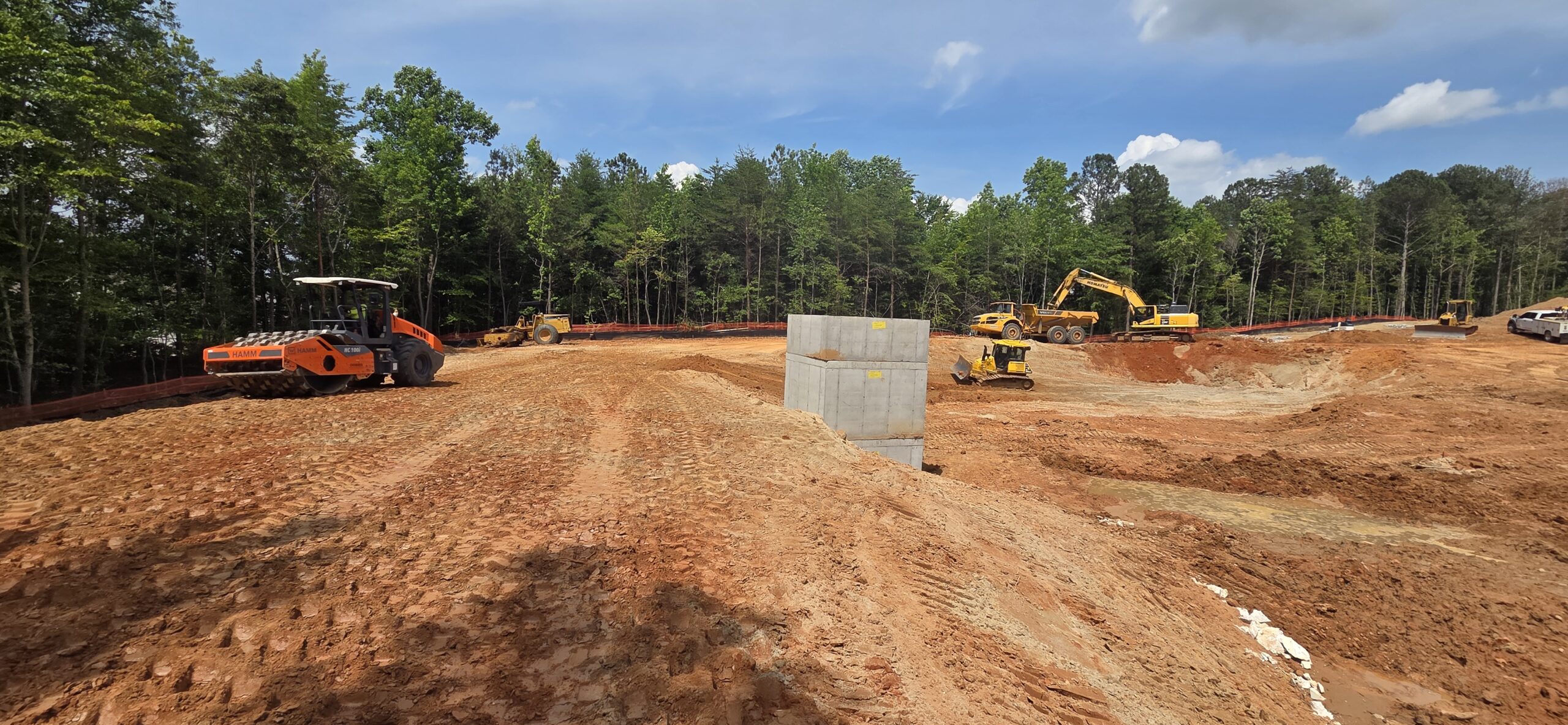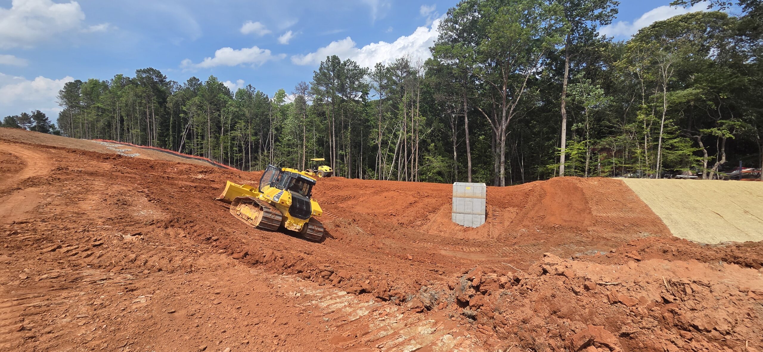 The contractor continued placing fill lifts of approximately 8 to 12 inches in thickness across the dam on pond #1 (front right side of site) and pond #2 (back left side of site). The technician density tested each lift and provided all test results to the contractor. Moisture content on pond #1 began to rise above optimum content range, so the technician recommended to aerate these soils prior to recompaction.