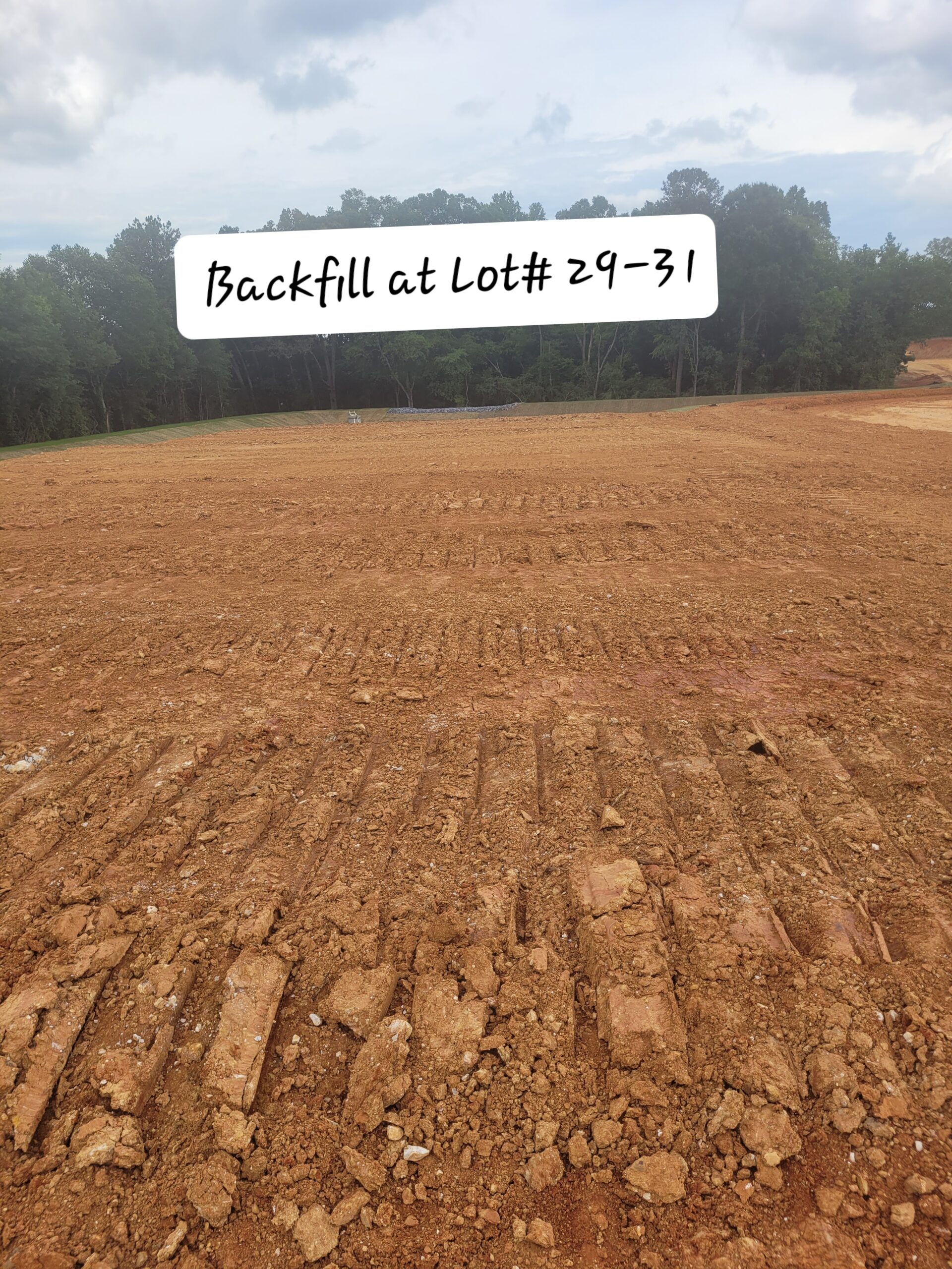 Lots 29–31 were backfilled up to subgrade elevation.