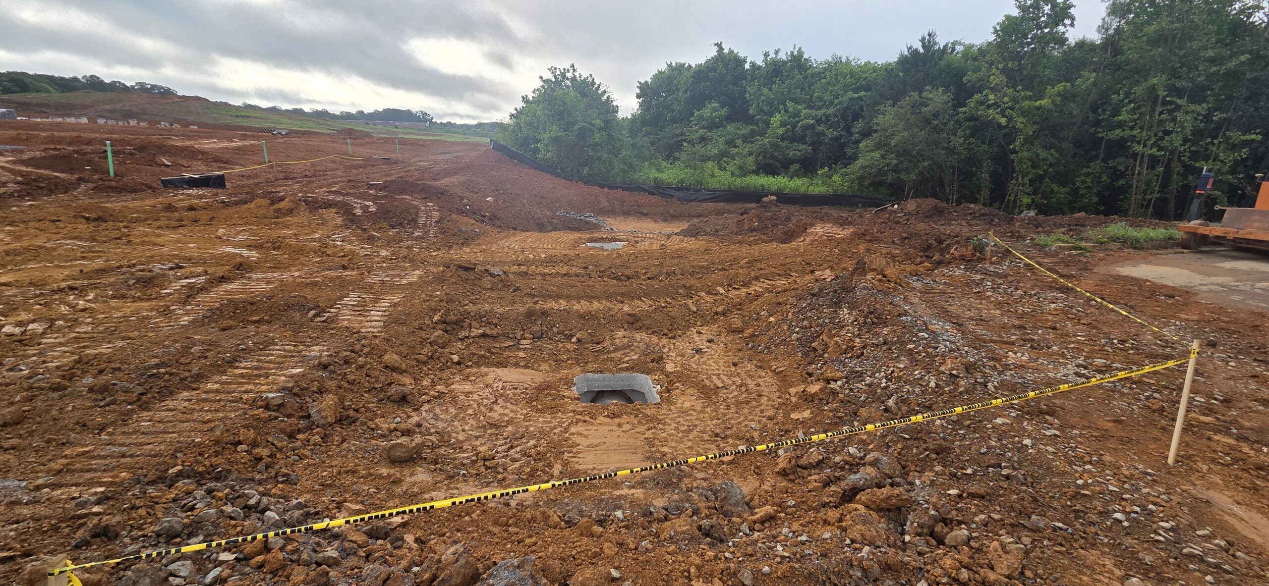 The contractor removed topsoil from Lots #99 – #102 and placed topsoil behind Lots #30 -#39 and directly on Lots #134 – #138 (in green spaces). The contractor excavated approx. 30ft x 30ft x 2ft of topsoil from Lot #99 and approx. 40ft x 40ft x 2ft from Lot #100.