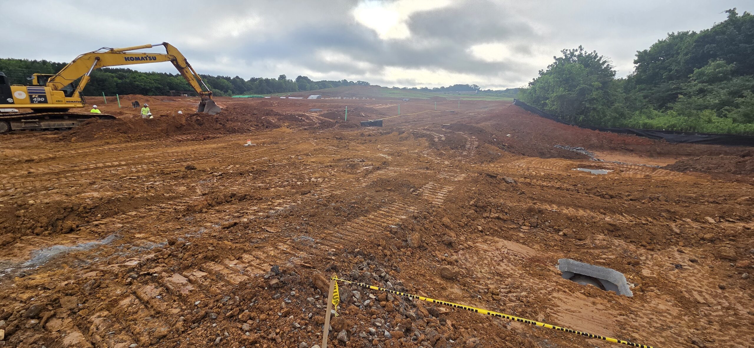 Our representative observed the contractor proof-roll Lots #99 – #102. There were no signs of pumping and/or rutting in these areas. The contractor placed 1 lift, approx. 8 to 12 inches in thickness, across these lots.