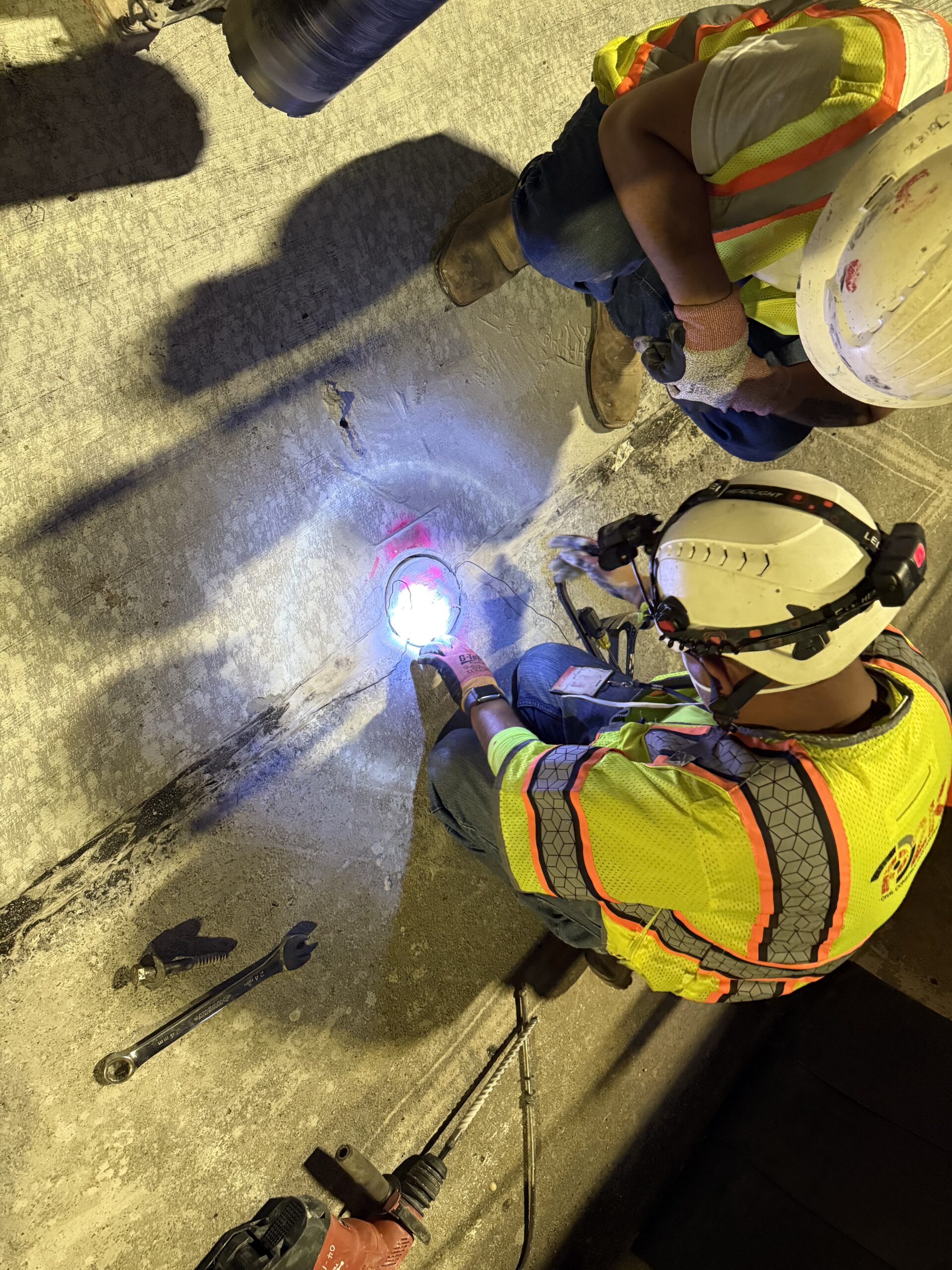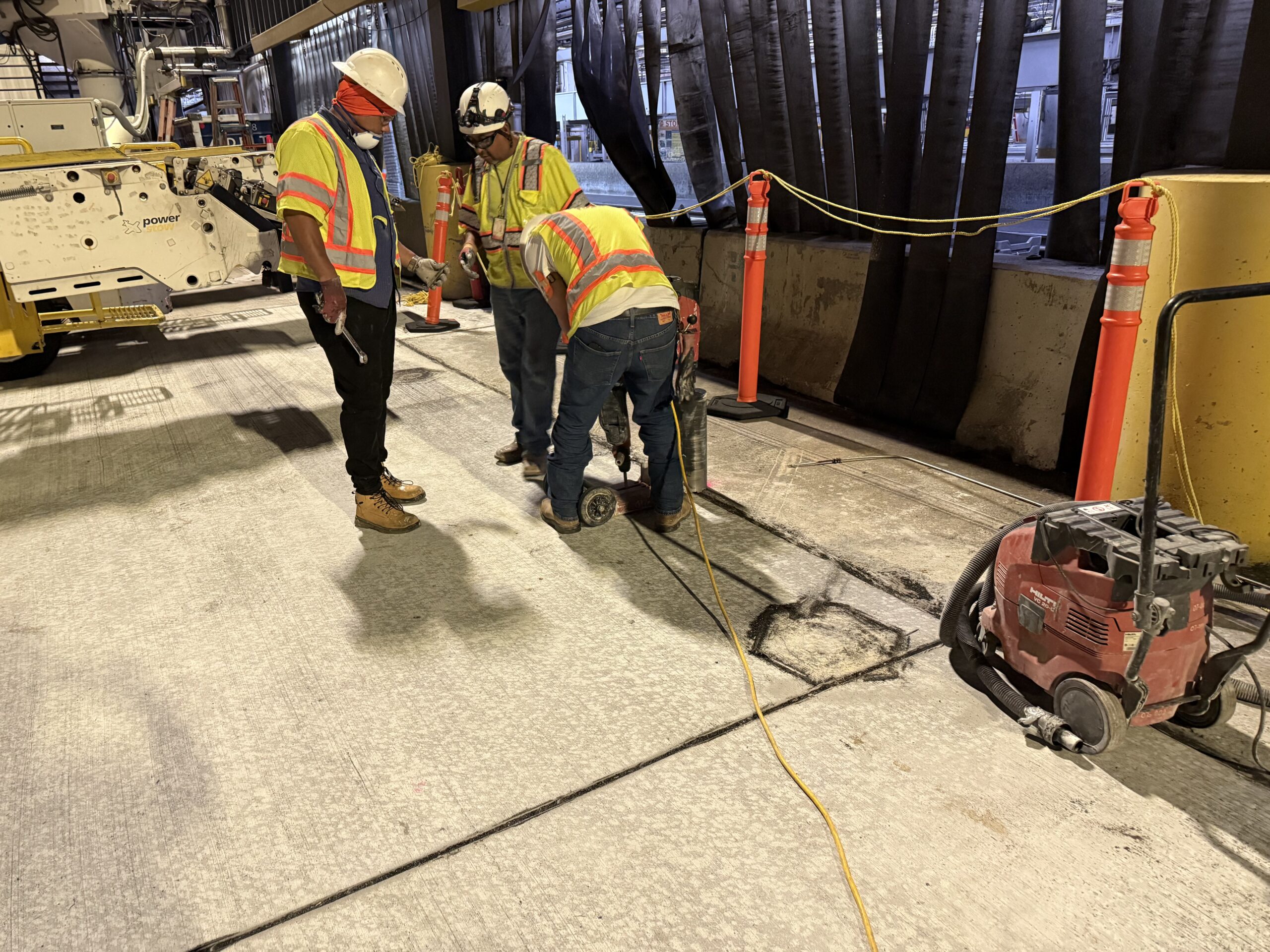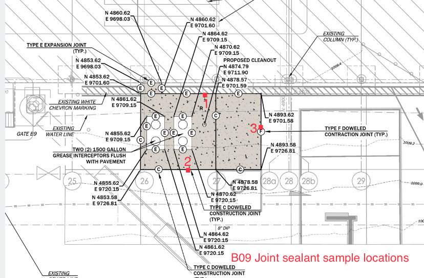 Three (3) seal cores were performed by P2K, with core locations selected and marked by Mr. Miller near Gate B9. The cores were as follows: