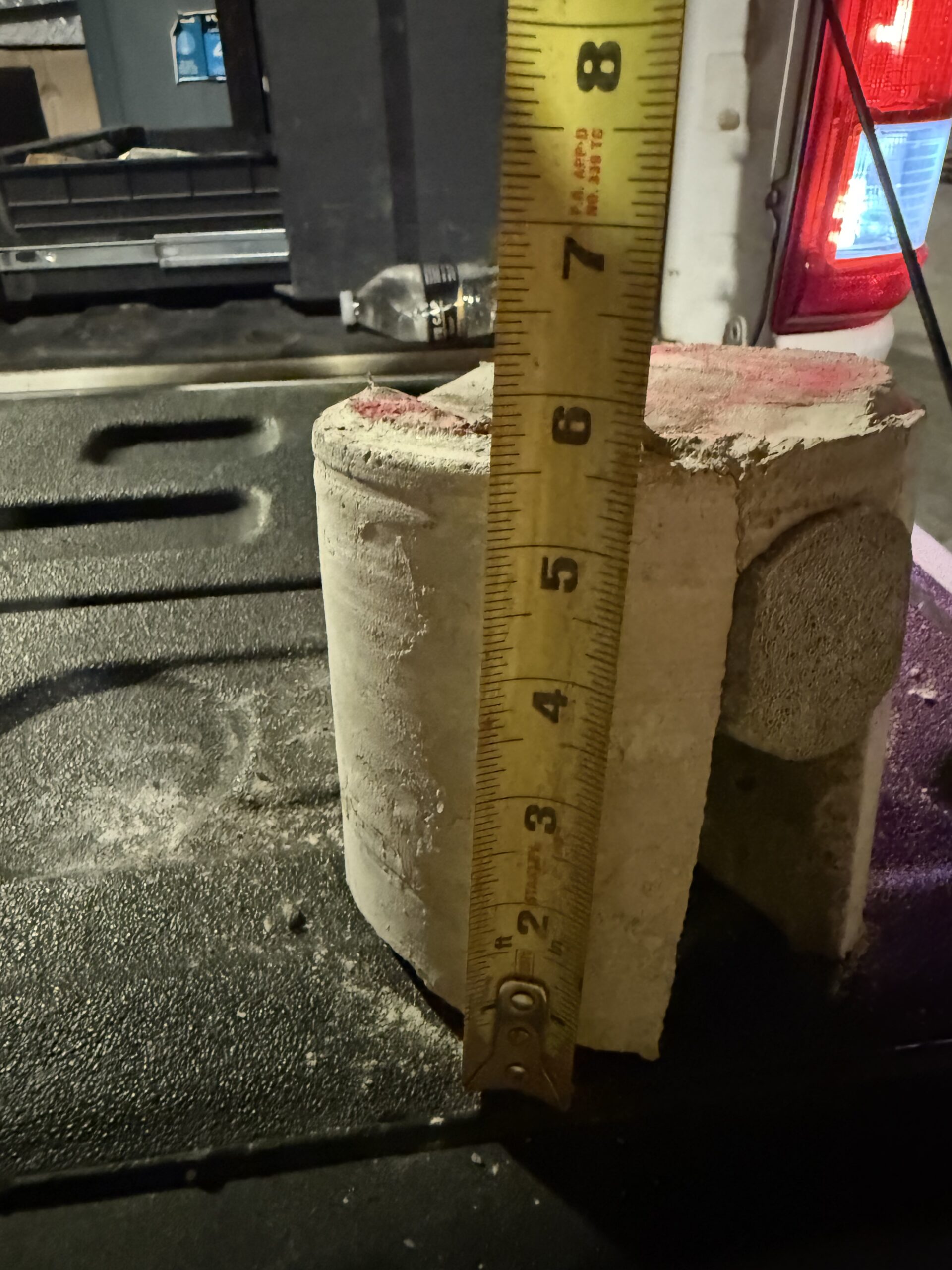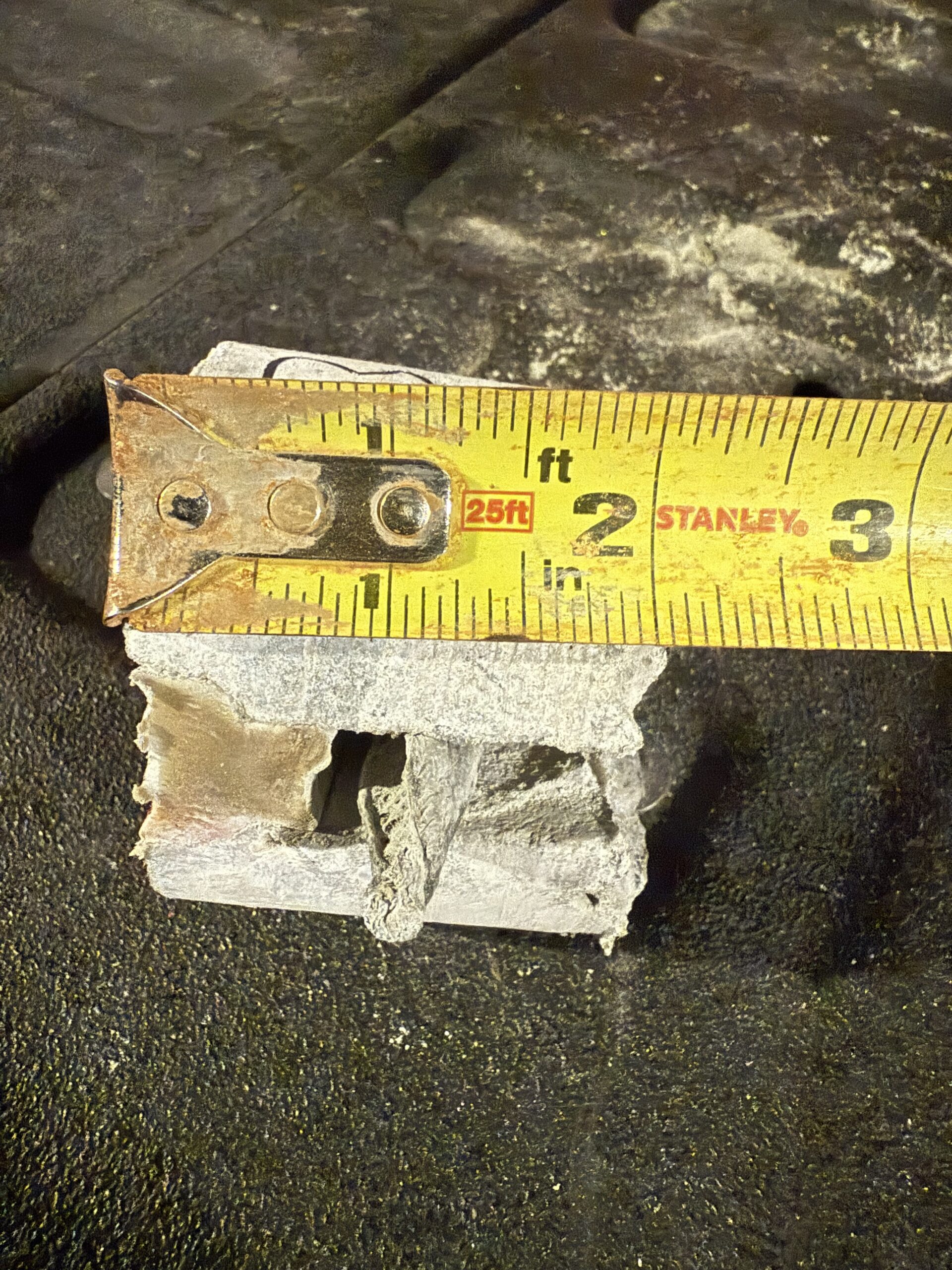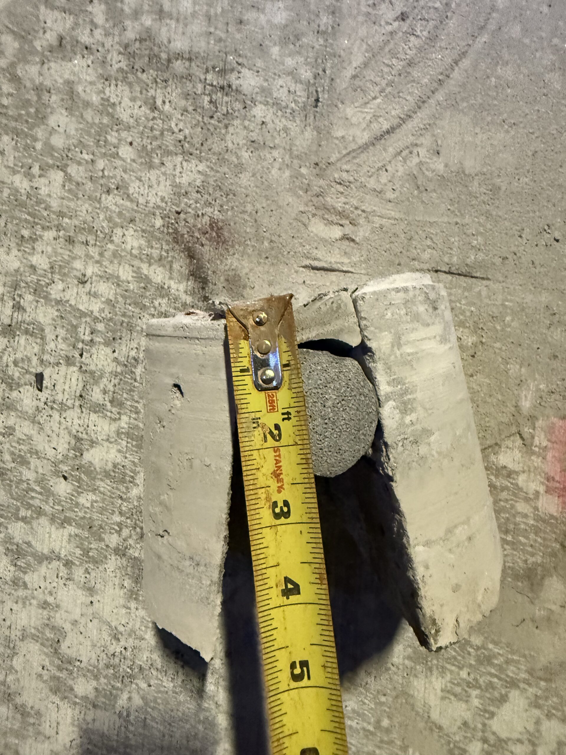 • Core #1: Type E expansion joint, measured at 2 ½ inches in thickness. (See attached photos for reference.)