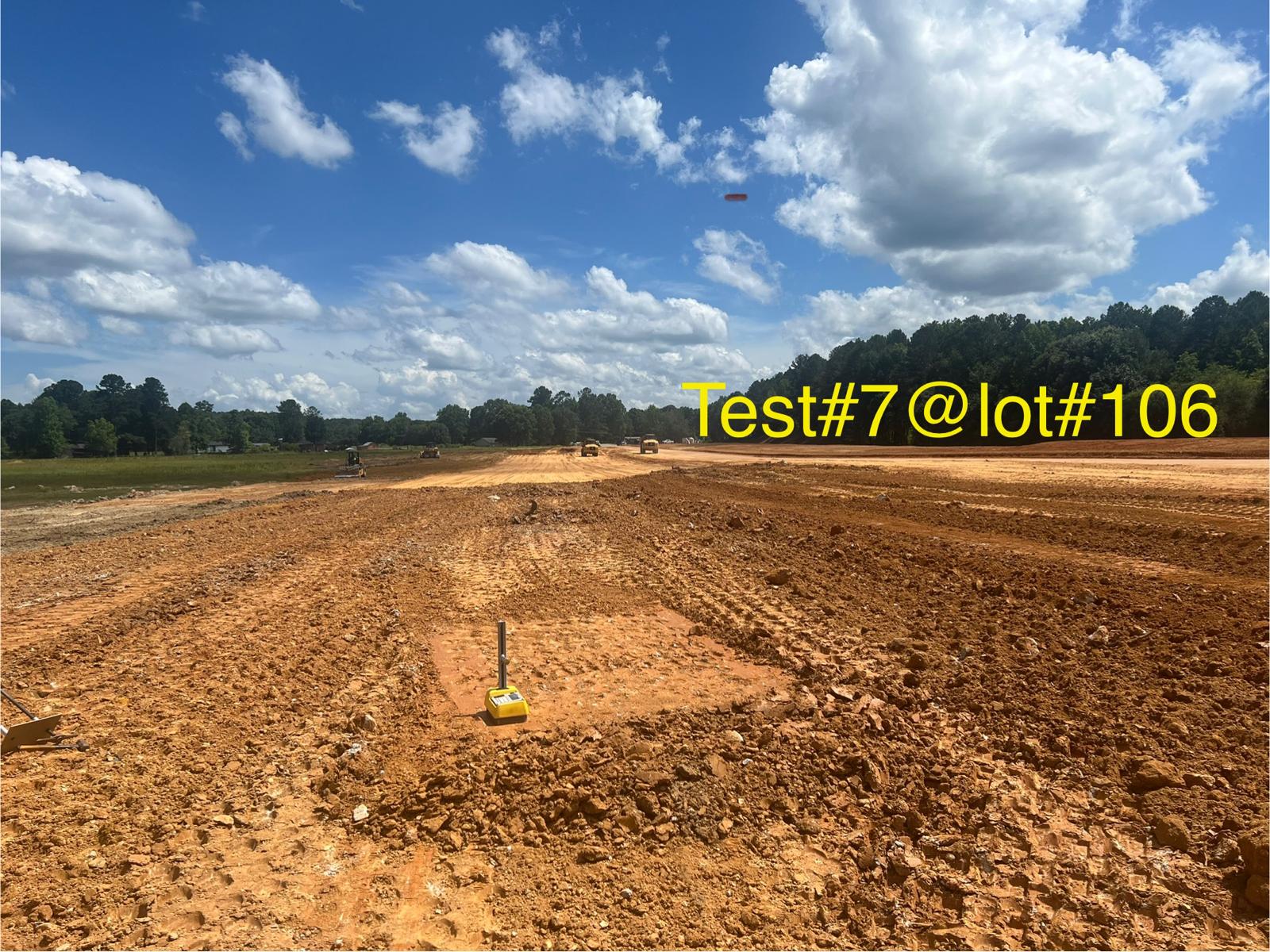 - The placement and compaction of fill soils for road and Lot #87, #88 and Lots #104 to #109, continued this day.