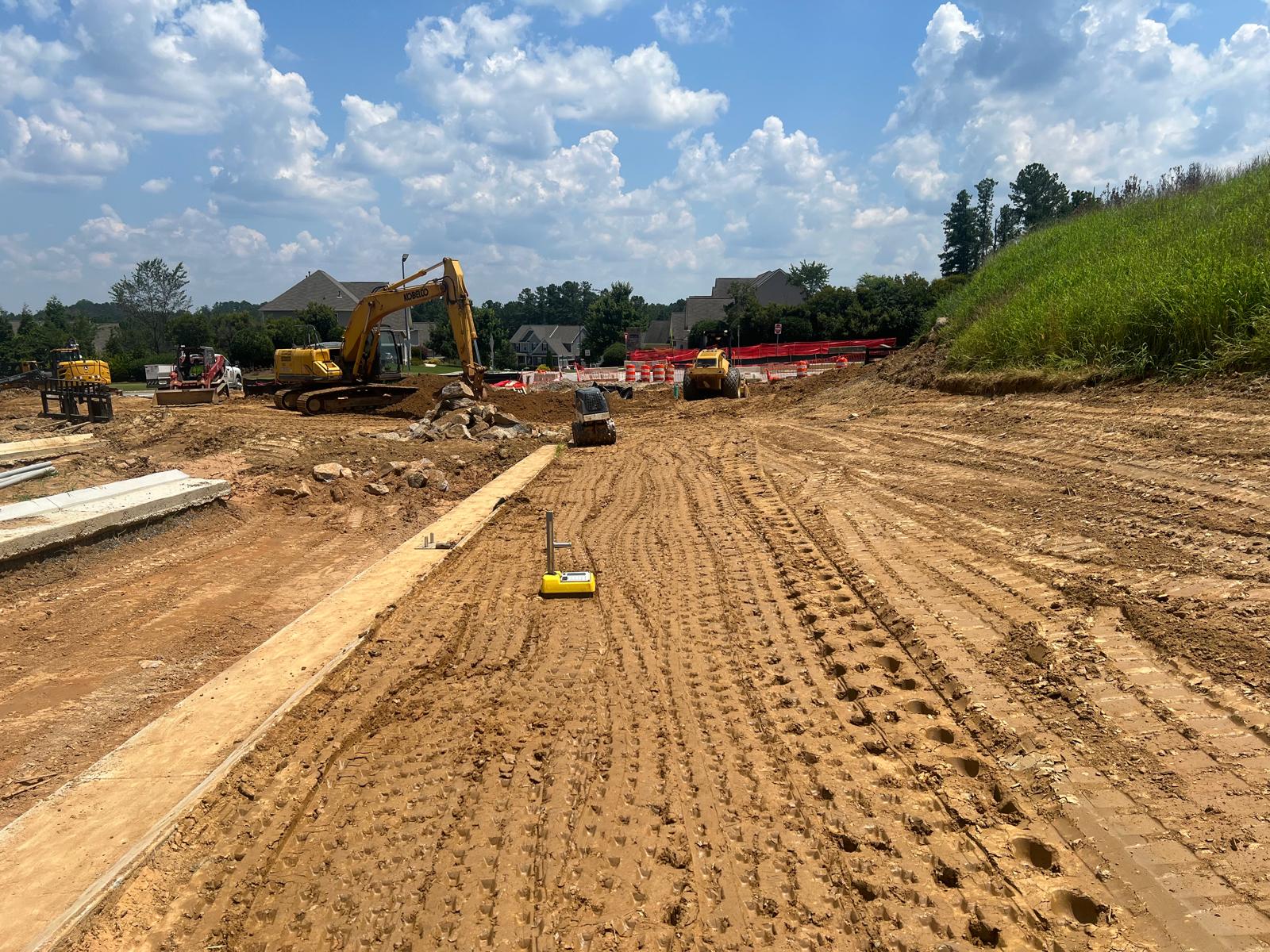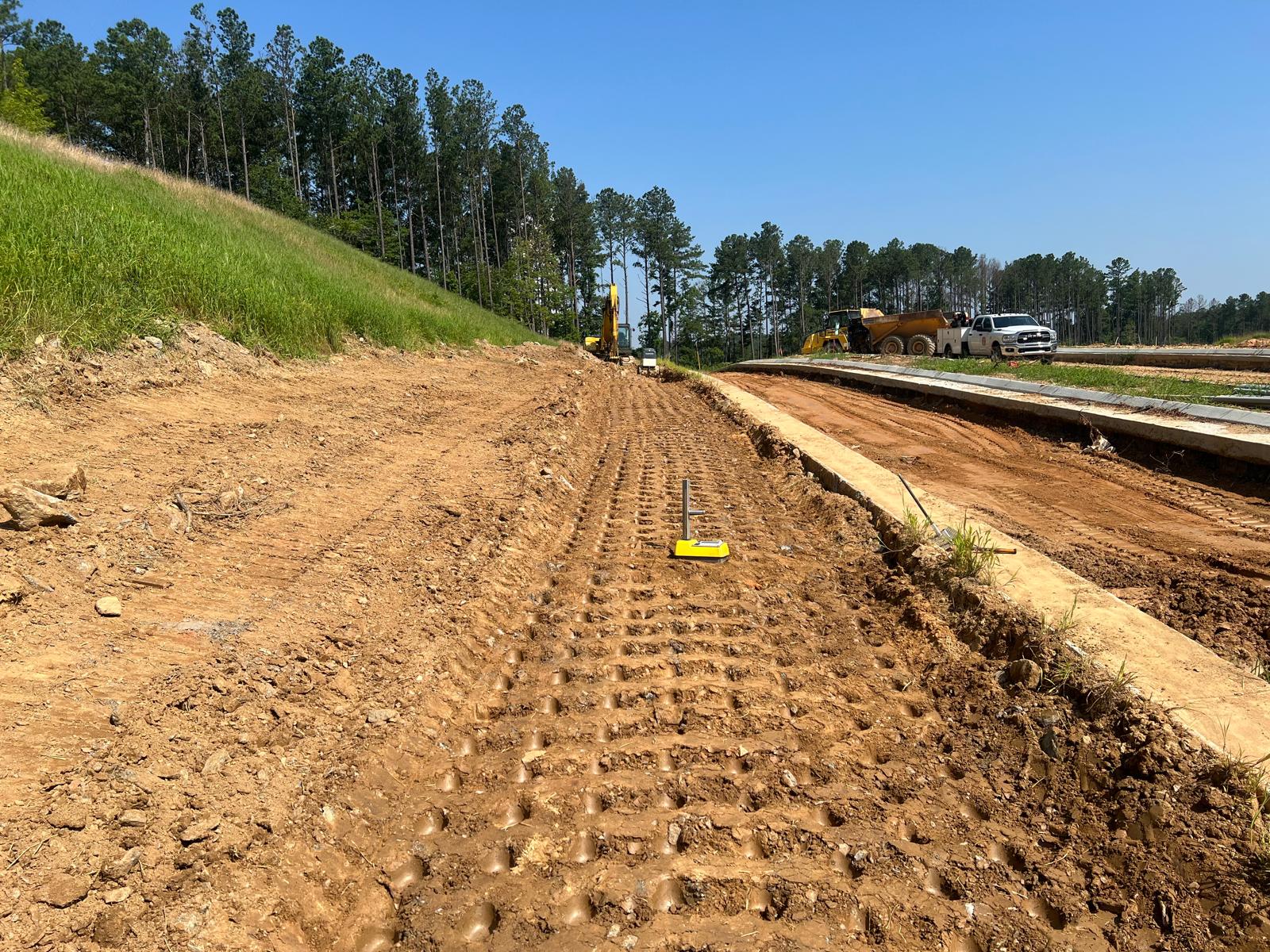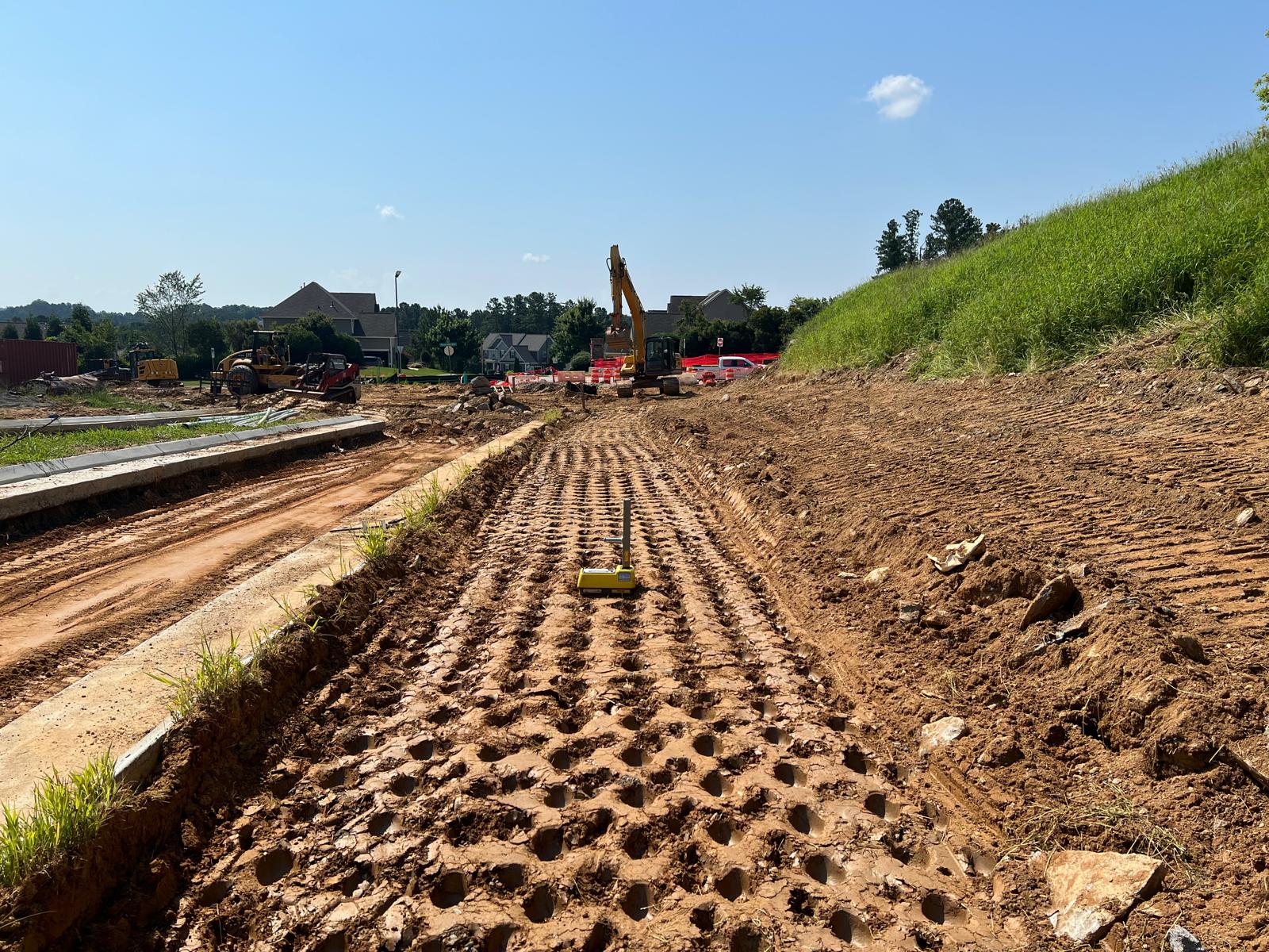 - At the time of arrival, our representative observed that work was in progress with 1-foot lifts being placed and compacted using 12-ton sheep feet and trench compaction equipment. Compaction testing was performed using a Troxler nuclear density gauge of Soil (ASTM D 2937), along with general probing using a 3/8″ diameter probe rod.