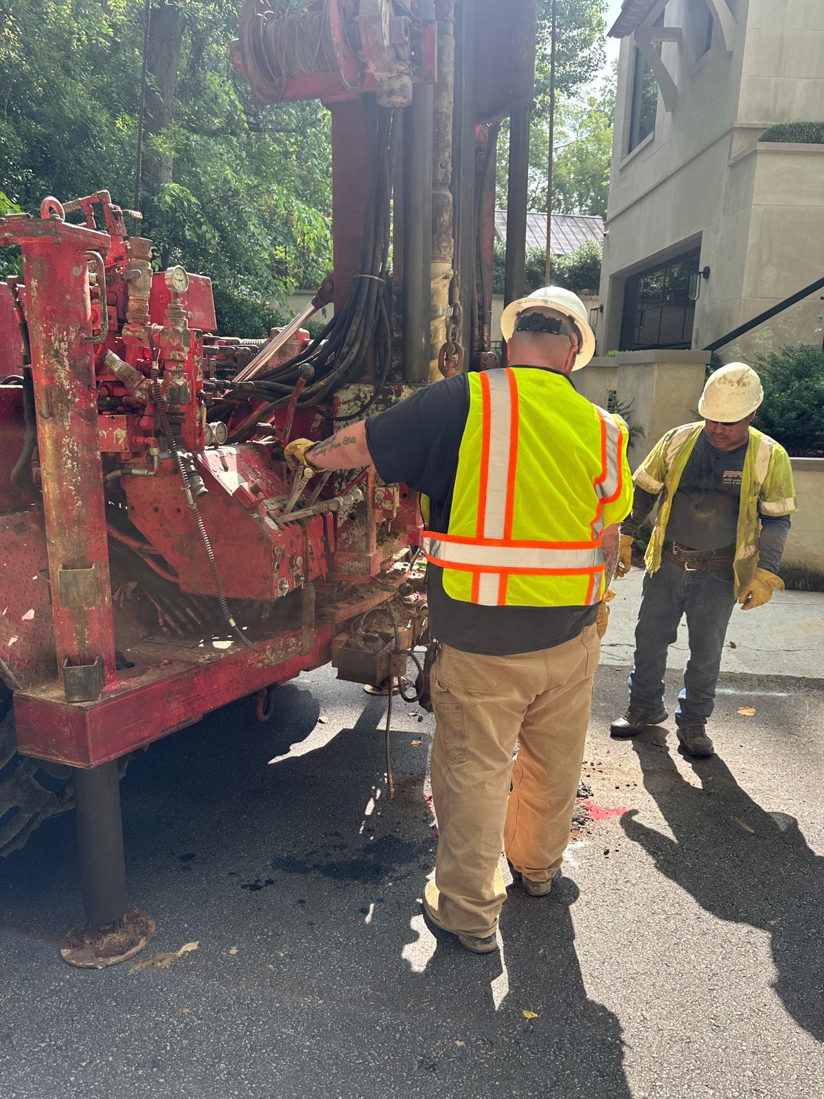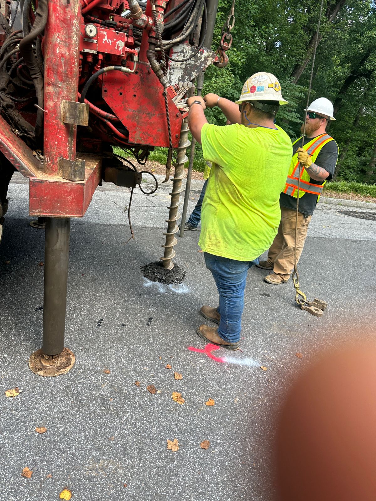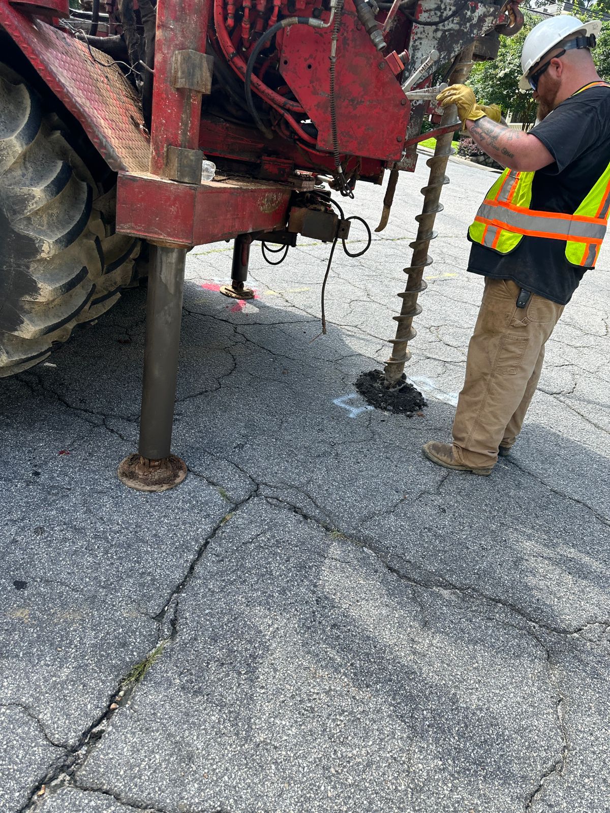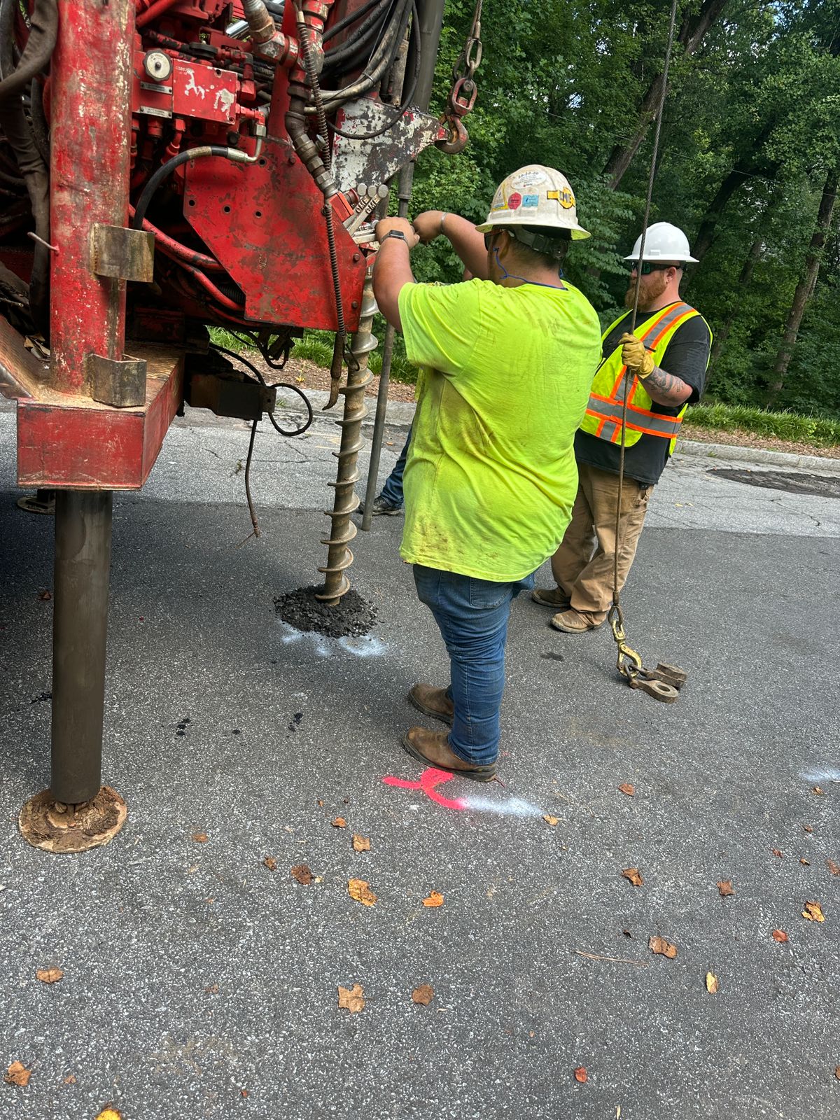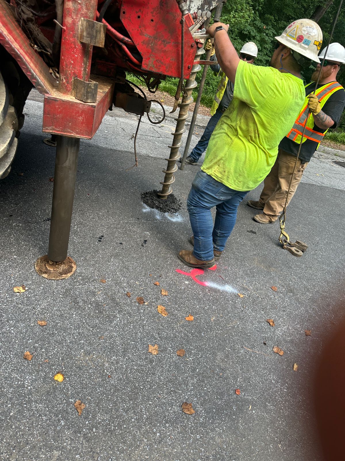 Drilling began at 10:00 AM at boring location 1. The process went smoothly, and the area was properly patched and cleaned after completion. We then moved to boring 2, but drilling was halted at a depth of 6 feet due to encountering rock. We proceeded to boring 3 next, but due to previously unnoticed overhead power lines, we decided to skip it for safety and continue to boring 4.