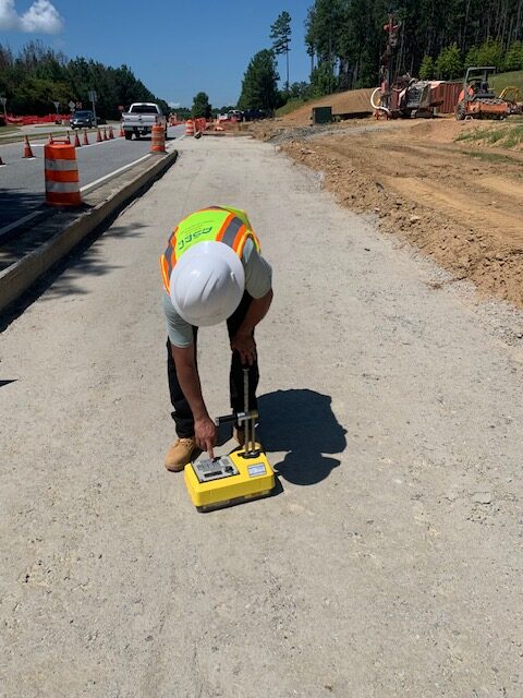 Our ASEC representative was on site as requested to observe the placement of base stone at the east side deceleration lane.  Density tests were performed using a Troxler nuclear gauge model 3430, serial no 38069.  The compaction results were found to be in compliance with site specifications.