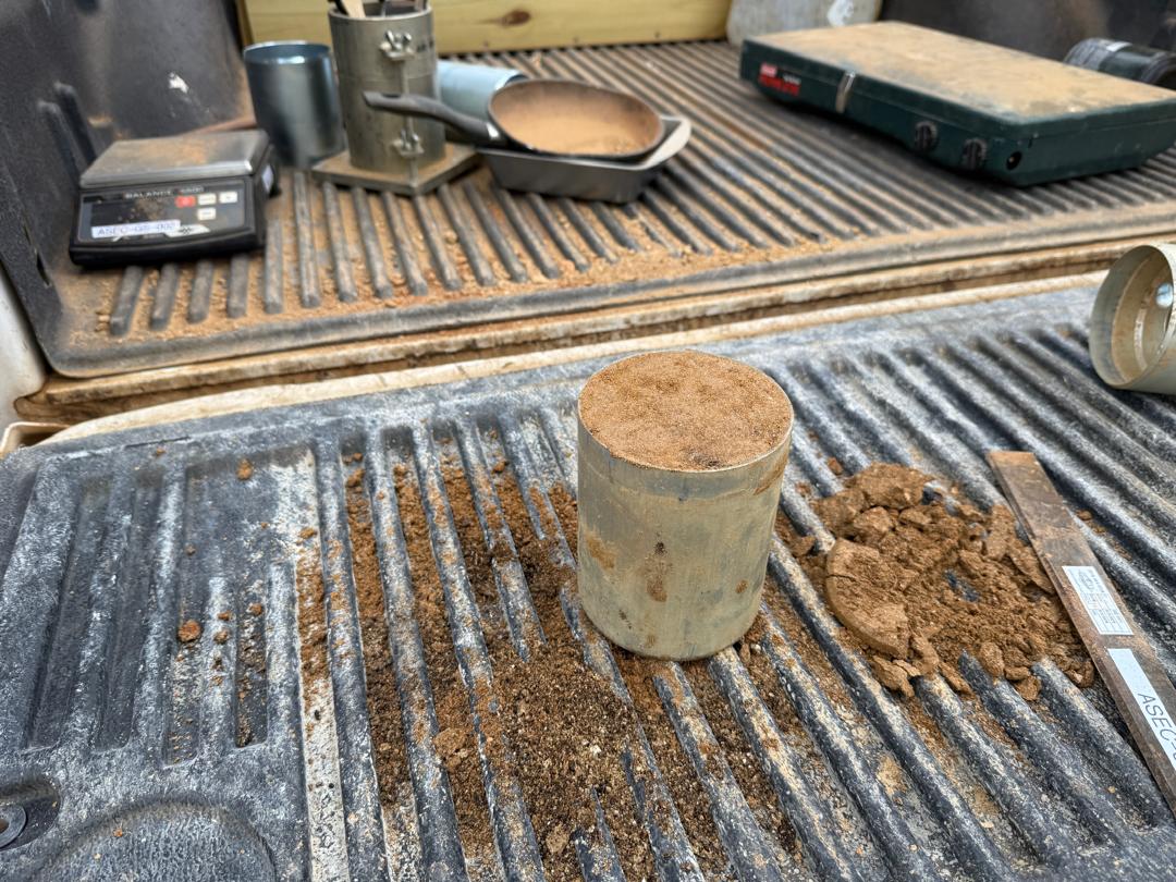 Subsequently, five (5) cylinder-driven field density tests were conducted on a 2-foot embankment lift spanning approximately 1,000 feet in length and 78 feet in width. The tests were performed at the following locations along Road A: