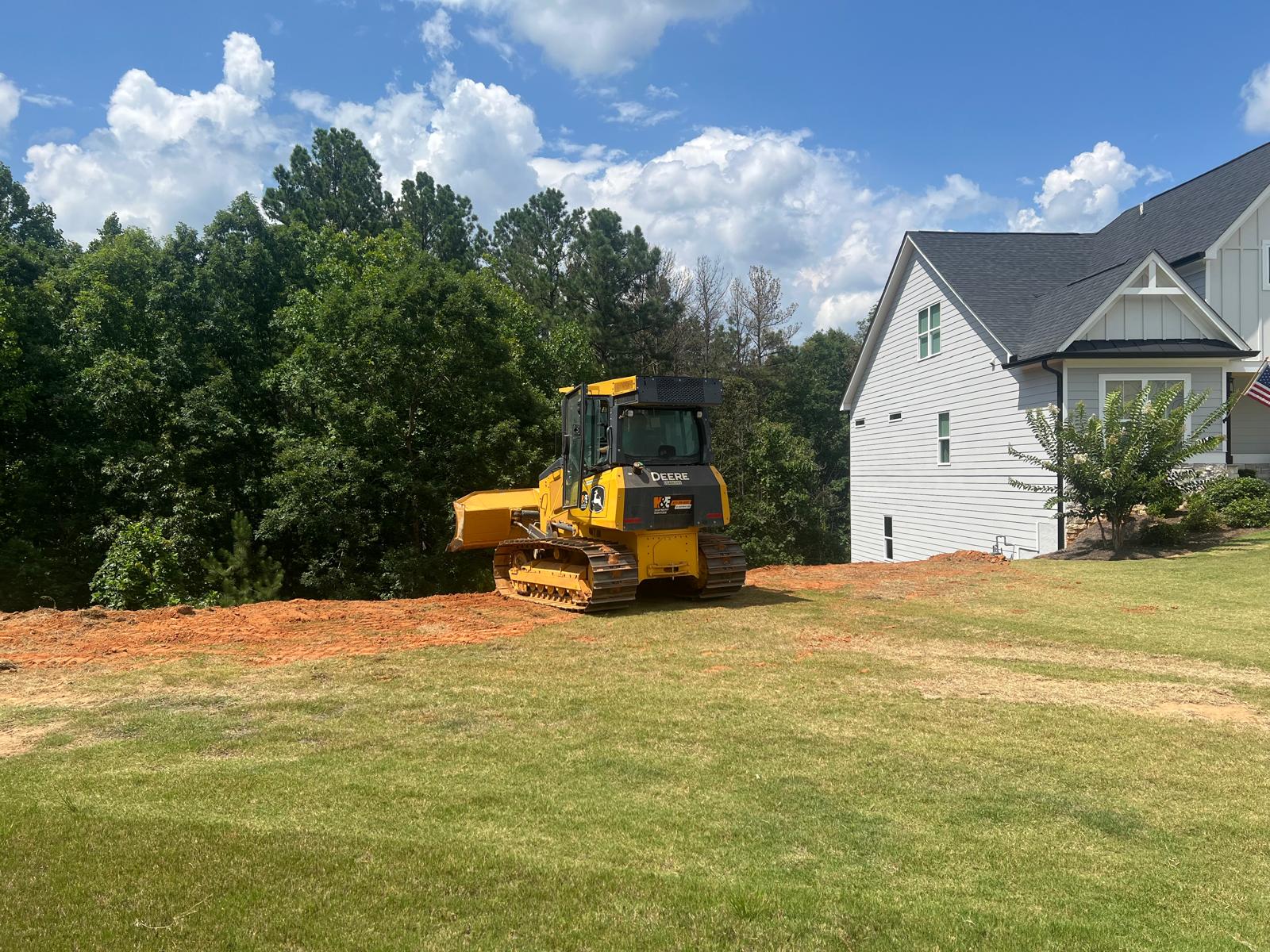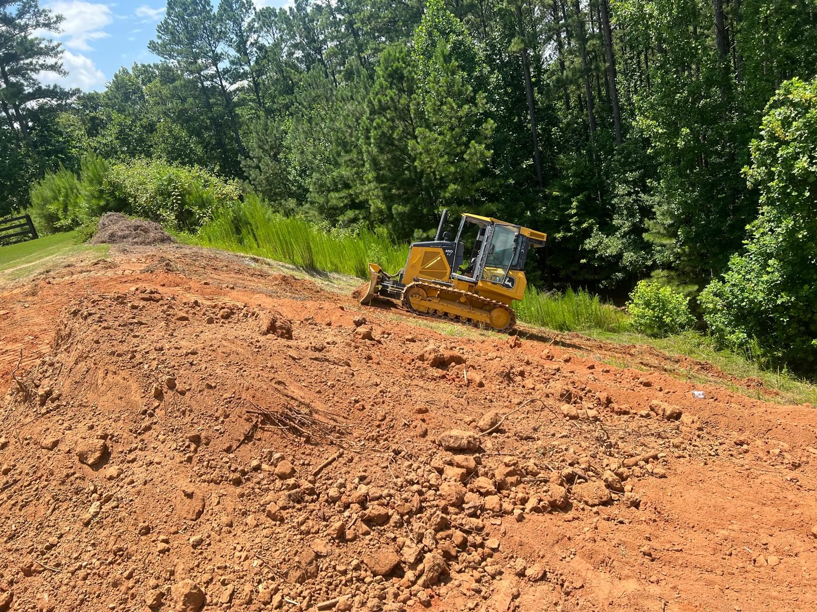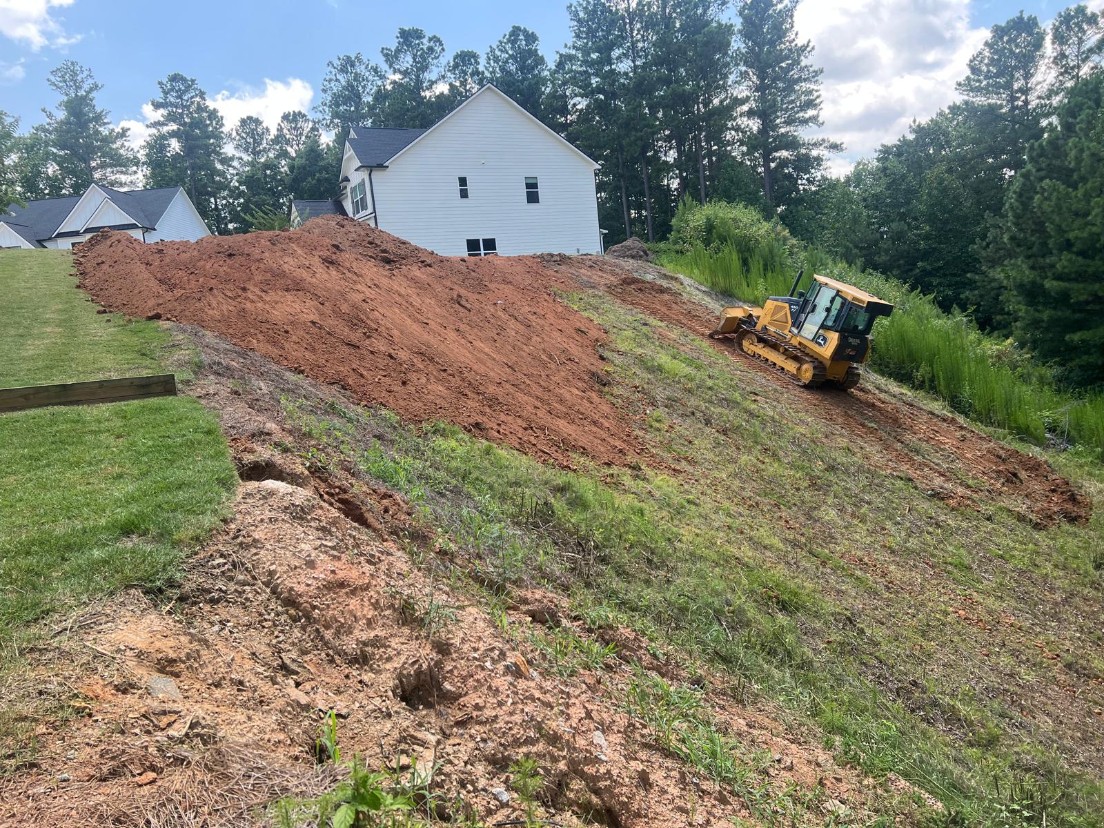 The contractor prepared the slope area located to the east of Lot #92 by removing all grass, organic material, and roots to prepare a stable surface for fill placement. Following this, soils imported from an external source was delivered to the site and spread evenly across the prepared area using a dozer. In addition to the earthwork, the contractor cleaned the space between the water storage manholes using a hose to remove any accumulated debris. As part of the ongoing drainage works, the contractor also brought 8-inch corrugated HDPE “E” pipe to the site, which are intended to be used for tying in with the in the gutter downspouts to the drainage system.