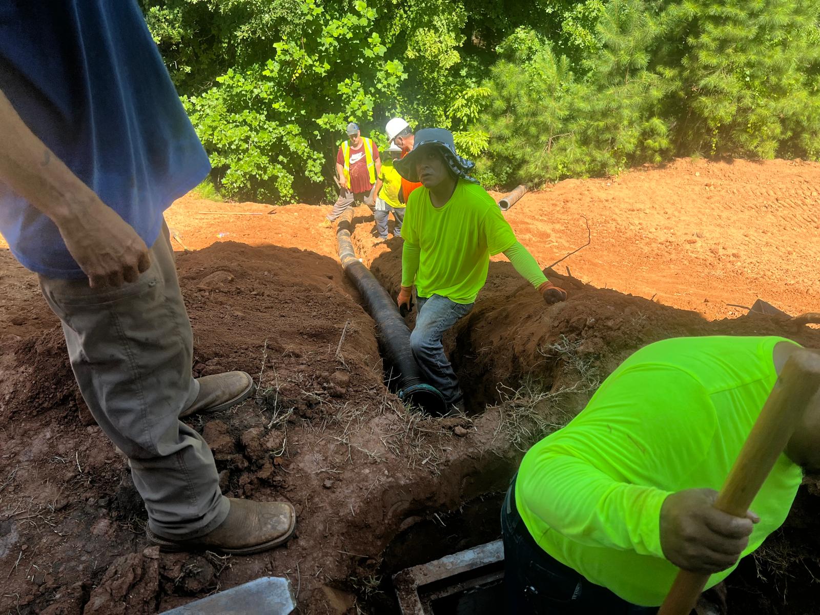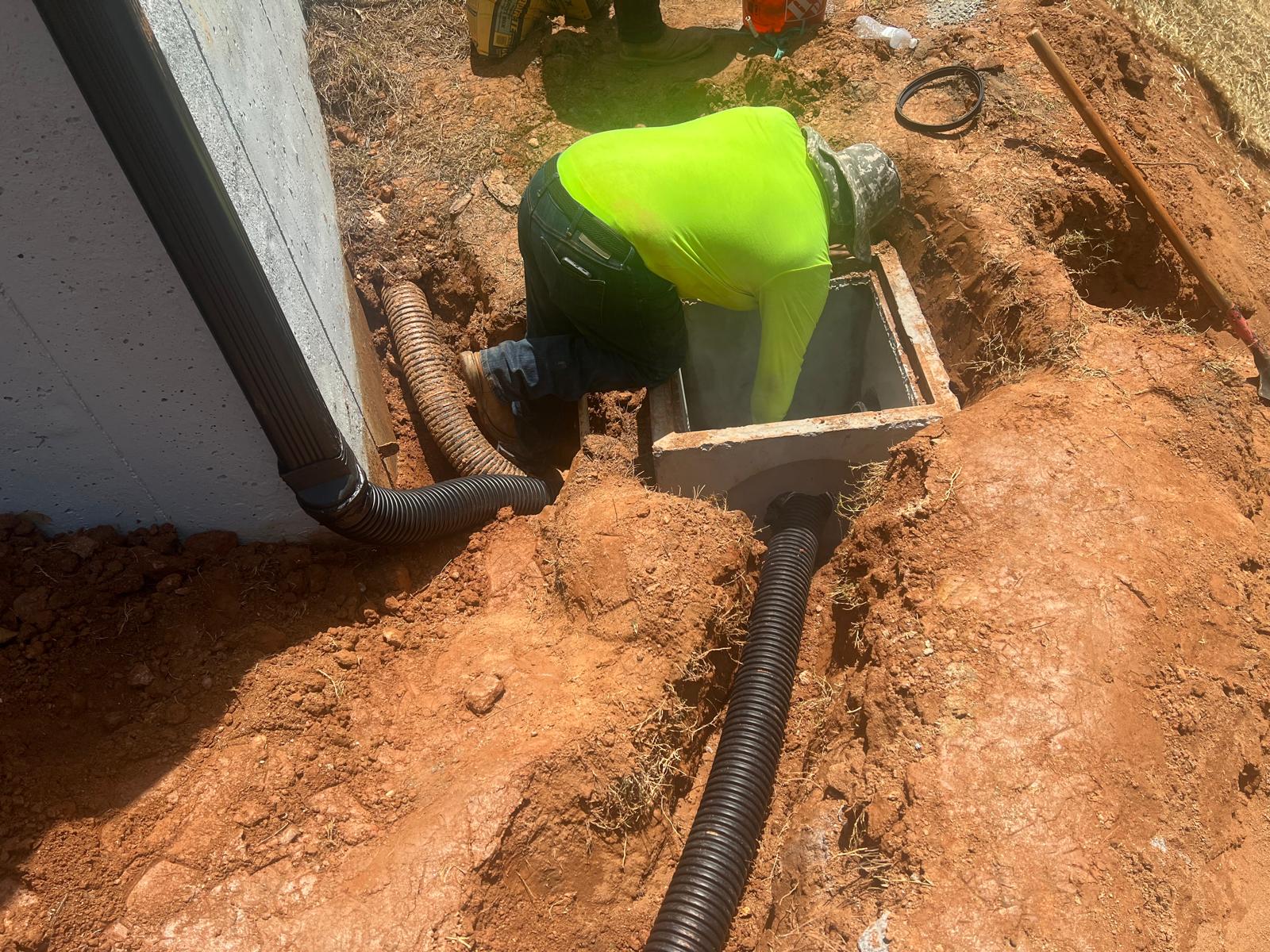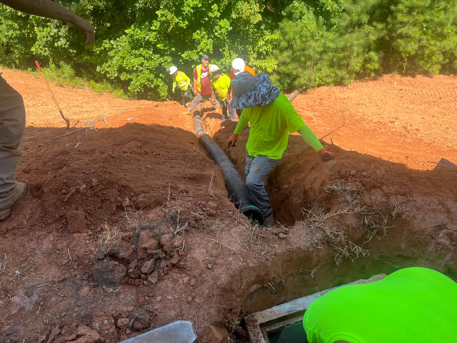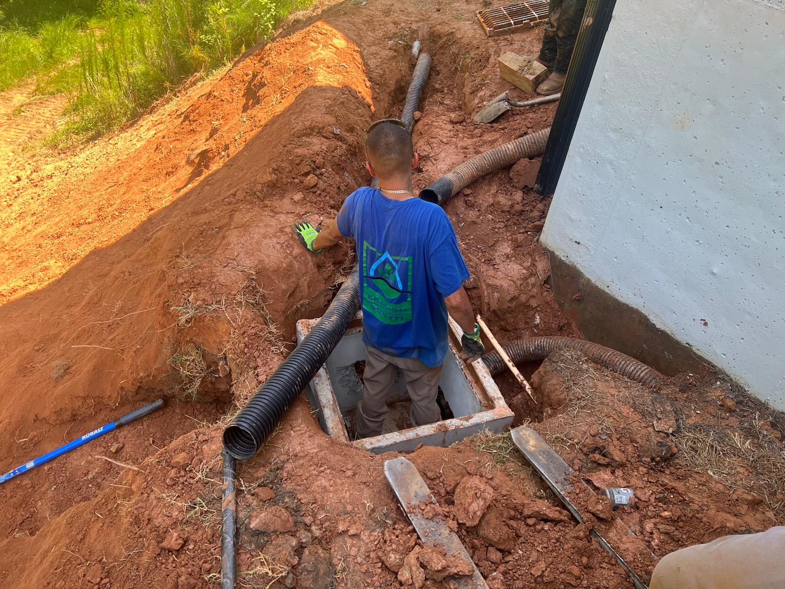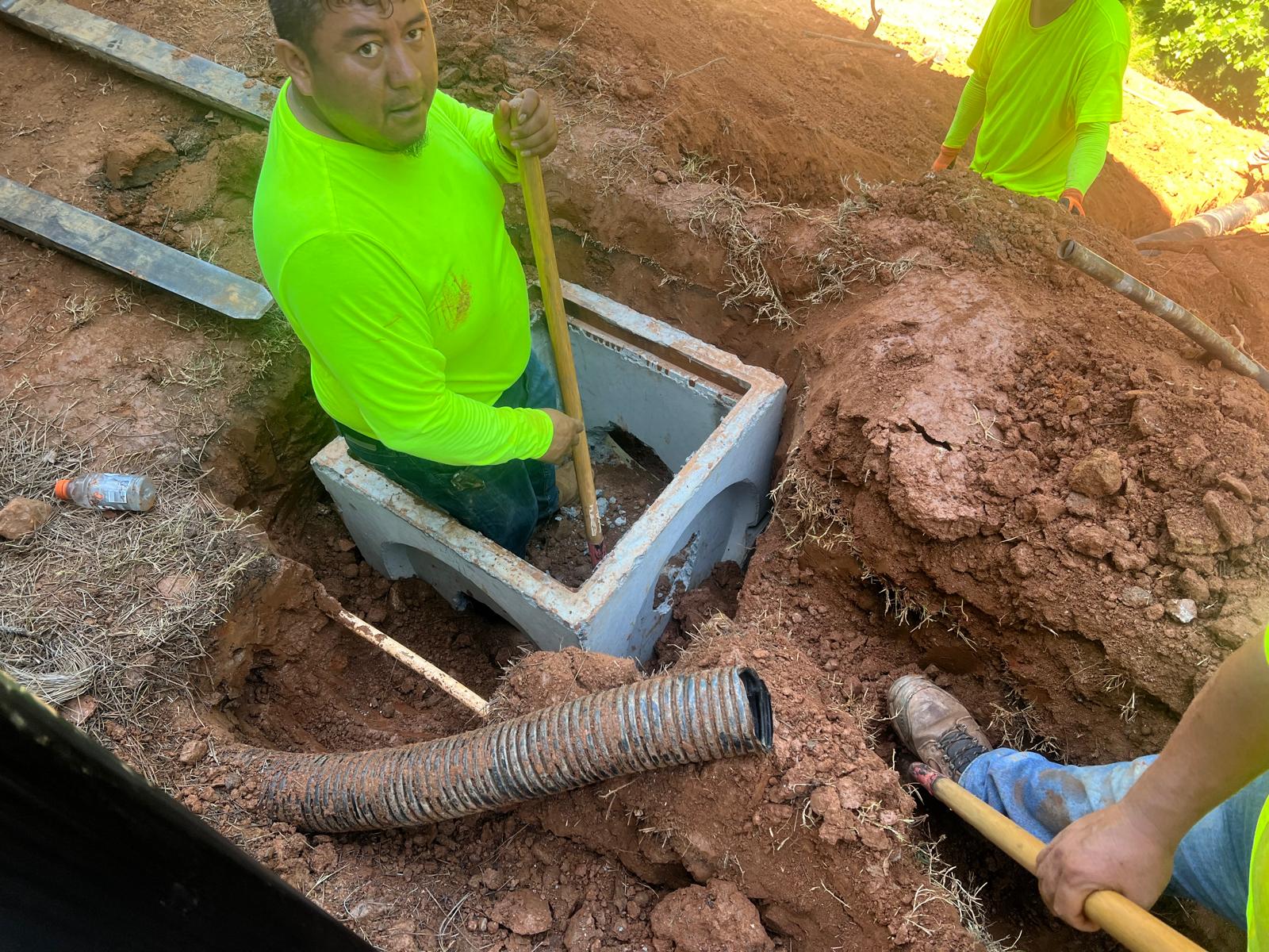 The contractor had prepared the slope area located east of Lot #92. Imported soil was evenly spread across the area and compacted using a dozer. For erosion control and stabilization, pine straw was placed on the slope, and sod along with Bermuda grass was installed around House #92. Additionally, the contractor installed single-sided erosion control matting to further stabilize the area. The originally installed 8-inch pipe and 24-by-24-inch drainage box were removed and relocated to a new position at the request of the owner, who was dissatisfied with their initial placement. The existing Bermuda grass around the house was removed due to its deteriorated condition, and new Bermuda sod is scheduled to be installed the following day. Furthermore, hydroseeding was performed using a mix of lovegrass, clover, and fescue to enhance ground cover and promote long-term stabilization.
