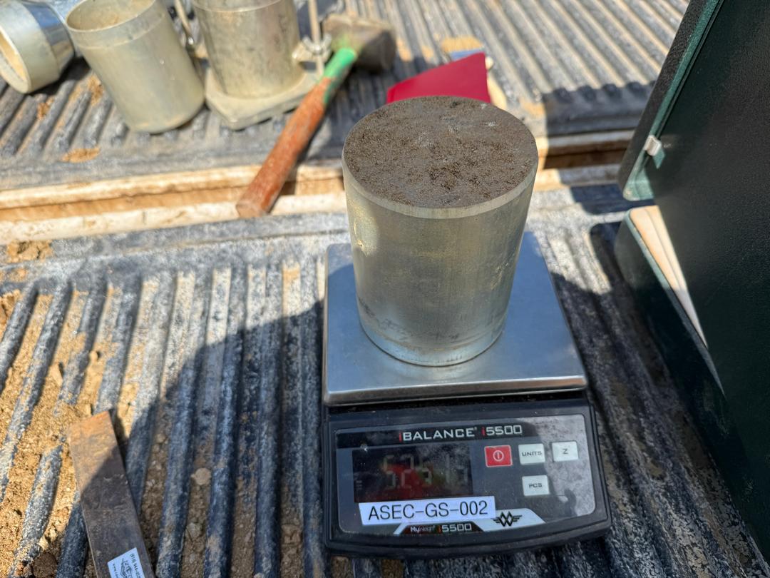 Our ASEC representative continued visual observation of the embankment fill activities at the project site. During the inspection, large boulders were observed within the soil material. The contractor was advised to remove these boulders from the fill area. Additionally, during the probe rod observation, certain soft spots were identified. These areas were re-compacted by the contractor prior to conducting compaction testing.