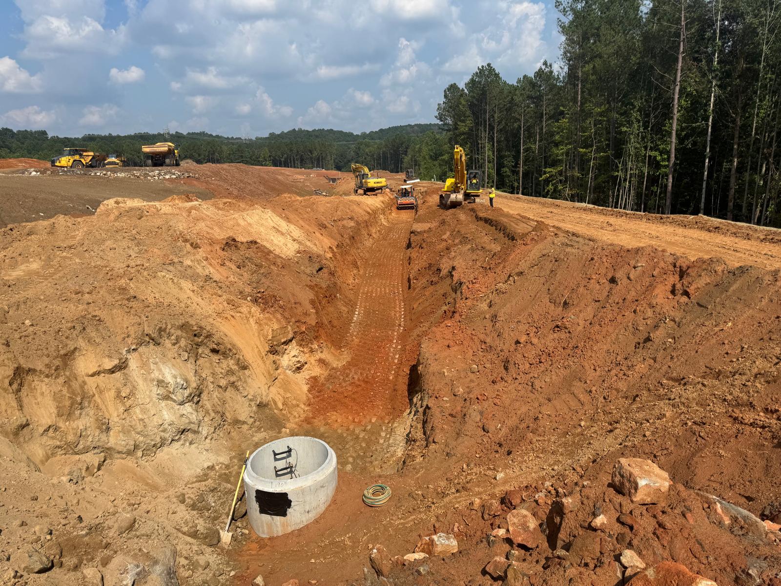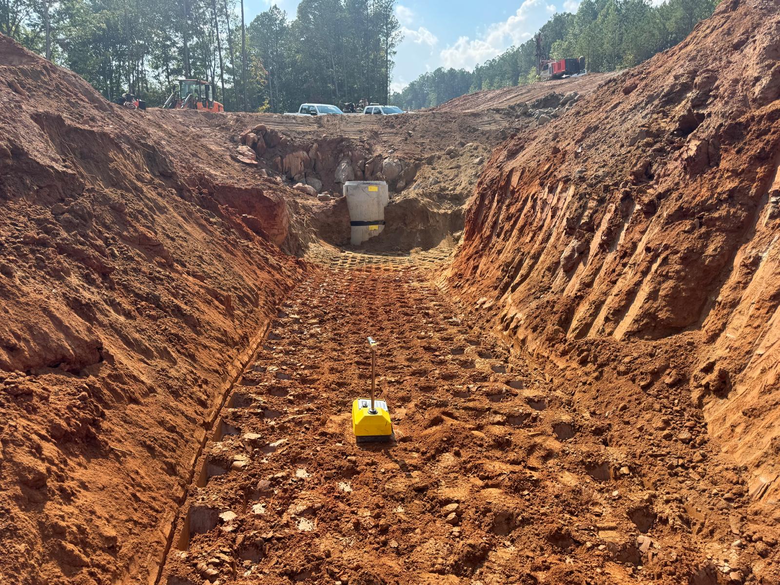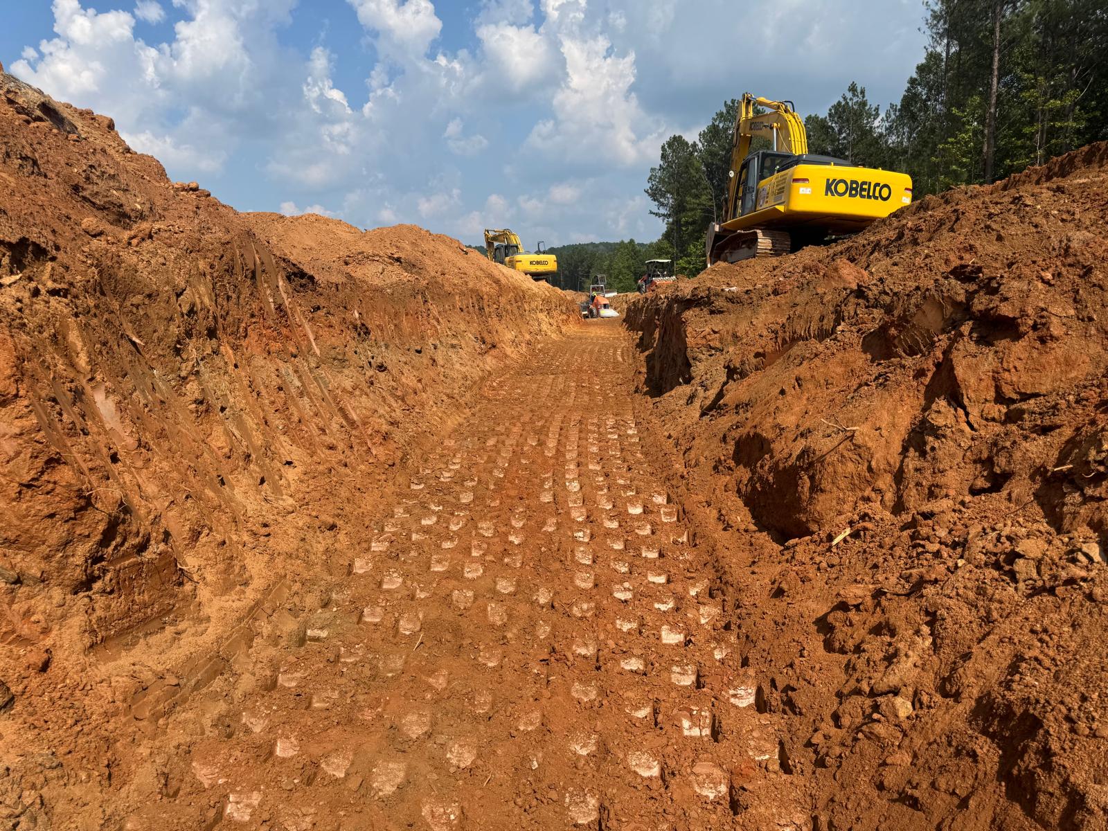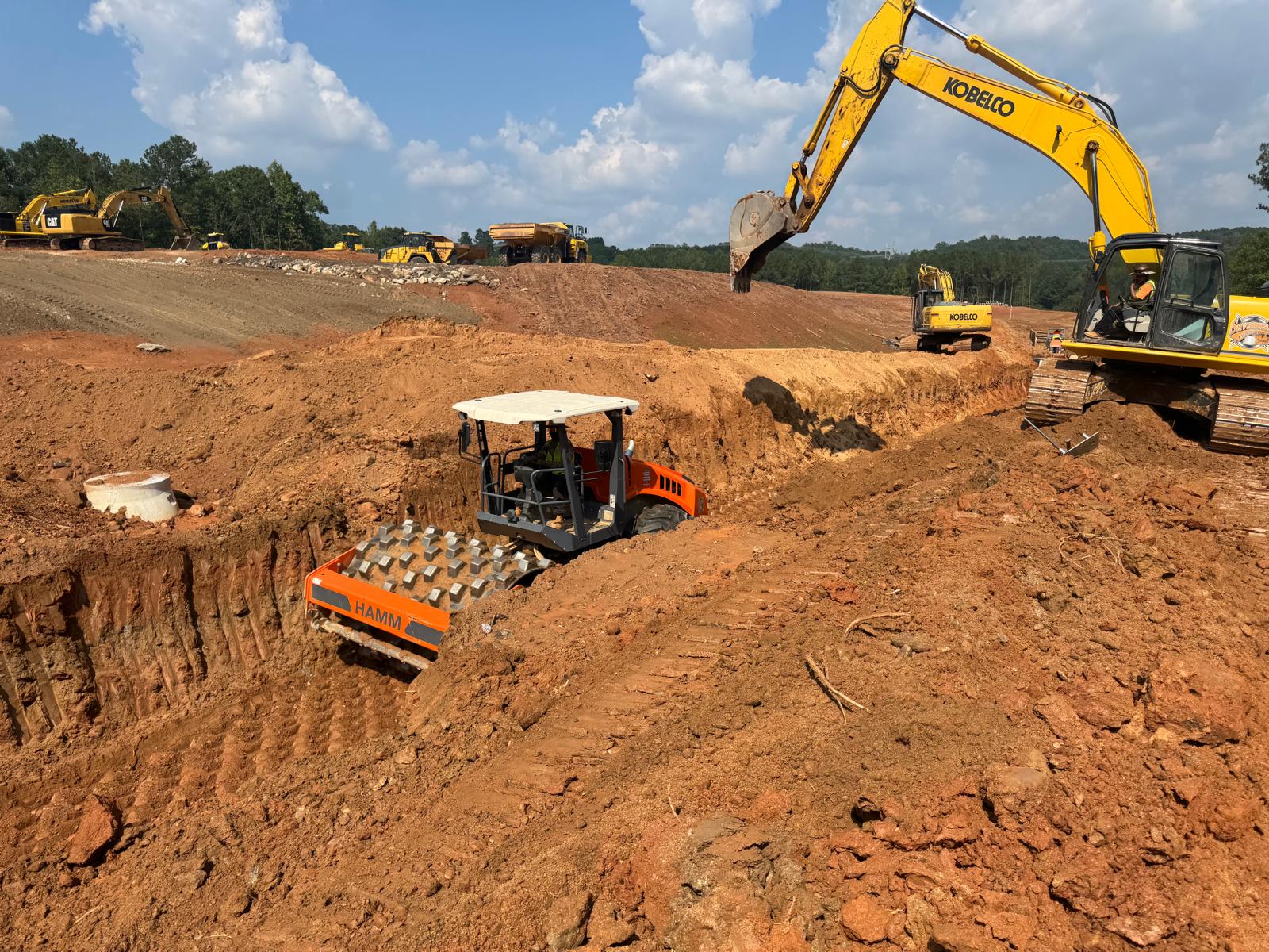 The placement and compaction of fill for the sewer trench between MH9 to MH8 and MH6, continued on this day. Upon arrival, the ASEC representative observed active work in progress, with fill being placed in 1-foot lifts. Compaction was carried out using a sheeps-foot roller (14-ton) along with a trench compactor for the sewer trench. Compaction testing was performed using a Troxler nuclear density gauge, supplemented by general probing with a 3/8″ diameter probe rod. The density test results indicated that most of the compacted materials met the project requirement of achieving at least 95% of the maximum dry density, in accordance with ASTM D698 (Standard Proctor).