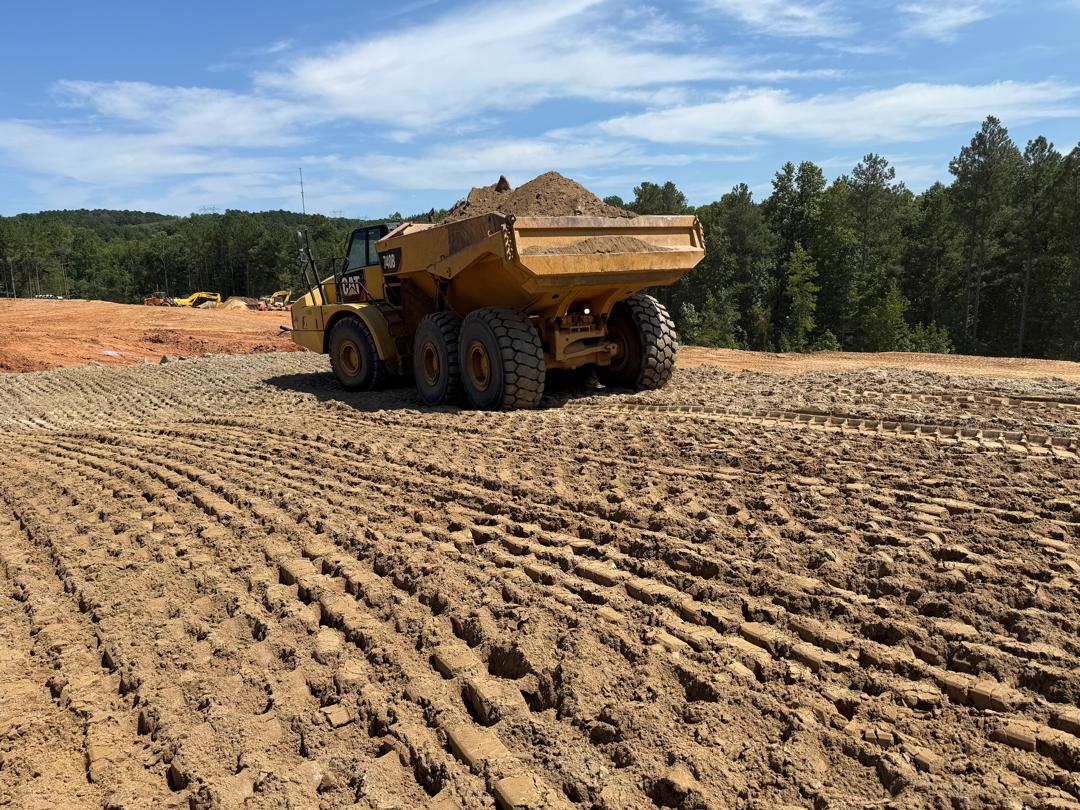 The embankment work was in progress in Lots #7, 8, 9, 10, and 11. Approximately 2 ft of rock-and-dirt fill was placed in the lots. All procedures related to material placement was observed. Larger rocks (greater than 12 inches) were instructed to be broken into smaller pieces before placement. The material was compacted using the 815K roller, after which a proof-roll was performed with a loaded truck available on site. No significant movement or instability of the embankment was observed. The approximate depths after this layer were recorded as follows: Lot #7 – 6 ft, Lot #8 – 10 ft, Lot #9 – 10 ft, Lot #10 – 8.5 ft, and Lot #11 – 7 ft. Following this, a new layer was started by the contractor. It was recommended not to use rocks larger than 4 inches in Lot #7 (6 ft to the final layer).