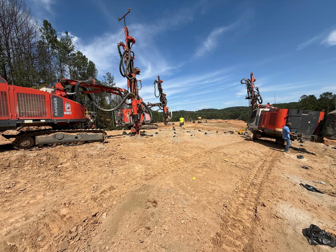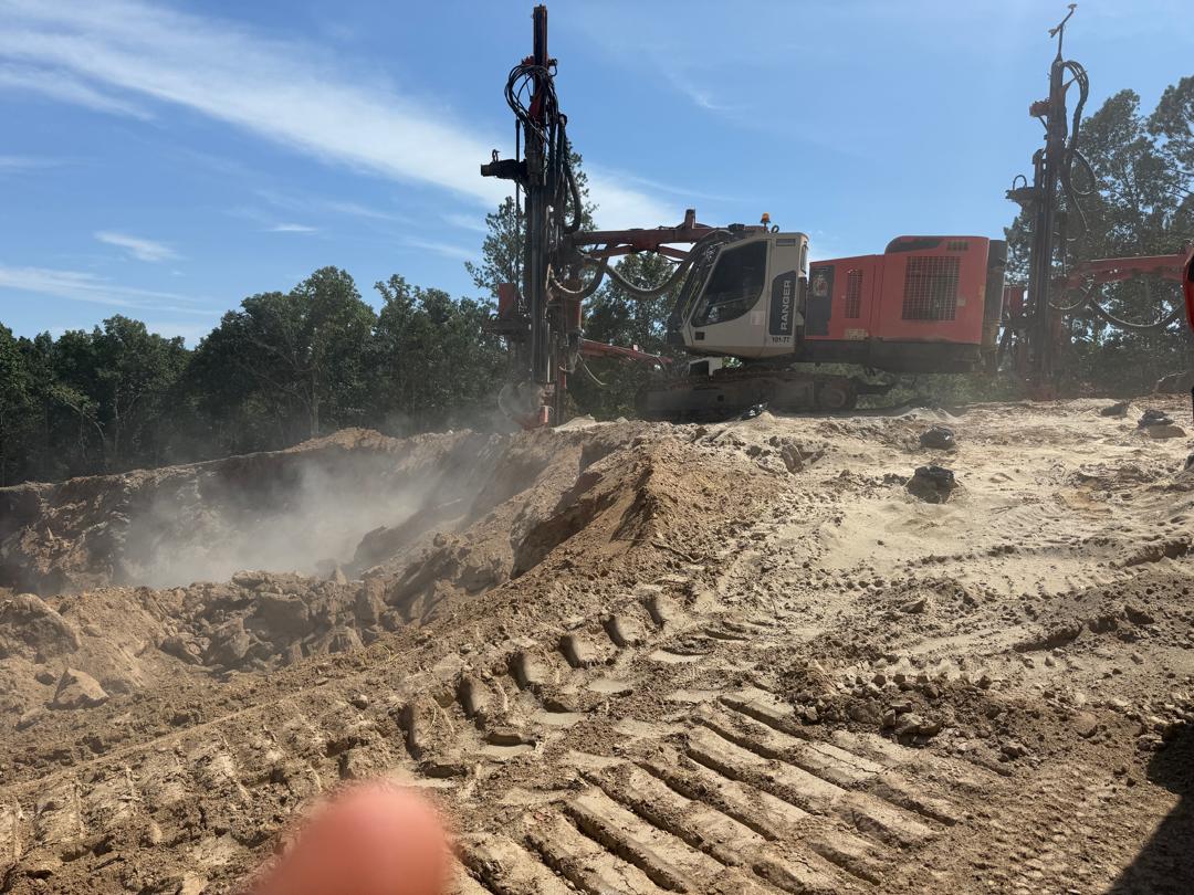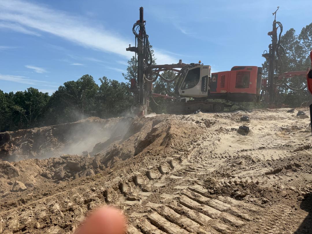 Drilling operations were also carried out by Advance Explosive Company on the west side of Lot #25 toward Manhole #10. Holes were drilled at approximately 7 ft by 7 ft spacing using a 3.5-inch bit. Random depth checks were performed and confirmed against the drill operator’s log sheet. Results indicated: