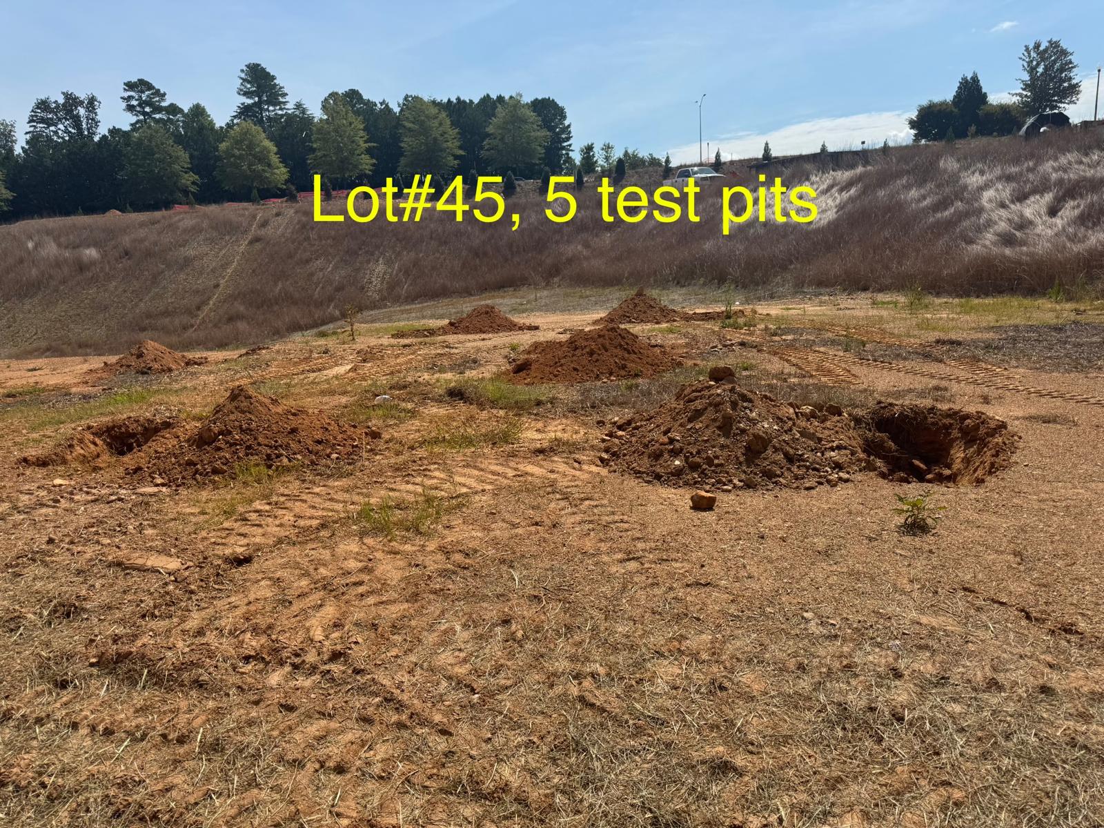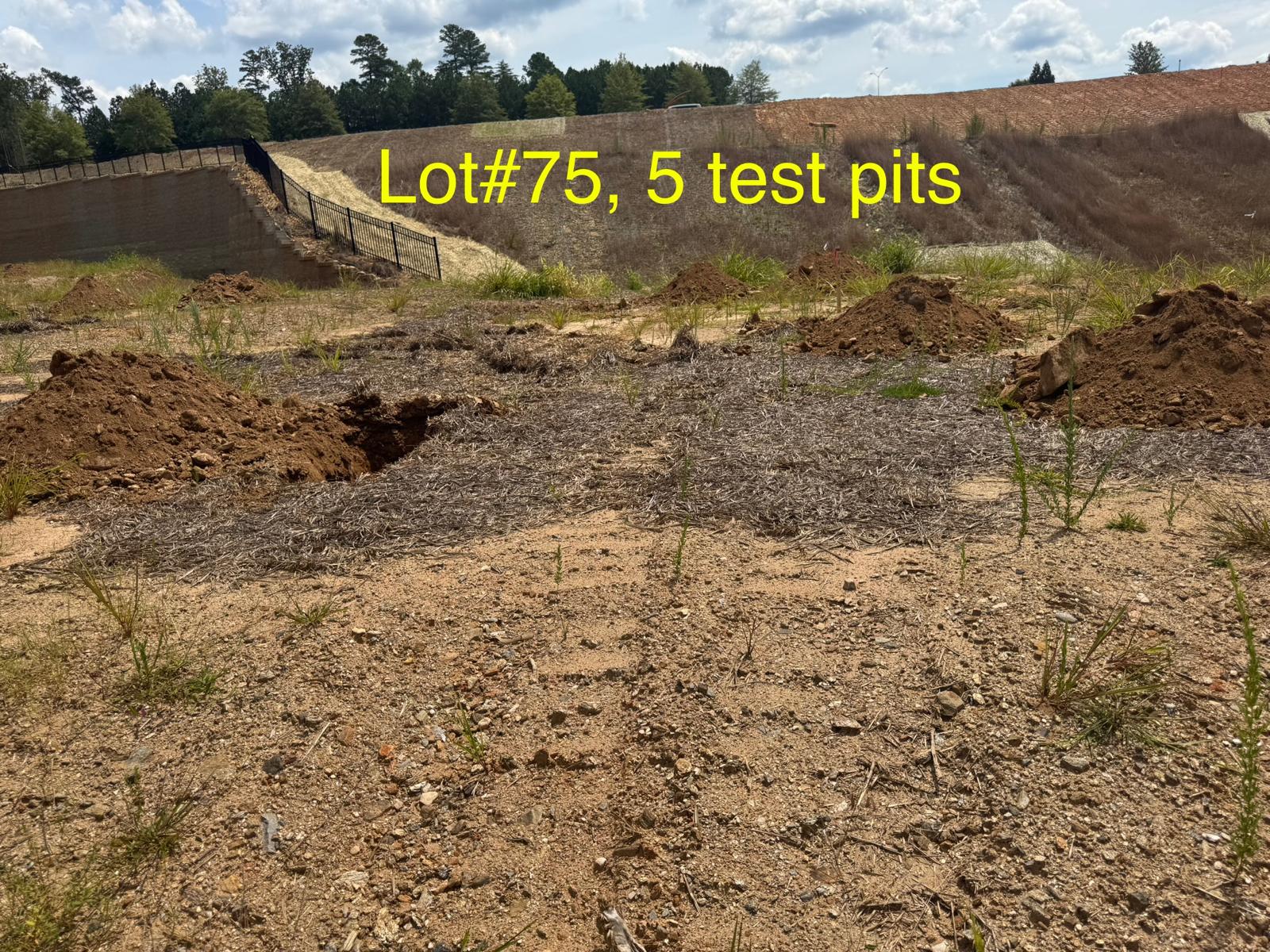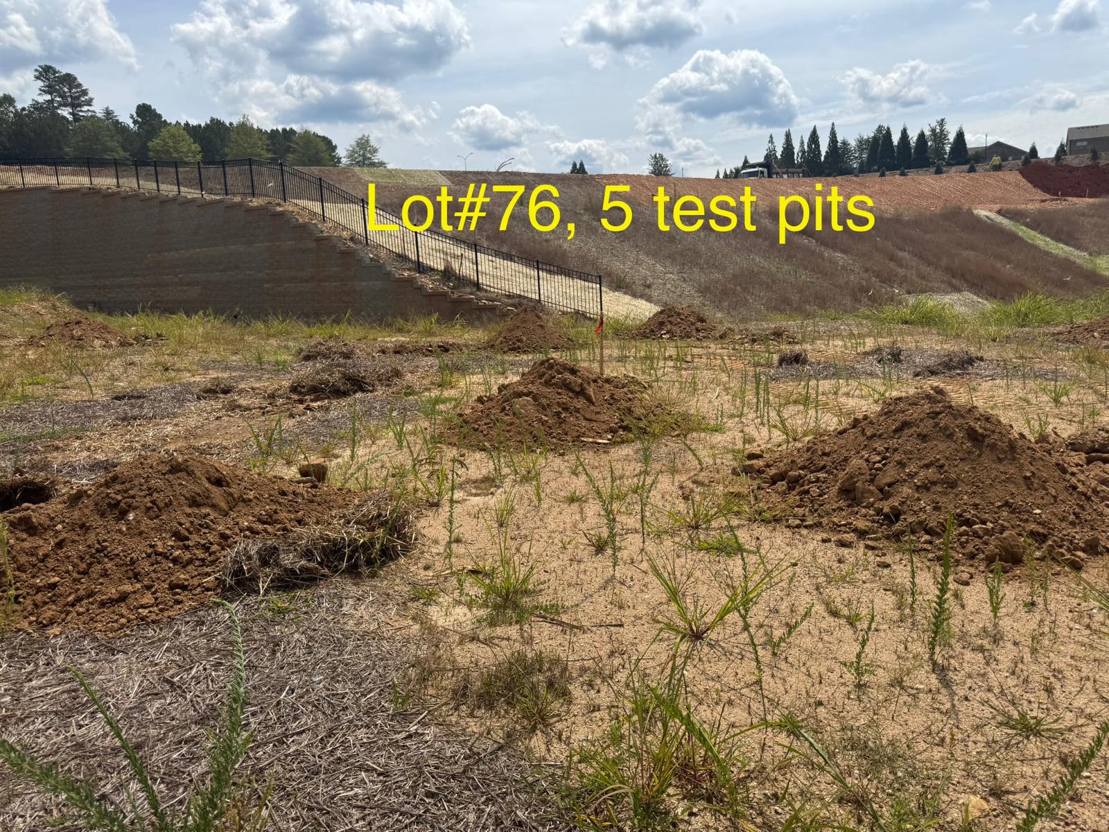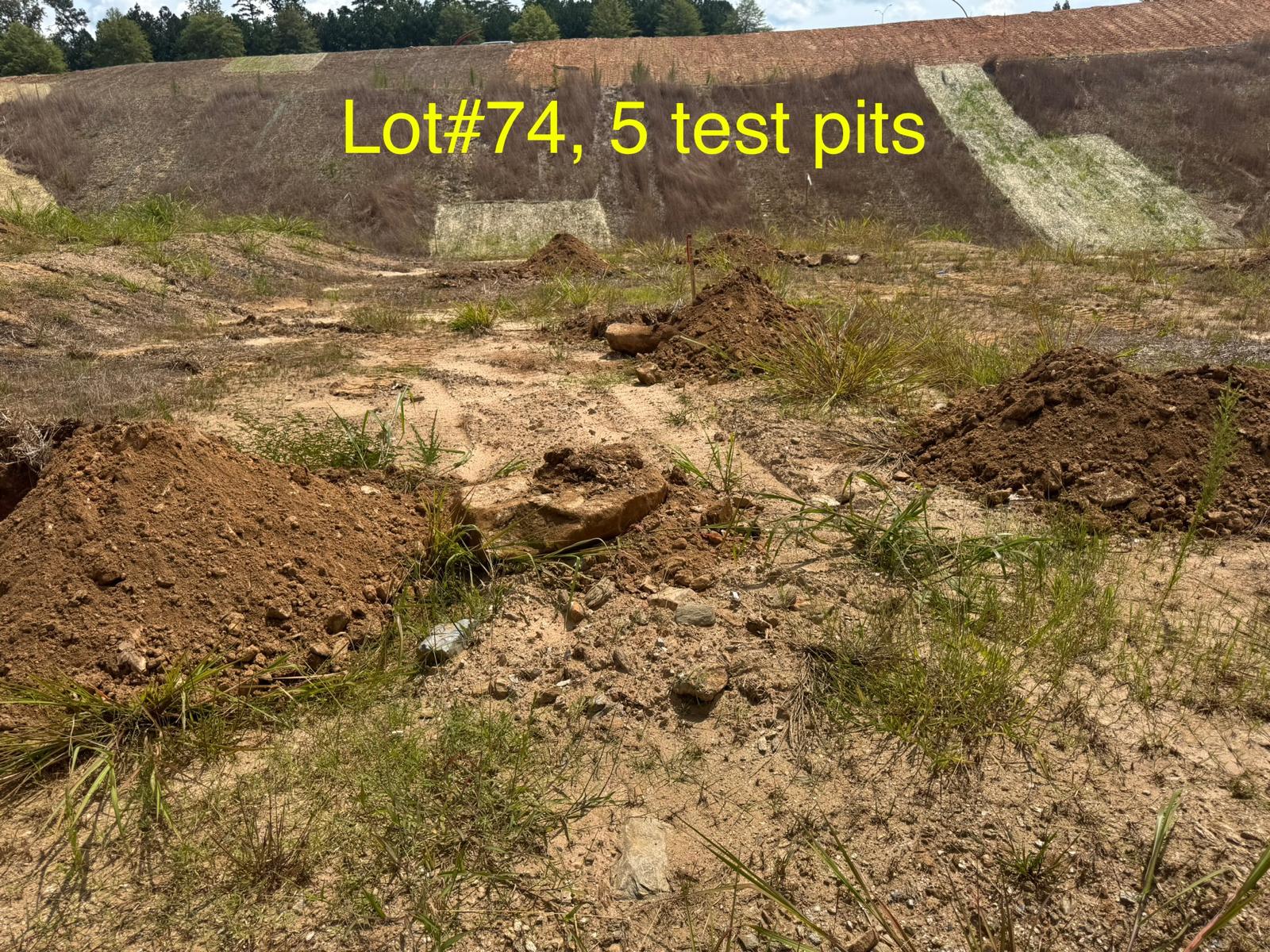On this day, test pit investigations were conducted by the contractor on Lots #45 through #82. For each lot, a total of five test pits were excavated: one at each of the four corners and one in the center. Each pit was excavated to a depth of approximately 24 inches to assess subsurface conditions for potential rock presence and refusal concerns related to future plumbing and footing installations.