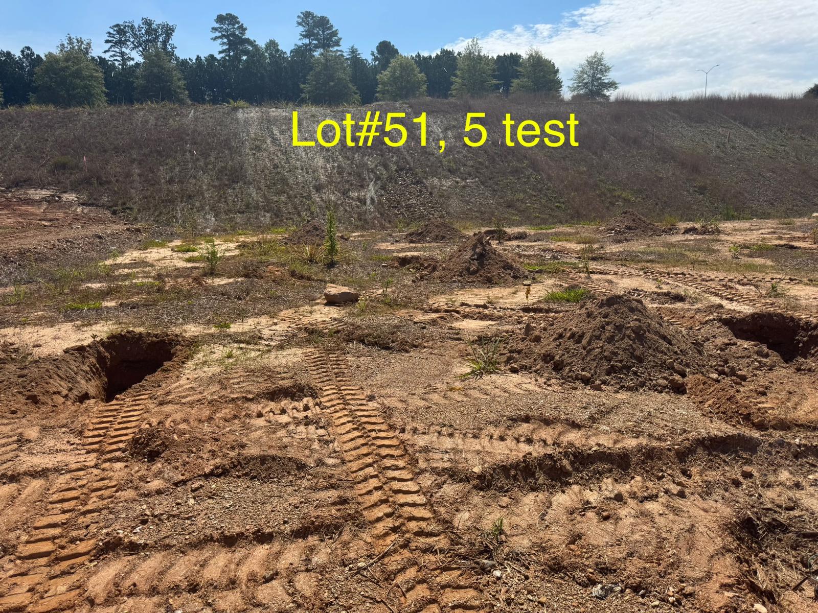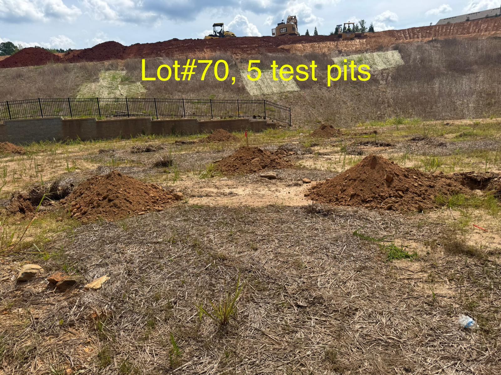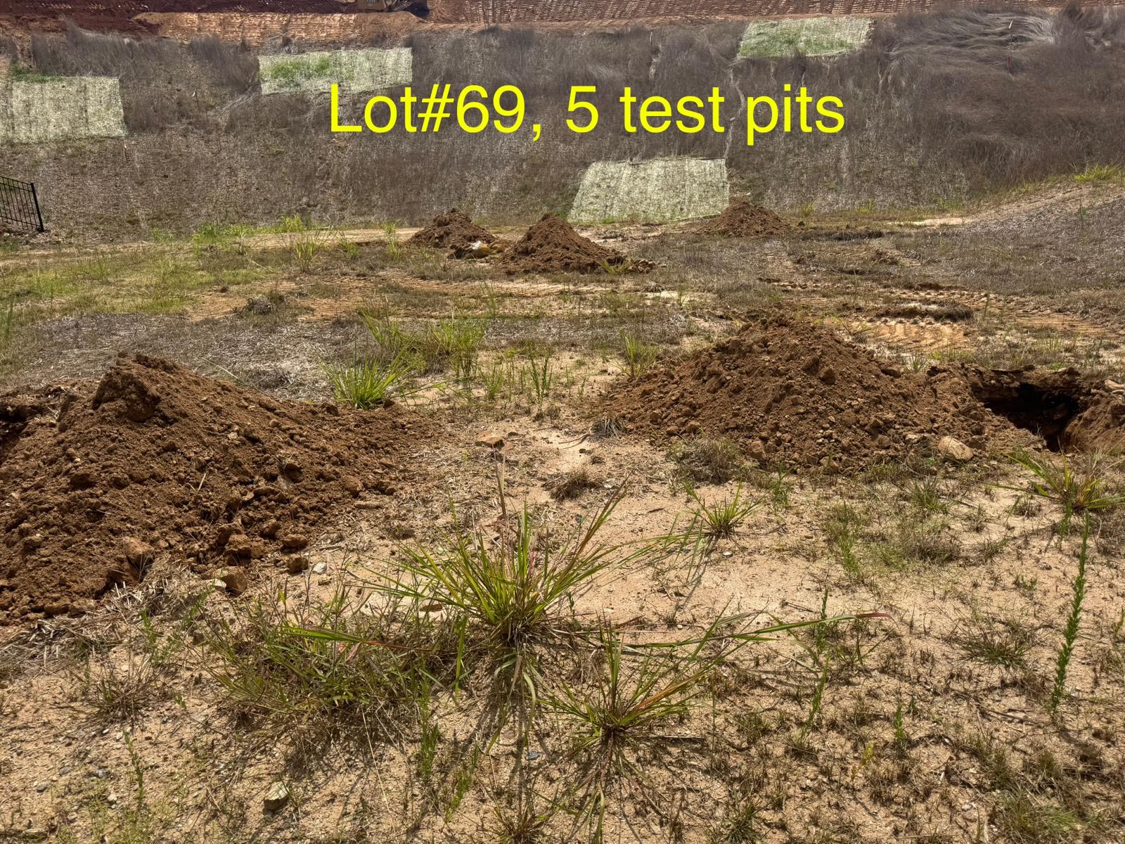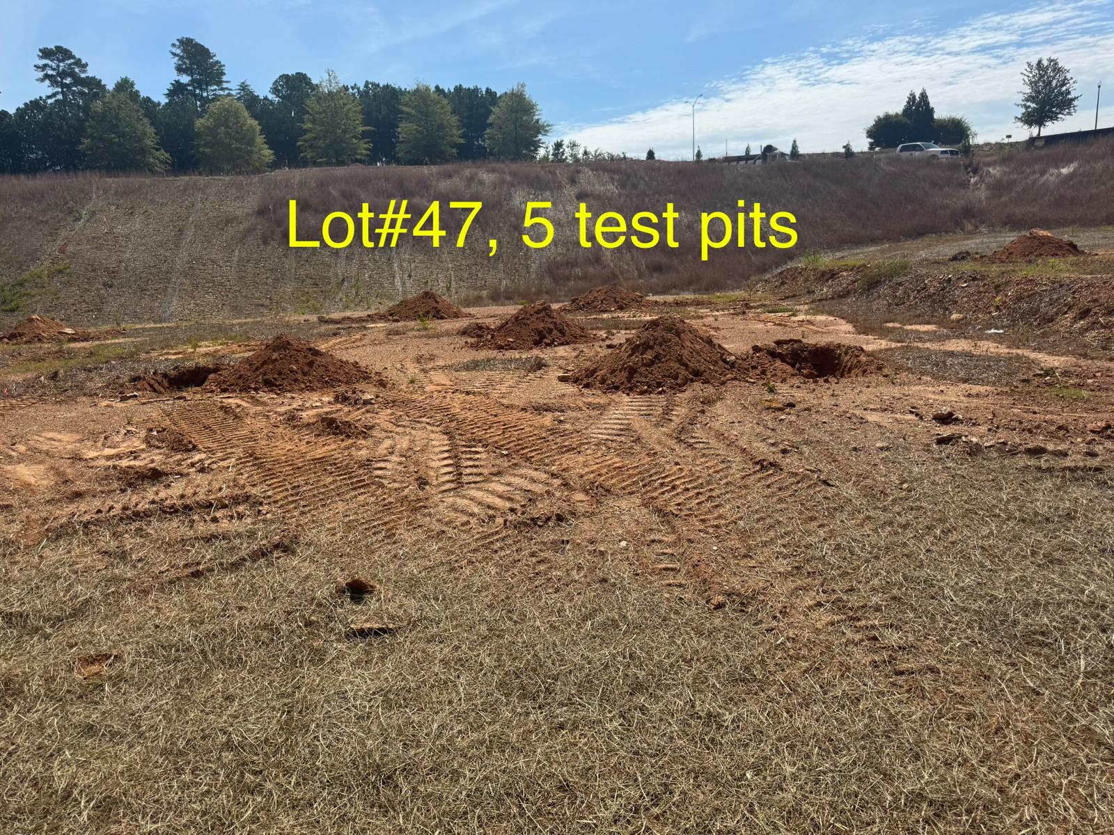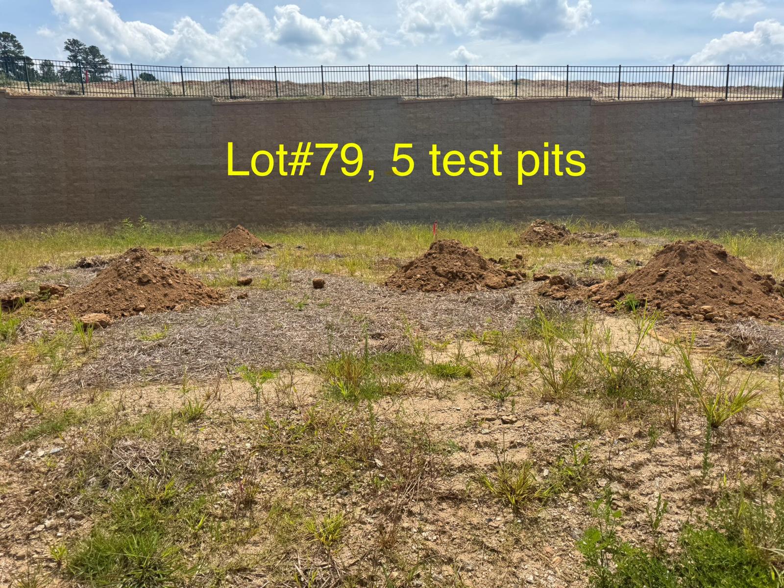On this day, test pit investigations were conducted by the contractor on Lots #45 through #82. For each lot, a total of five test pits were excavated: one at each of the four corners and one in the center. Each pit was excavated to a depth of approximately 24 inches to assess subsurface conditions for potential rock presence and refusal concerns related to future plumbing and footing installations.