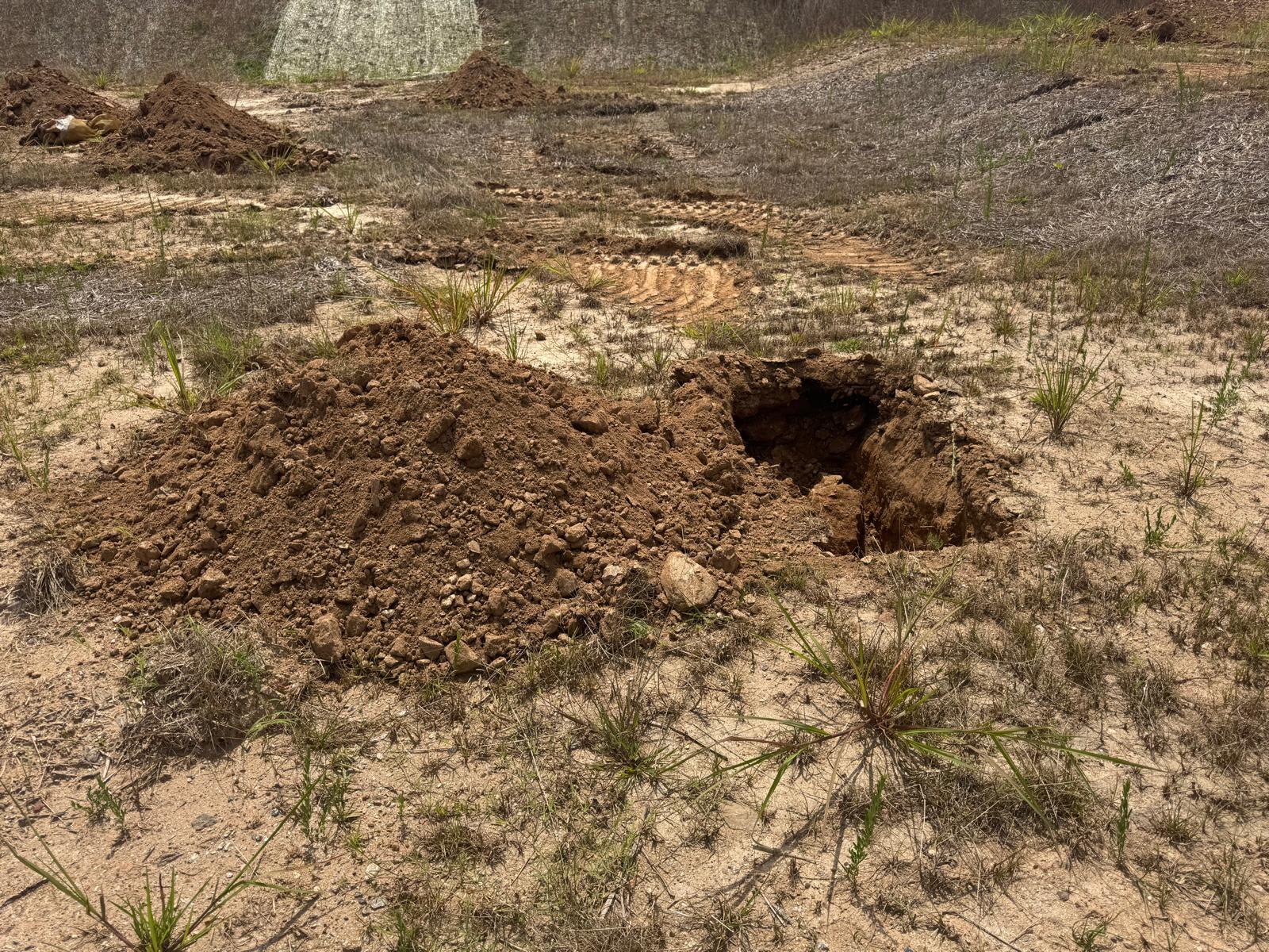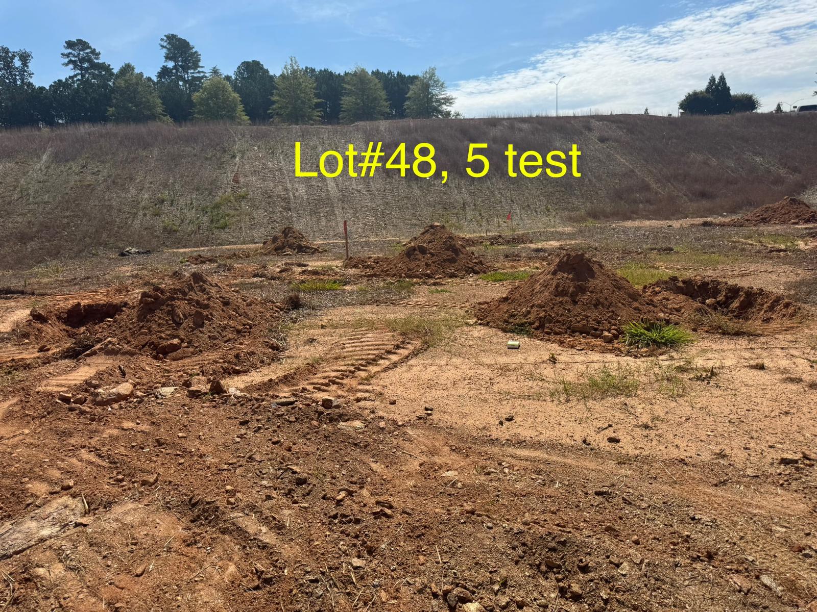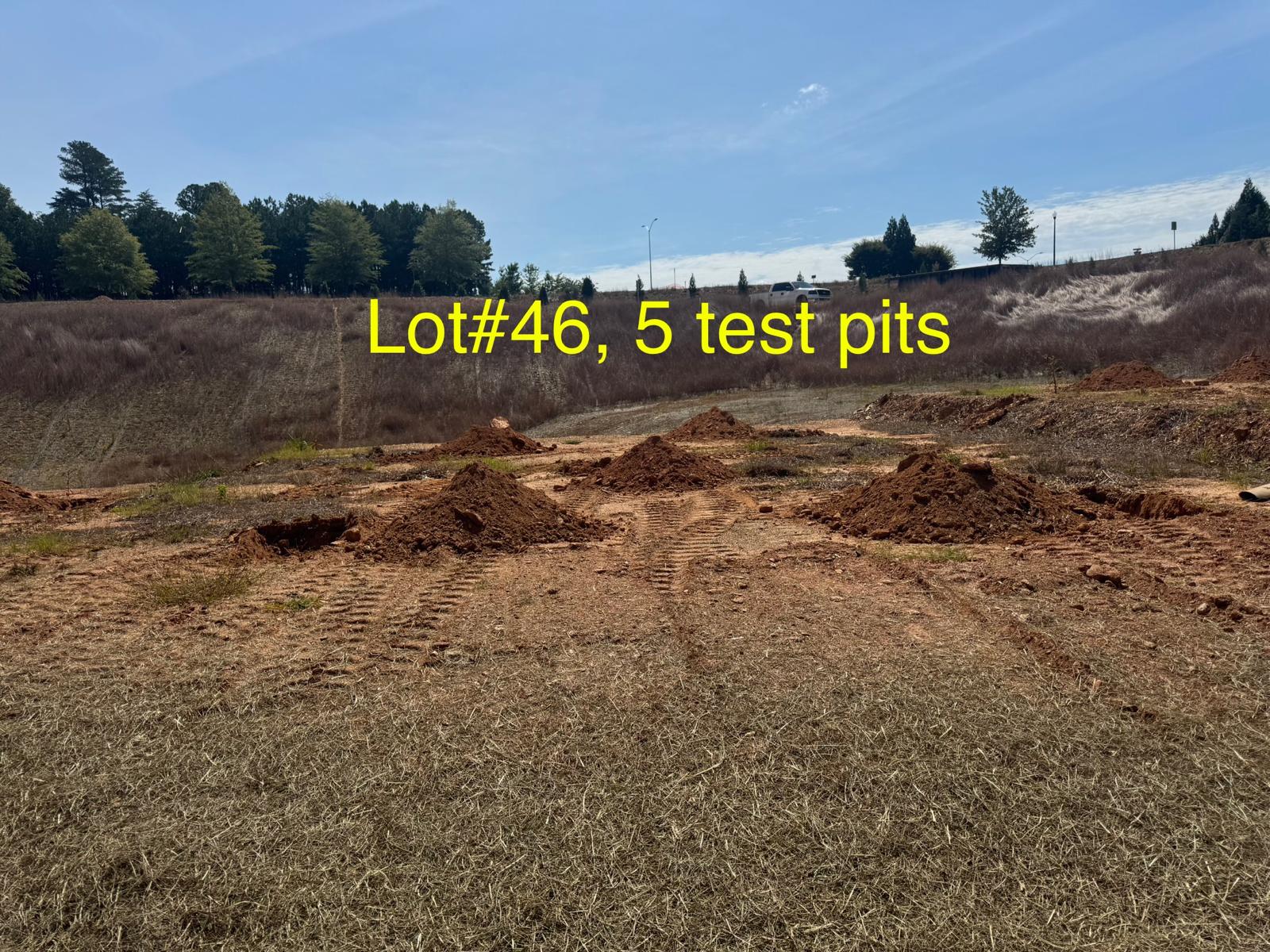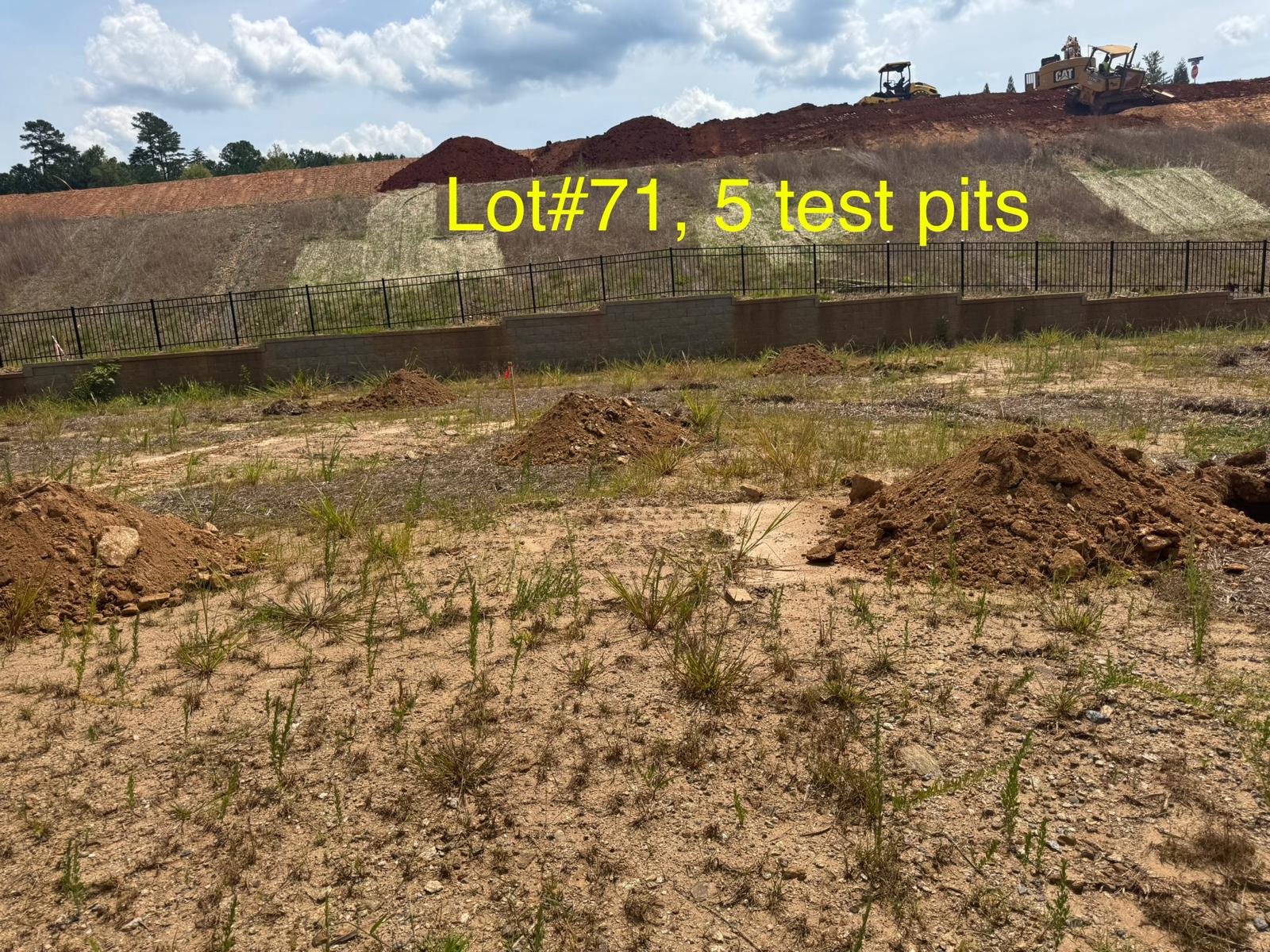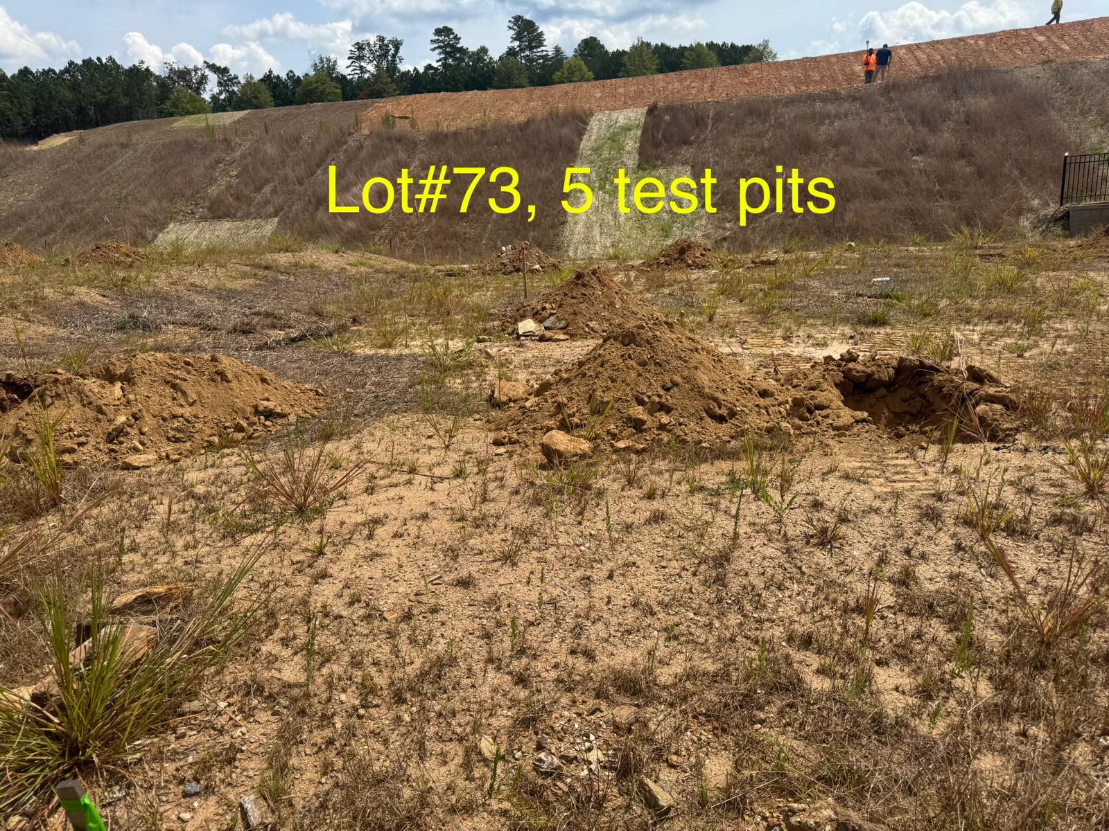 On this day, test pit investigations were conducted by the contractor on Lots #45 through #82. For each lot, a total of five test pits were excavated: one at each of the four corners and one in the center. Each pit was excavated to a depth of approximately 24 inches to assess subsurface conditions for potential rock presence and refusal concerns related to future plumbing and footing installations.
