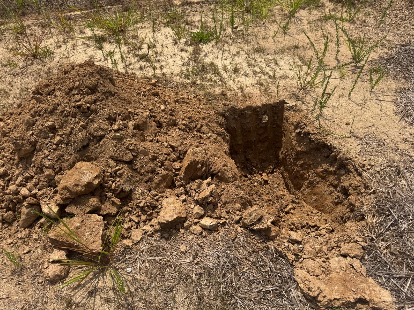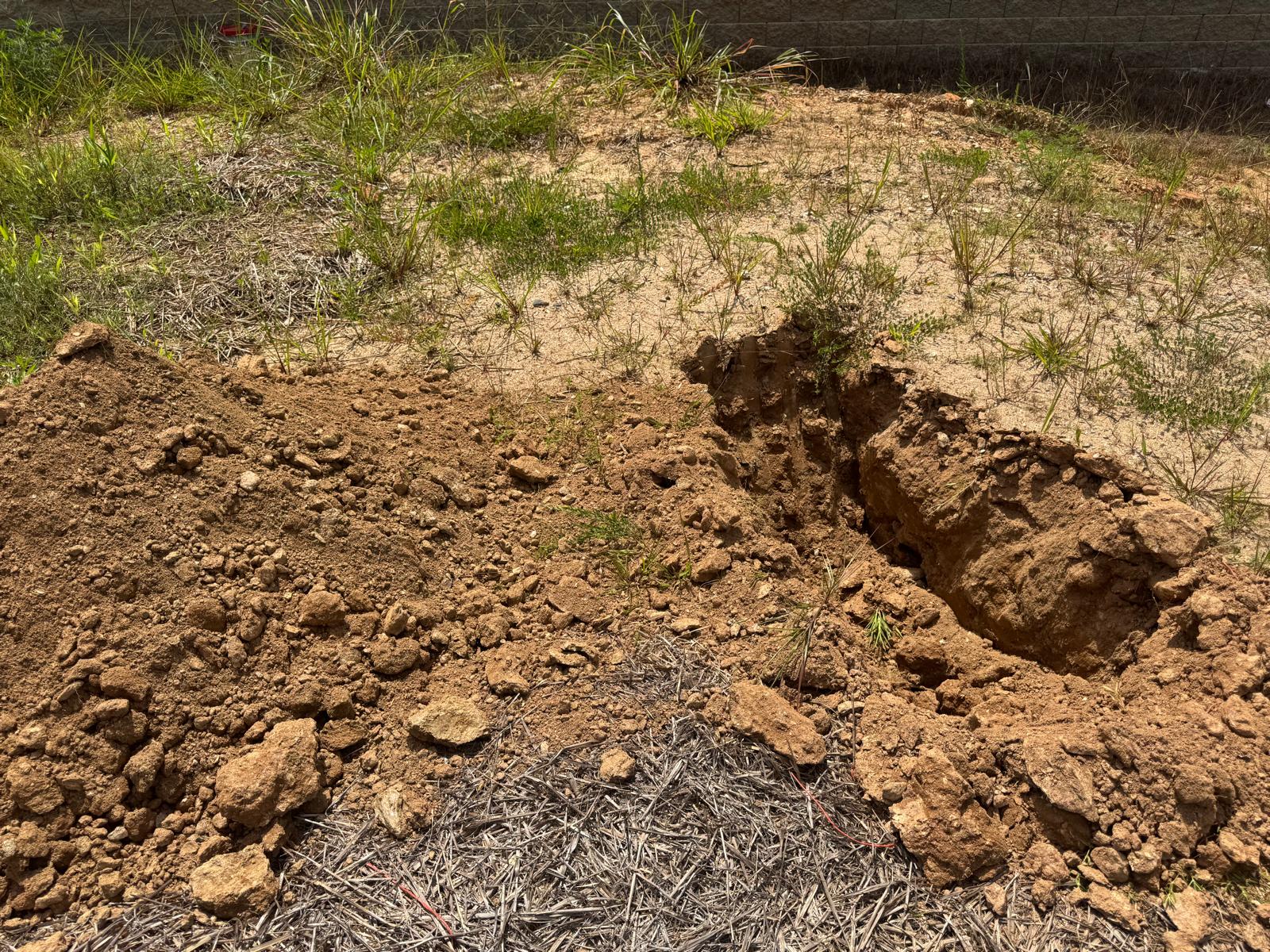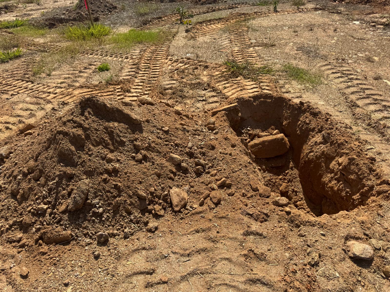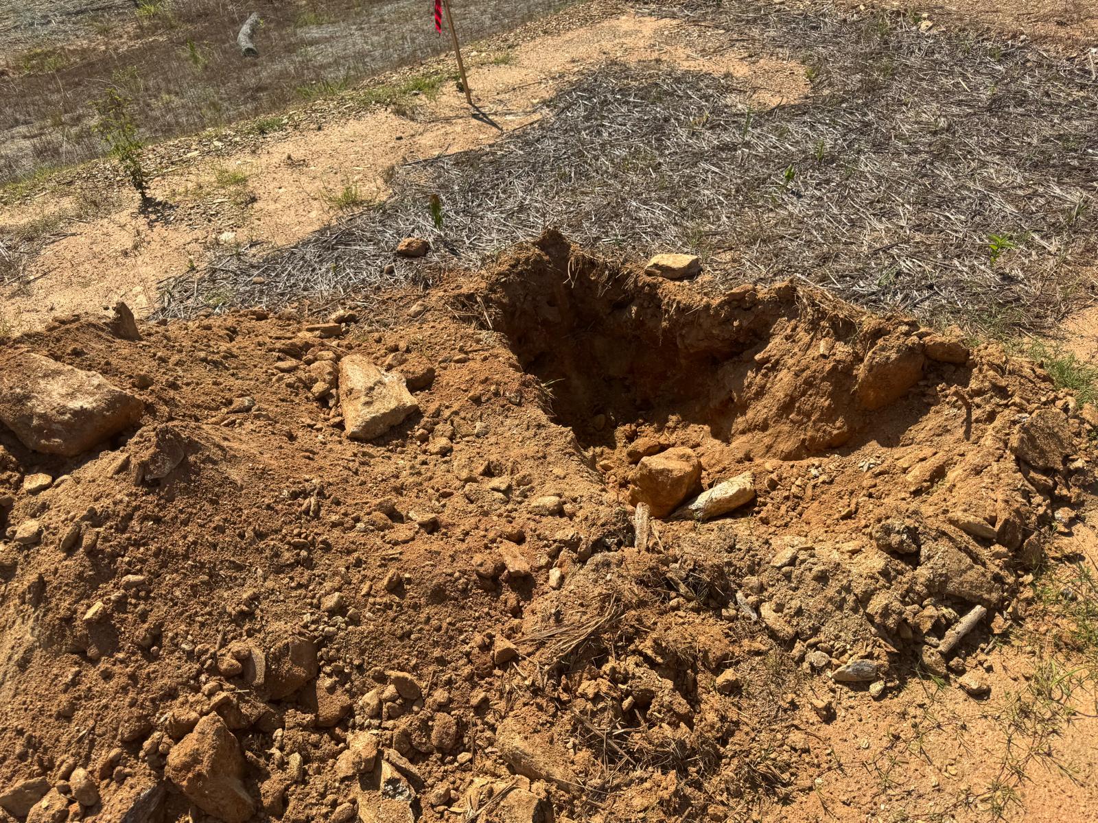 During the inspection, no refusal or obstructions were observed at the excavated depth. While rocks were encountered in several locations, they appeared to be manageable and are expected to be removable during the footing excavation process. These conditions are not expected to pose a significant issue for construction activities.