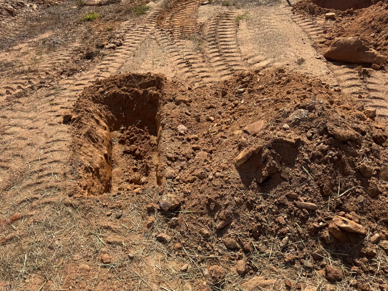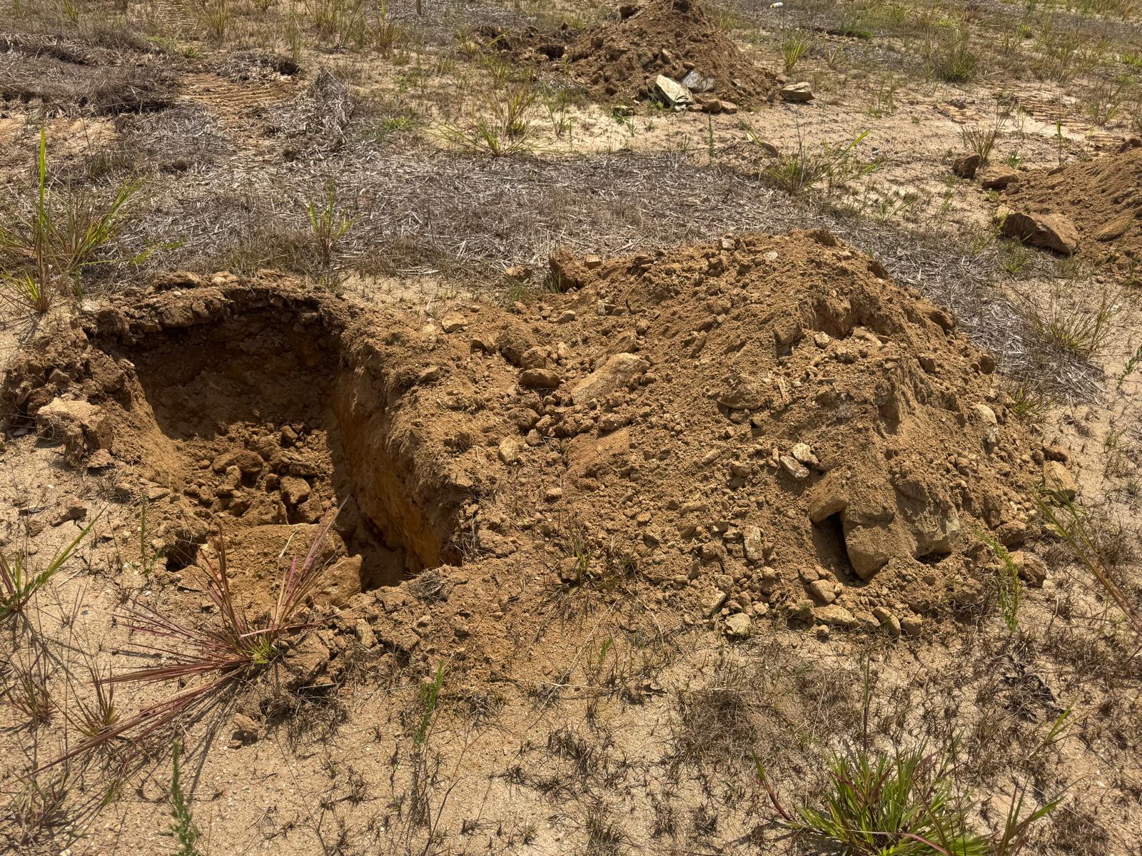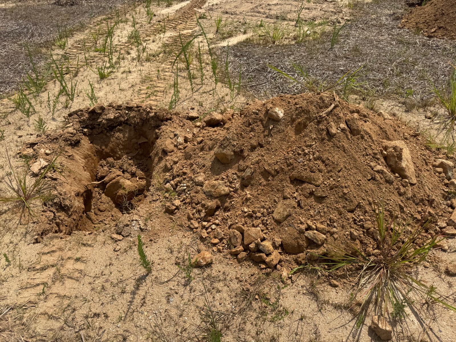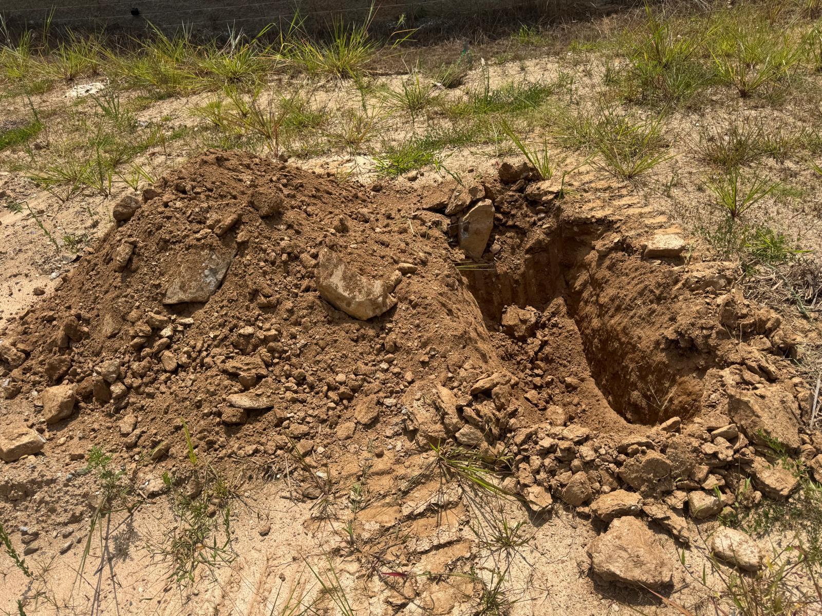 During the inspection, no refusal or obstructions were observed at the excavated depth. While rocks were encountered in several locations, they appeared to be manageable and are expected to be removable during the footing excavation process. These conditions are not expected to pose a significant issue for construction activities.