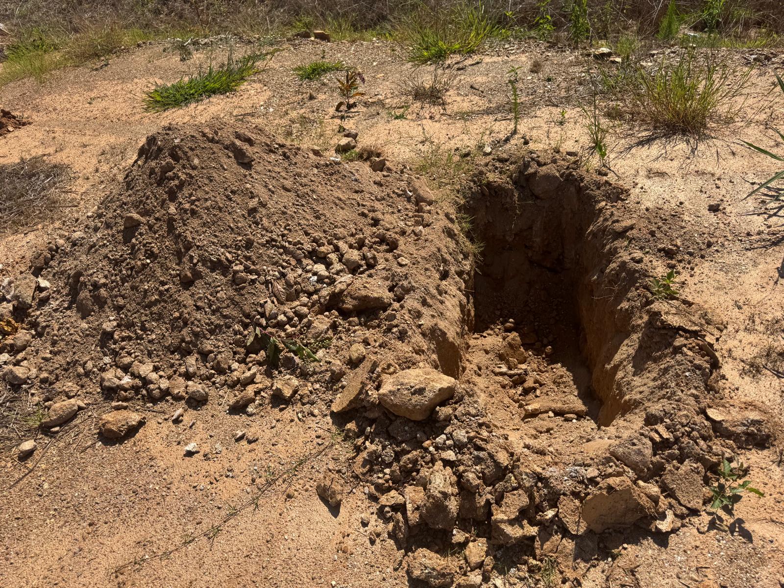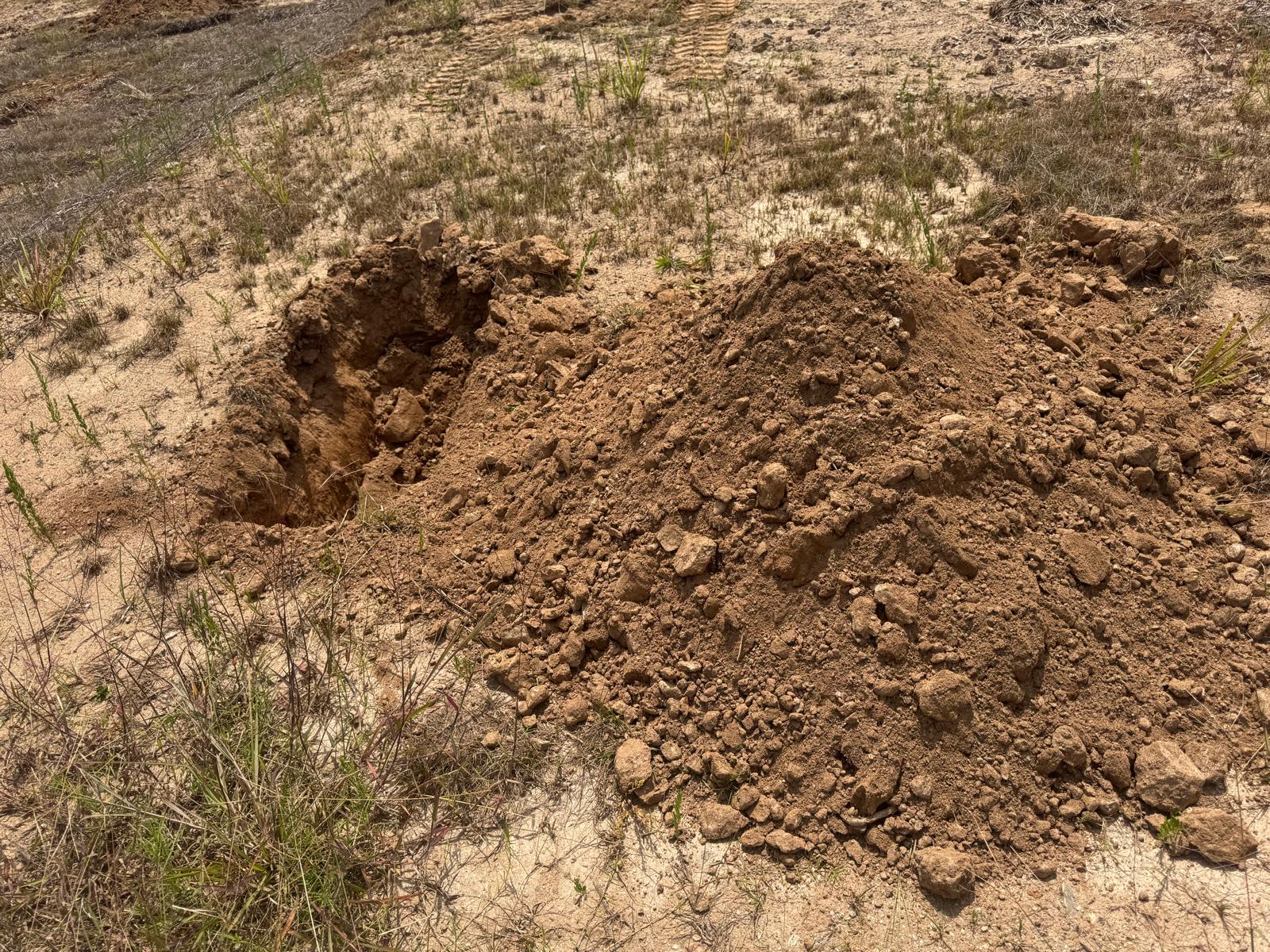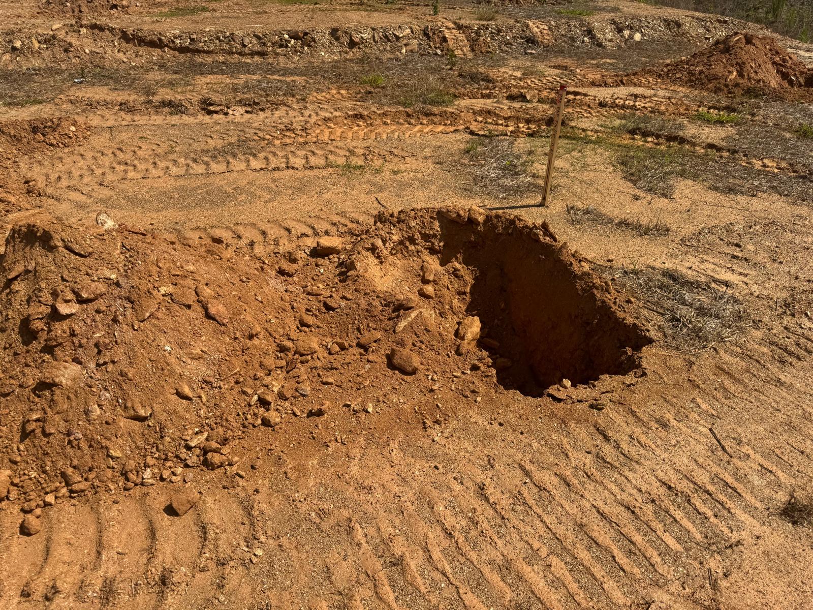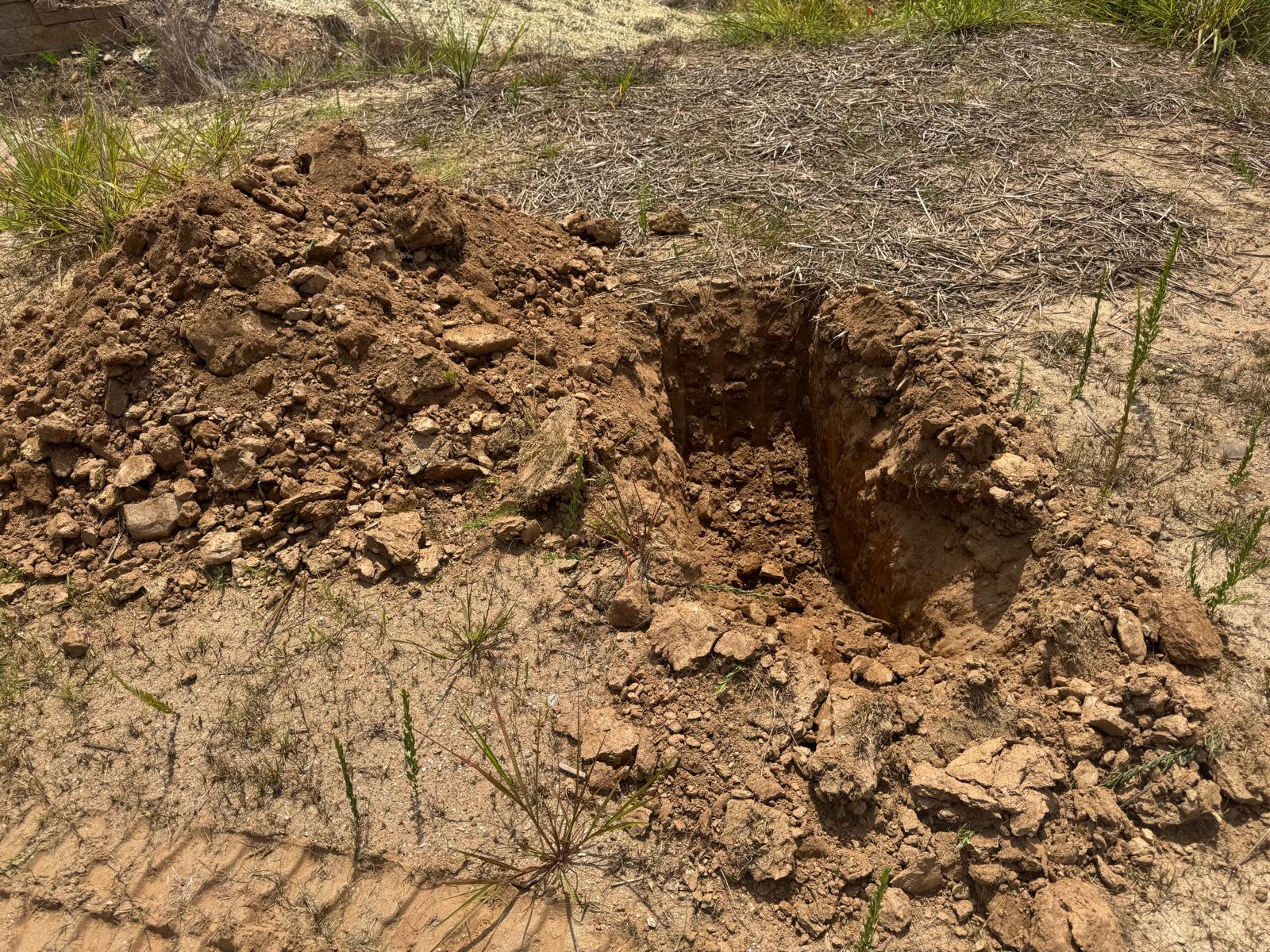 During the inspection, no refusal or obstructions were observed at the excavated depth. While rocks were encountered in several locations, they appeared to be manageable and are expected to be removable during the footing excavation process. These conditions are not expected to pose a significant issue for construction activities.