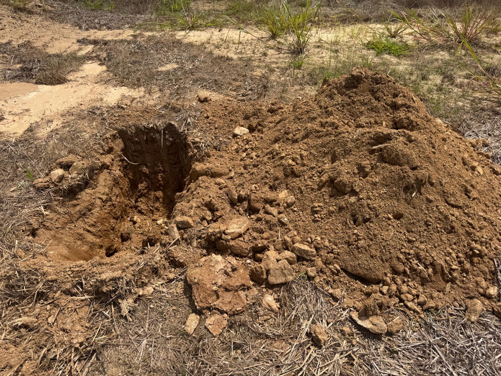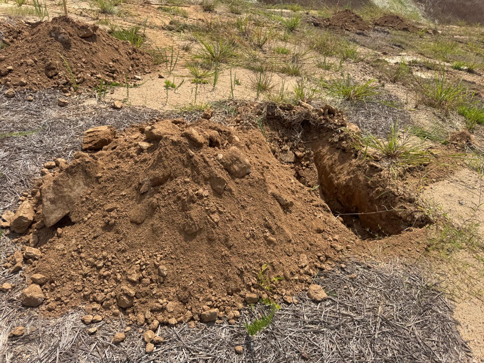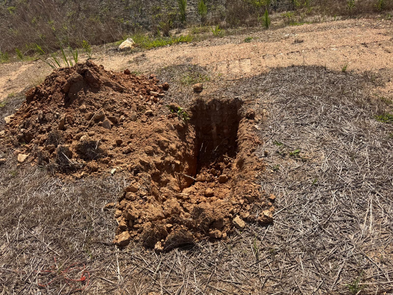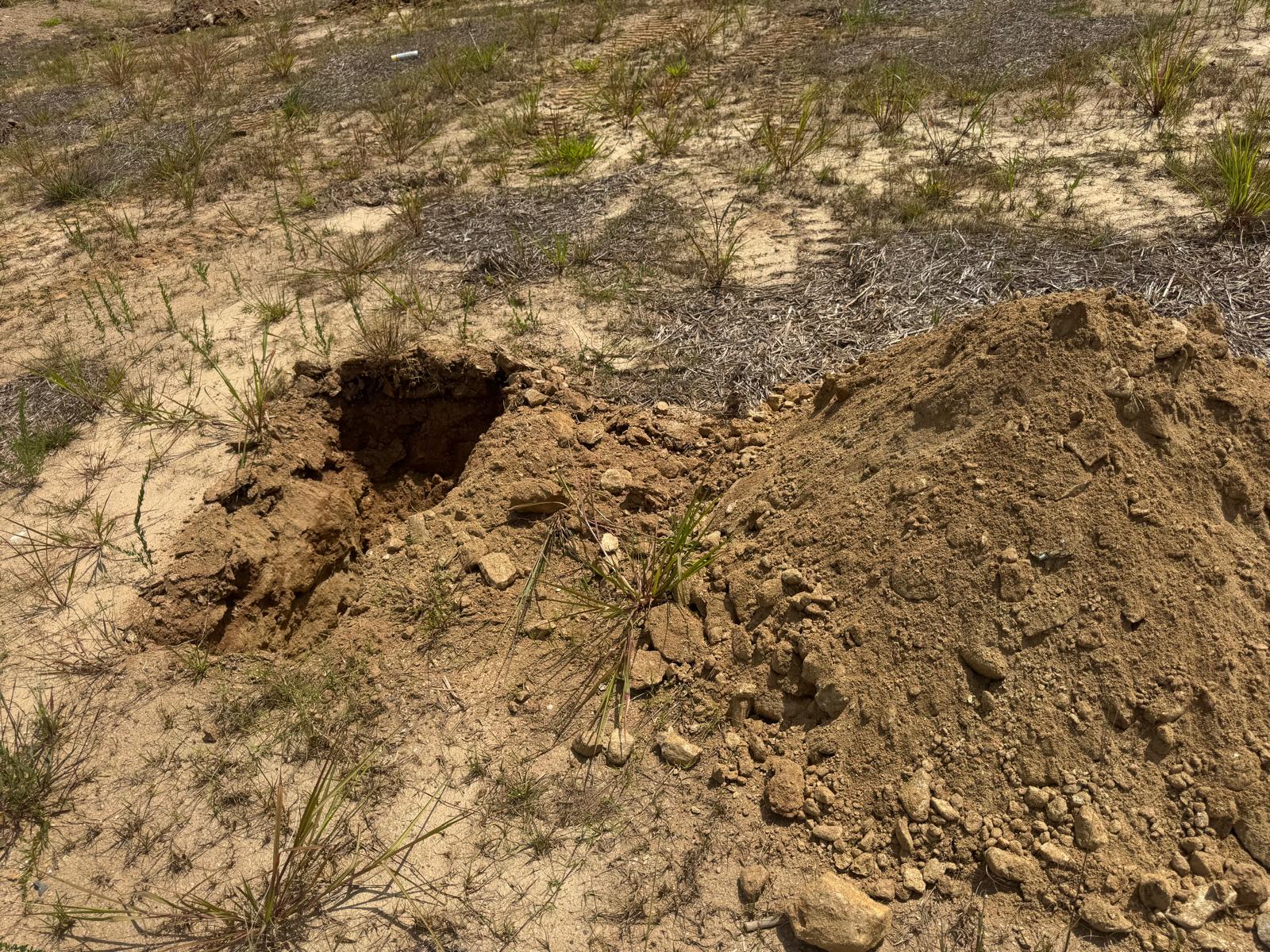 During the inspection, no refusal or obstructions were observed at the excavated depth. While rocks were encountered in several locations, they appeared to be manageable and are expected to be removable during the footing excavation process. These conditions are not expected to pose a significant issue for construction activities.