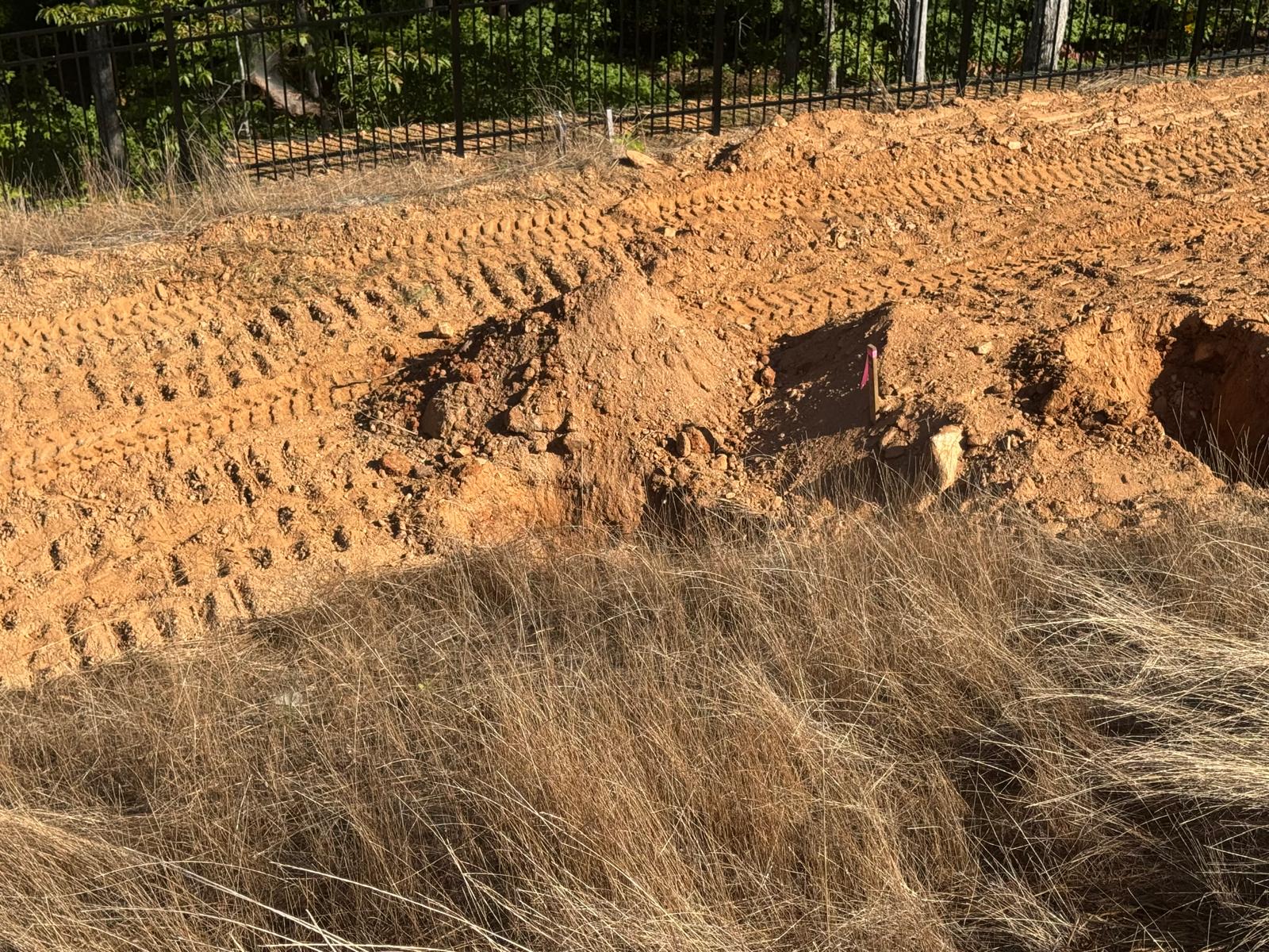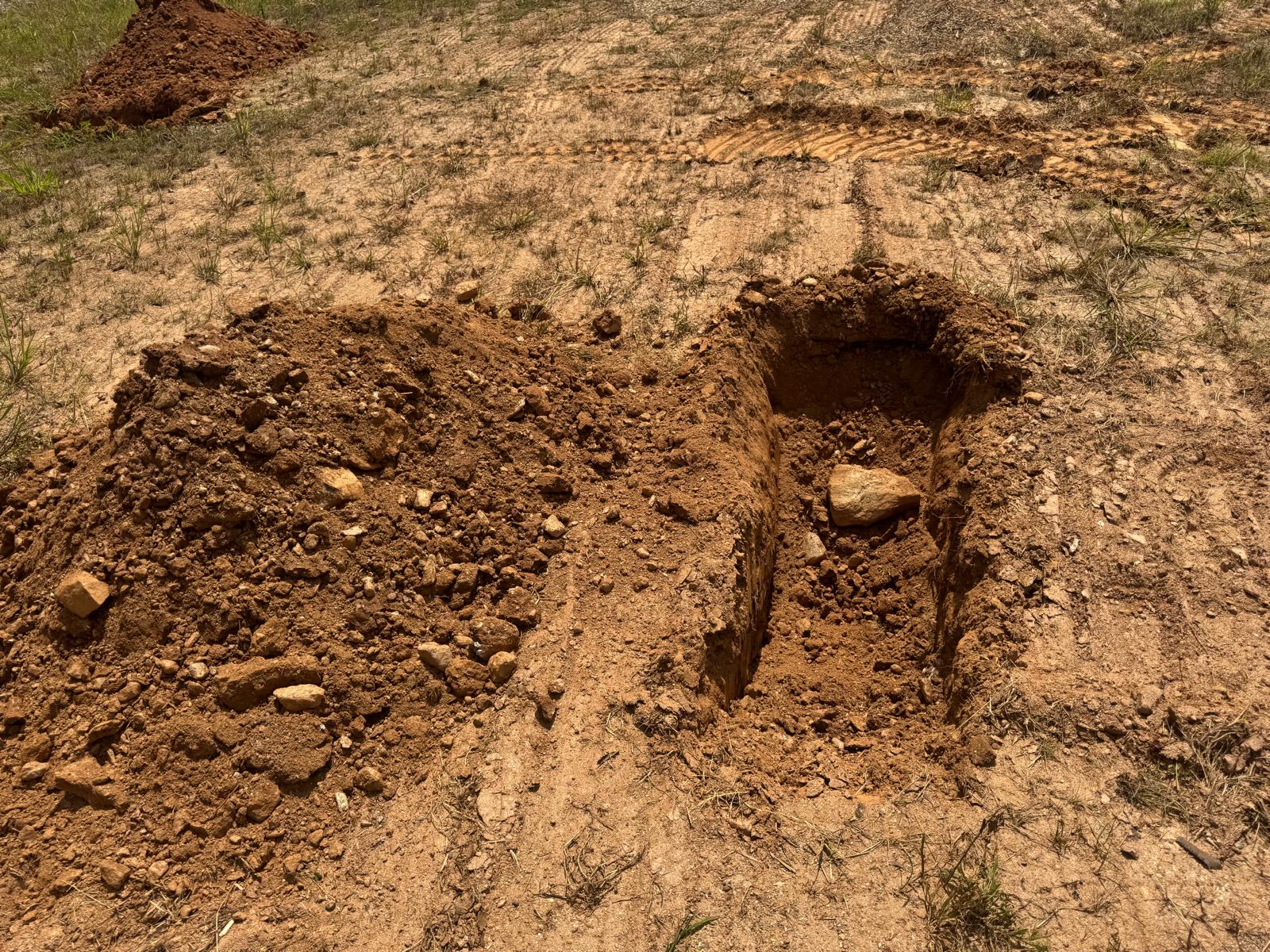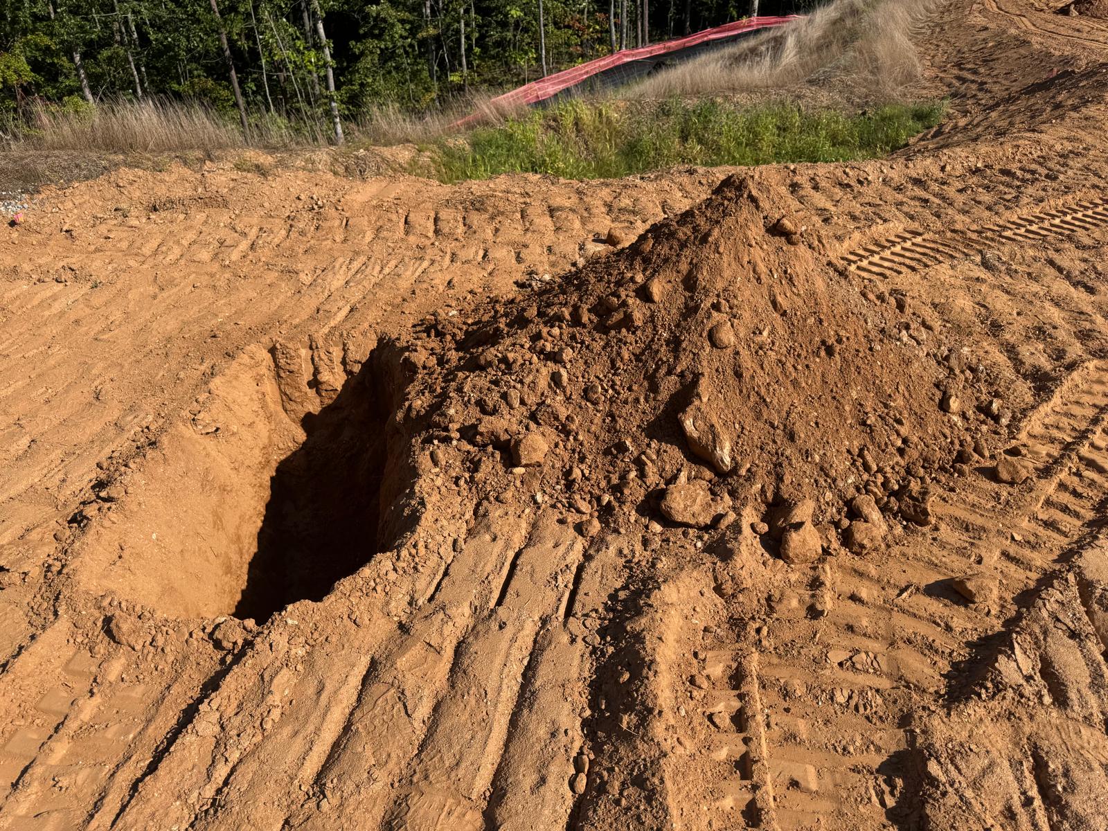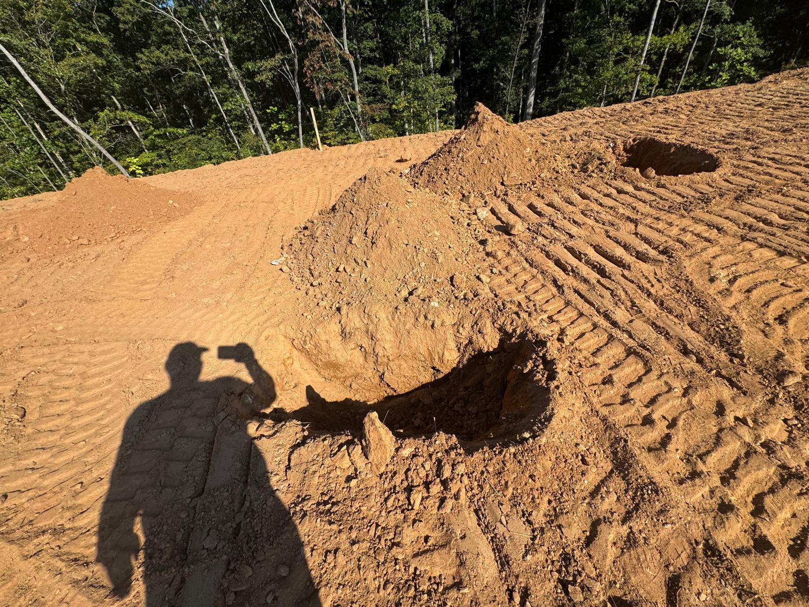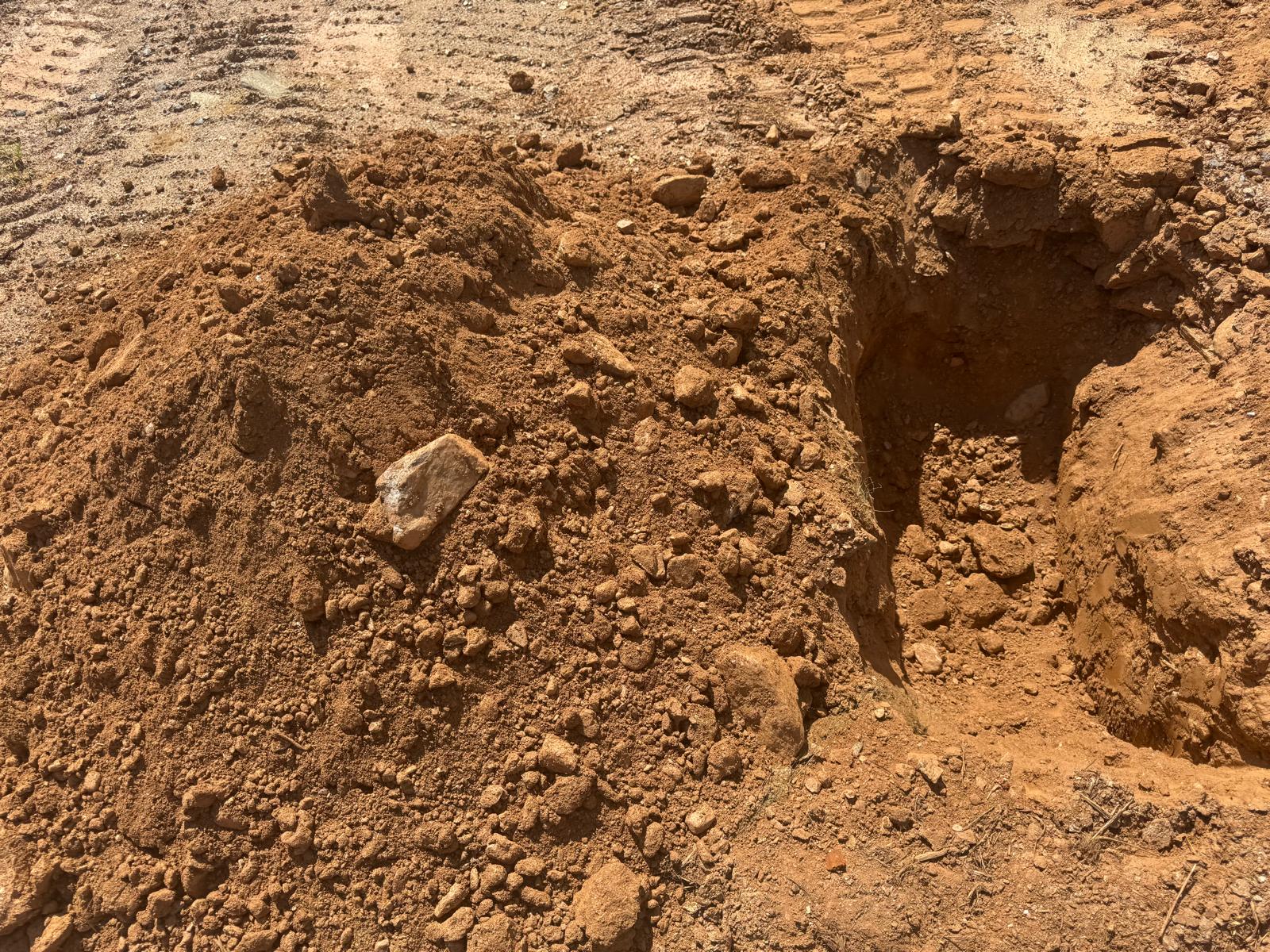 During the inspection, no refusal or obstructions were observed at the excavated depth. While rocks were encountered in several locations, they appeared to be manageable and are expected to be removable during the footing excavation process. These conditions are not expected to pose a significant issue for construction activities.