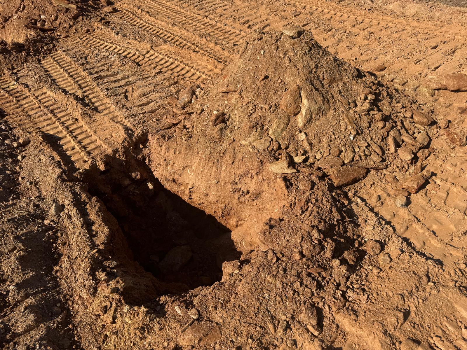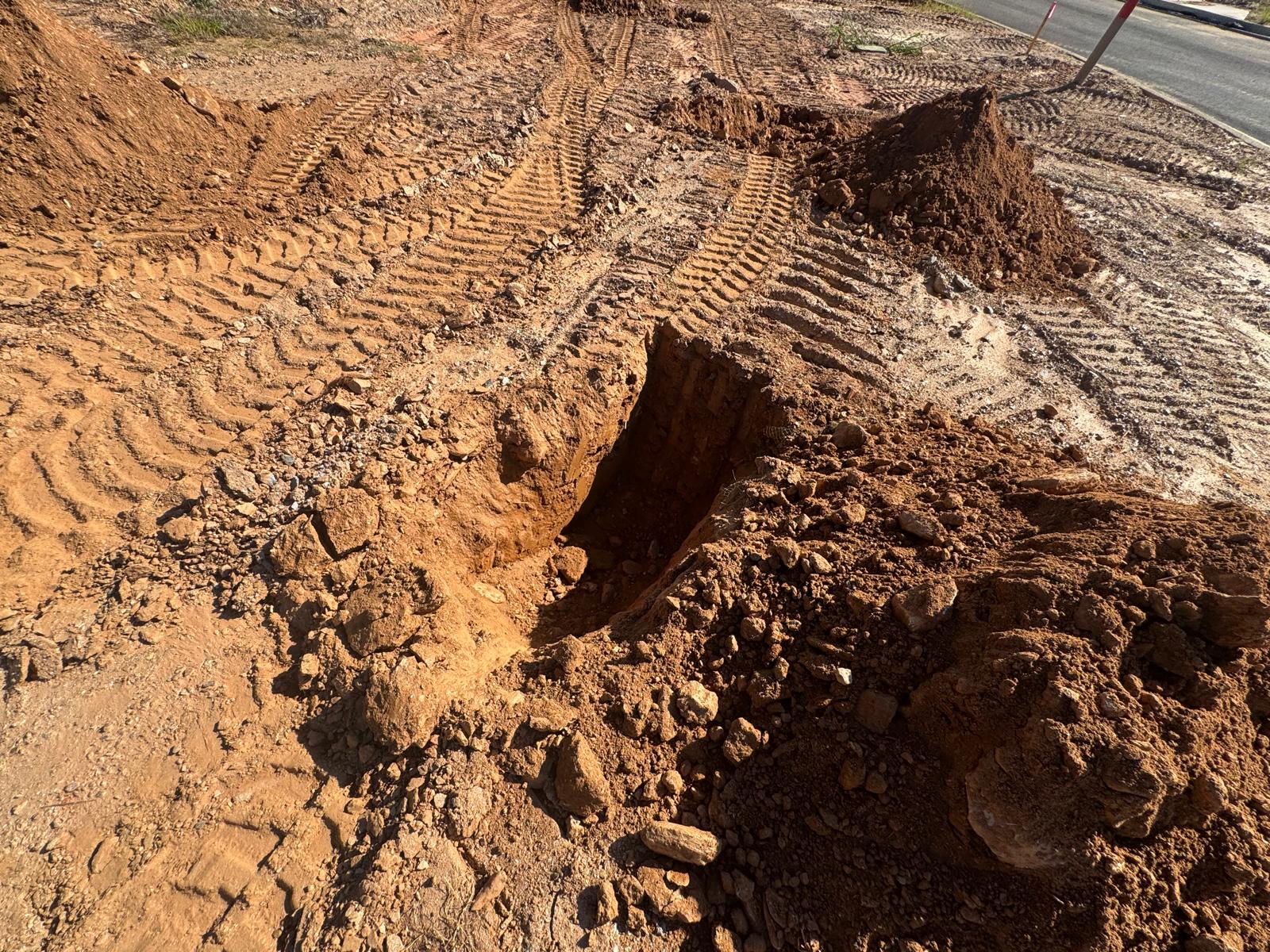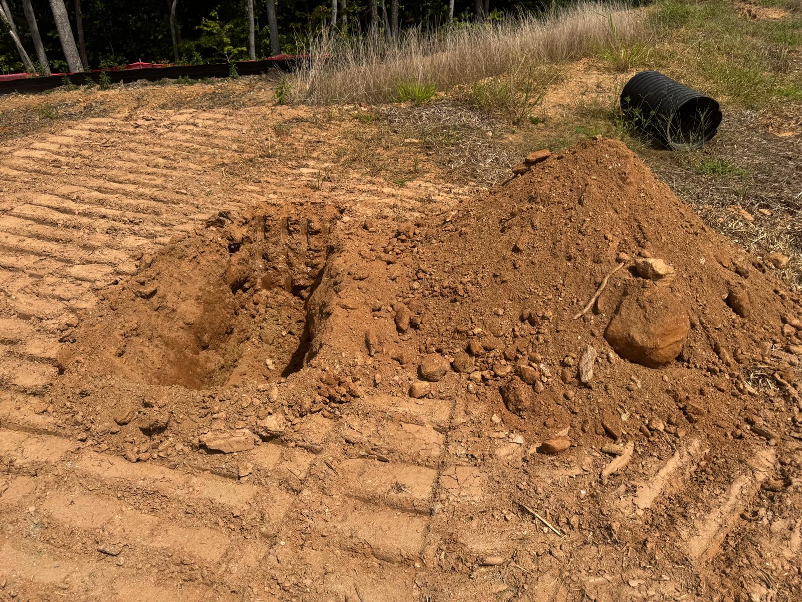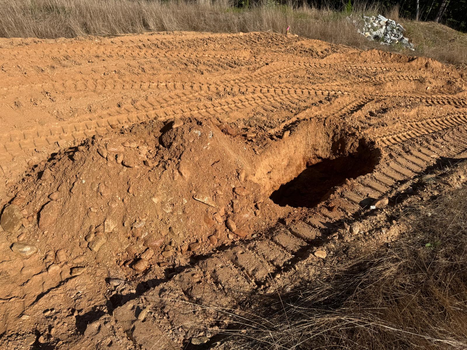 During the inspection, no refusal or obstructions were observed at the excavated depth. While rocks were encountered in several locations, they appeared to be manageable and are expected to be removable during the footing excavation process. These conditions are not expected to pose a significant issue for construction activities.